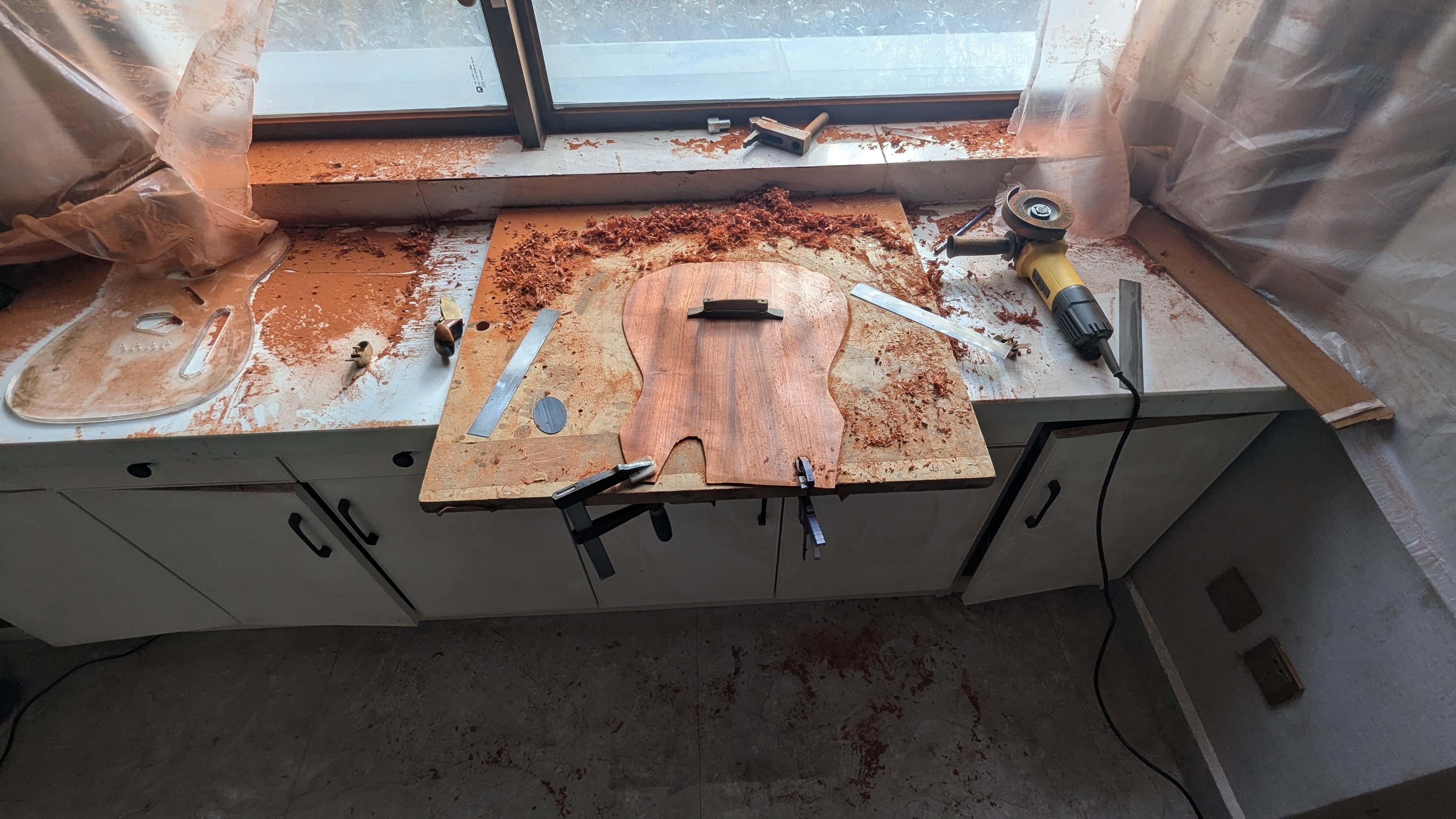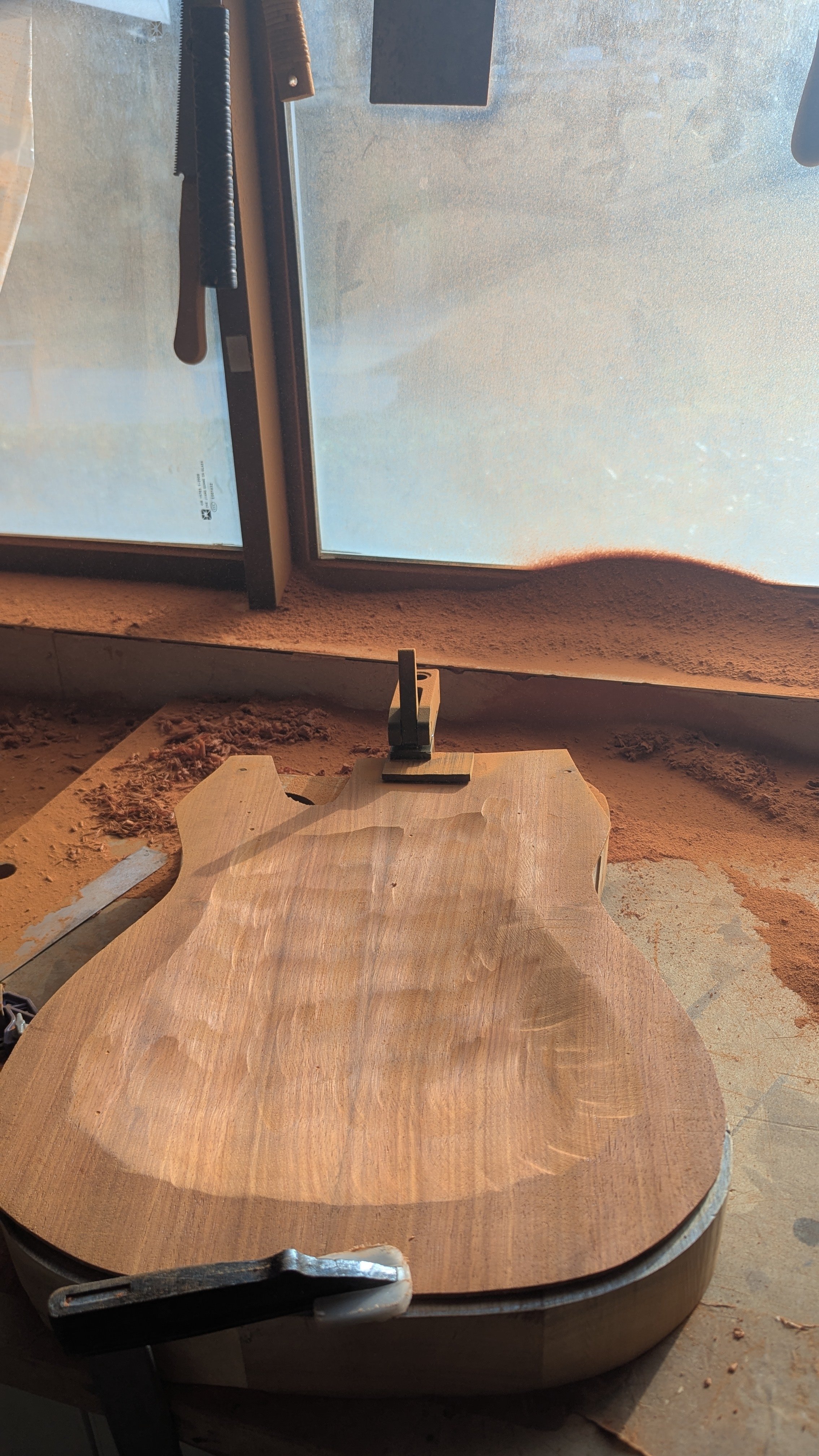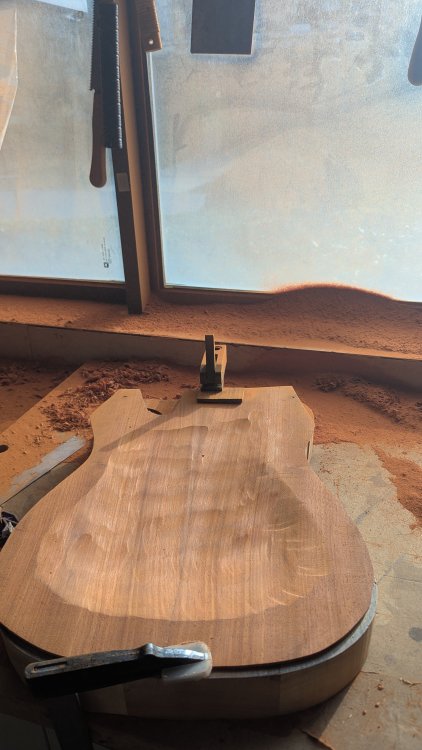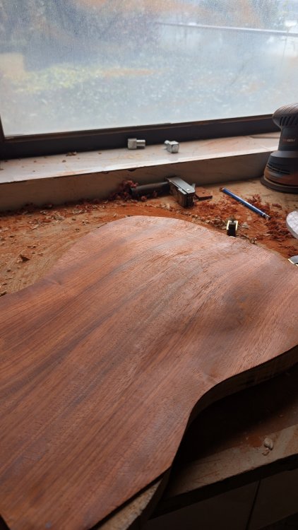 Salutari, va prezint cea mai recenta chitara cosntruita de mine. www.antonioguitars.ro https://www.facebook.com/Avatar2100 Specifications Body: African Mahogany Neck: African Mahogany Top: Pale Moon Ebony Fingerboard: Pale Moon Ebony (with blind binding) 3D-printed brass logo 22 frets, 24.75" scale length, 14" radius Truss rod: Double-action, with carbon fiber bars Nut: Bone Frets: Jescar Jumbo Stainless Steel Tuners: Hipshot locking Pickups: EMG 81 / 60 Bridge: Gotoh Stop tailpiece: Gotoh aluminum Side dots: Fiber optic / MOP markers / red LED Strings: Ernie Ball RPS 10–46 Electronics: Volume, Tone Finish: Oil / wax Case: SKB Weight: 4.2 kg