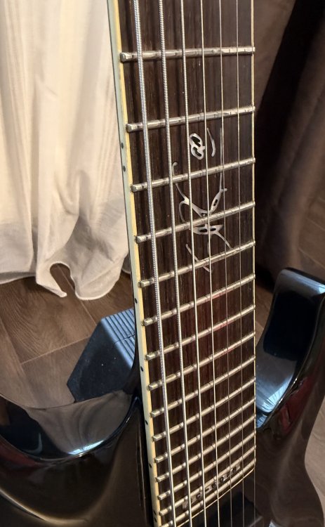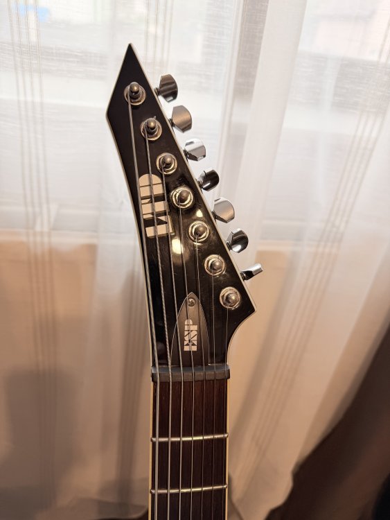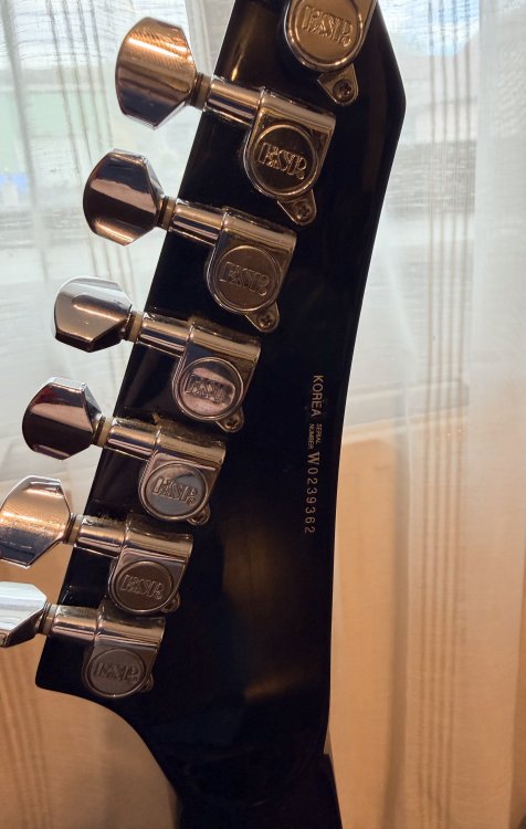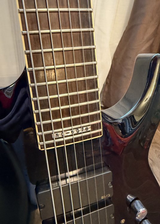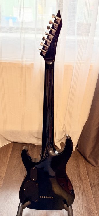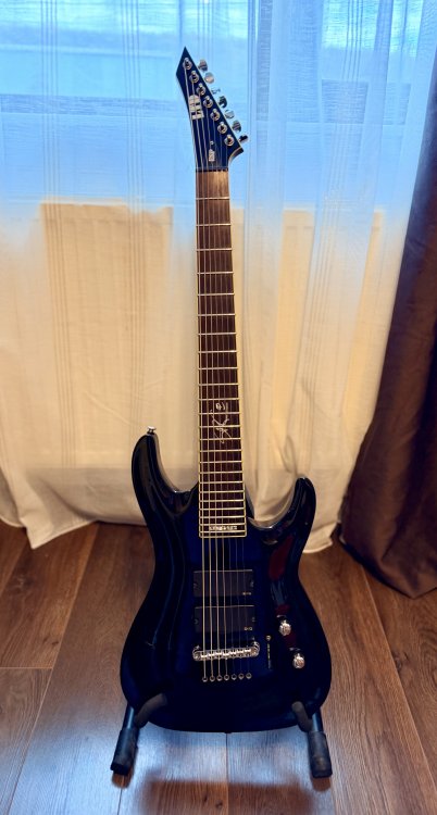 Vând o ESP LTD SC-607B de primă generație, fabricată în Coreea în 2002 la fabrica World Musical Instruments – aceeași care a produs multe dintre modelele LTD de top din anii 2000. Este modelul original semnat Stephen Carpenter (Deftones), cu doze active EMG 707, construcție neck-thru și scală bariton de 27”. Sunetul este exact ce trebuie – tight, puternic și clar, mai ales în acordaje joase. Chitara are urme normale de folosire, iar în partea inferioară are un ding care a fost reparat amatoricește (se vede în poze). Este doar un defect cosmetic, fără nicio influență asupra sunetului sau structurii instrumentului.