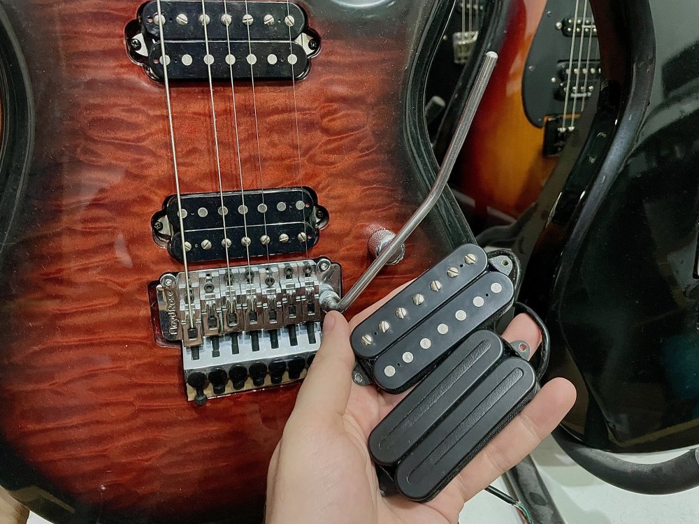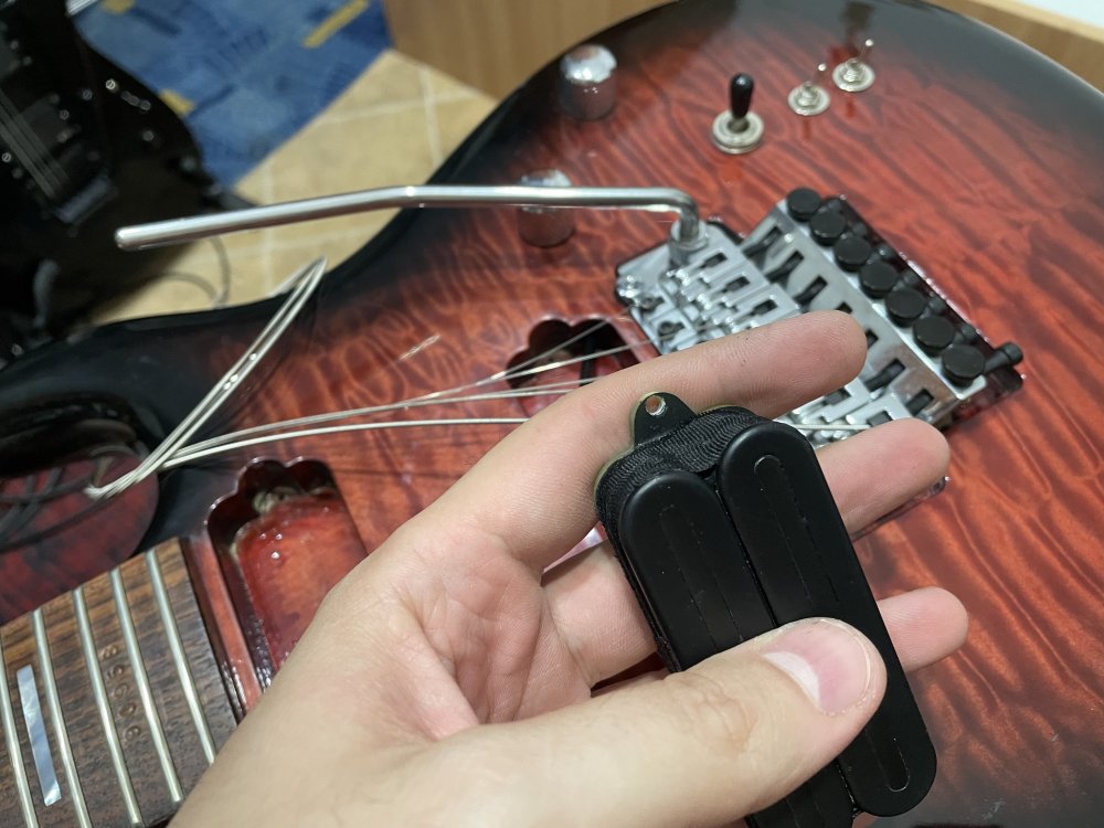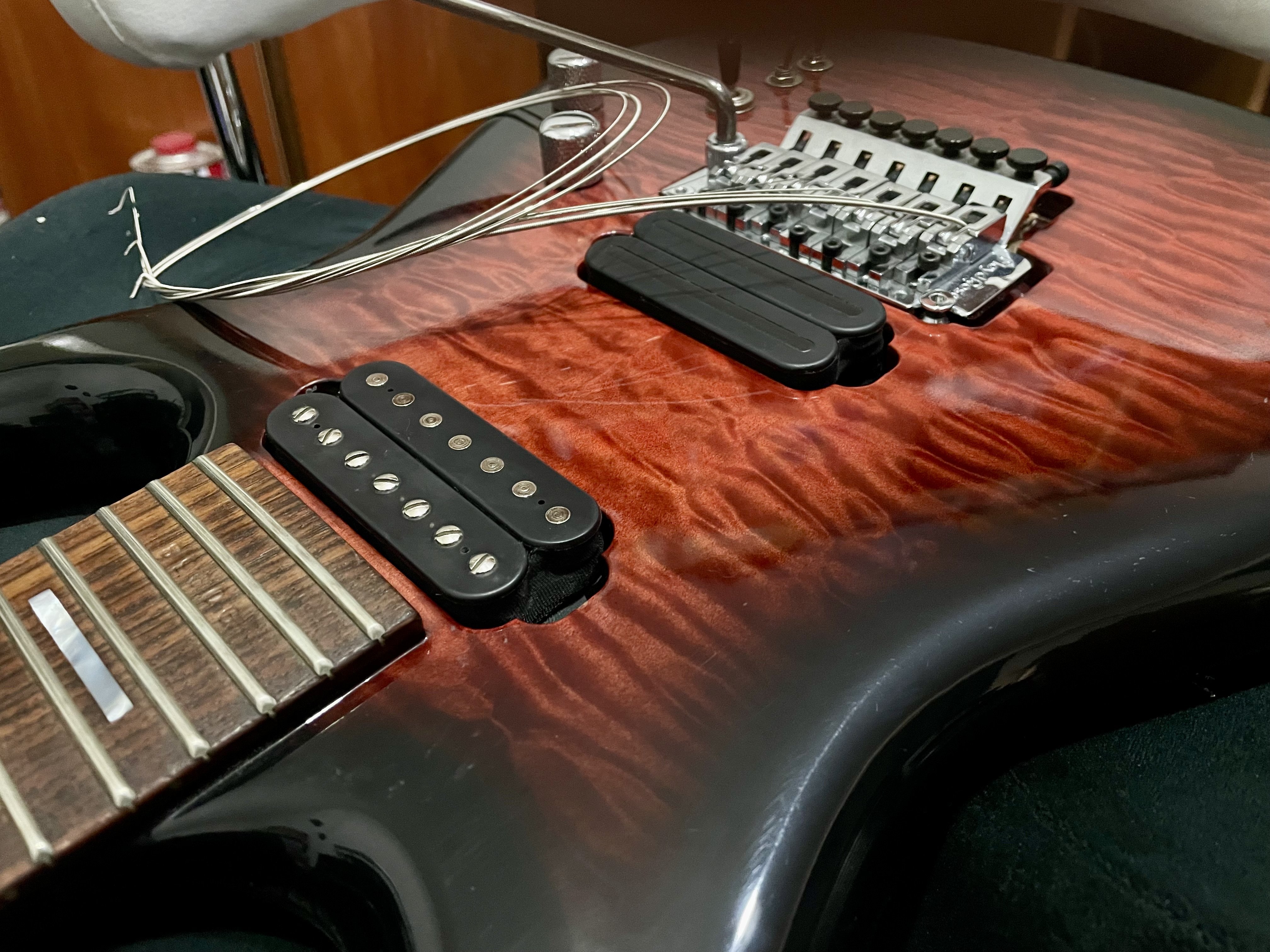 2. Did a pickup swap (so a partial rewire) in my Carvin DC727 USA 7 string guitar. Had to physically sand the DiMarzios (Illuminator neck + insane X2N bridge), because these Carvins before a certain year had smaller routings stock. Came out great!