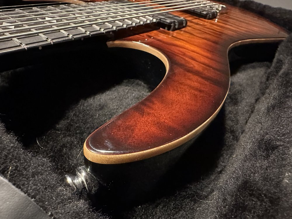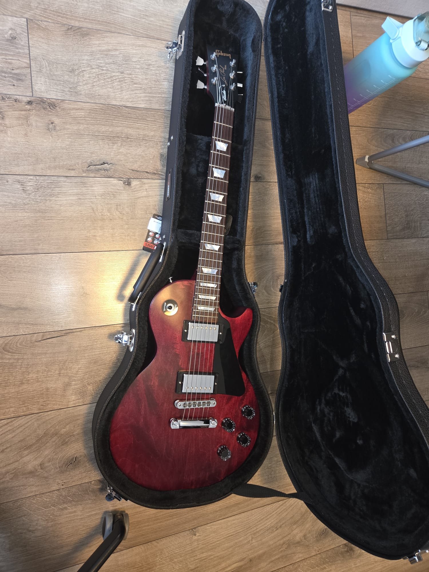 Vand Gibson Studio Faded HP Satin Cherry din 2016, luat de mine de nou in 2020 de la thomann. Nu prea am cantat la ea, a stat in husa originala si de curand intr-un case Gator. Am scos-o zilele astea sa ma intreb de ce nu prea am fost tentat sa cant si raspunsul e ca gatul nu este pe placul meu. - Este un Gat D, profil soloist, mai lat, similar Jackson, care mie personal nu imi place si nu sunt shredder. Are doze Burstbucker Pro, Inlay-uri de MOP, neck heel-ul sculptat si are faimosul sistem G-Force care merge foarte bine, vine si cu un acumulator in plus luat de mine. Nut de titan ajustabil, Saddle-uri tot de titan, sustain-ul este aproape infinit. Exagerez....dar este bun. Are 9-46, asa a venit de fabrica, asa am schimbat(chitara cred ca are 2 seturi de corzi schimbate, nu am cantat la ea), vine cu un set de NYXL in plus pentru fericitul nou proprietar. Mici defecte: - 2 mici ciuntituri la suruburile de adjustare a tailpiece-ului, rectificate, nimic de speriat. - Venea cu un pickguard cu sistem snap-on care la care s-au rupt clemele. Teoretic se poate pune pickguardul inapoi cu un bracket, dar trebuie gaurit topul si e pacat ca loteria lemnului a fost foarte generoasa cu chitara asta. Mai multe poze maine. Si astea sunt recente, dar sa fim accurate. Predare personala. Multumesc!