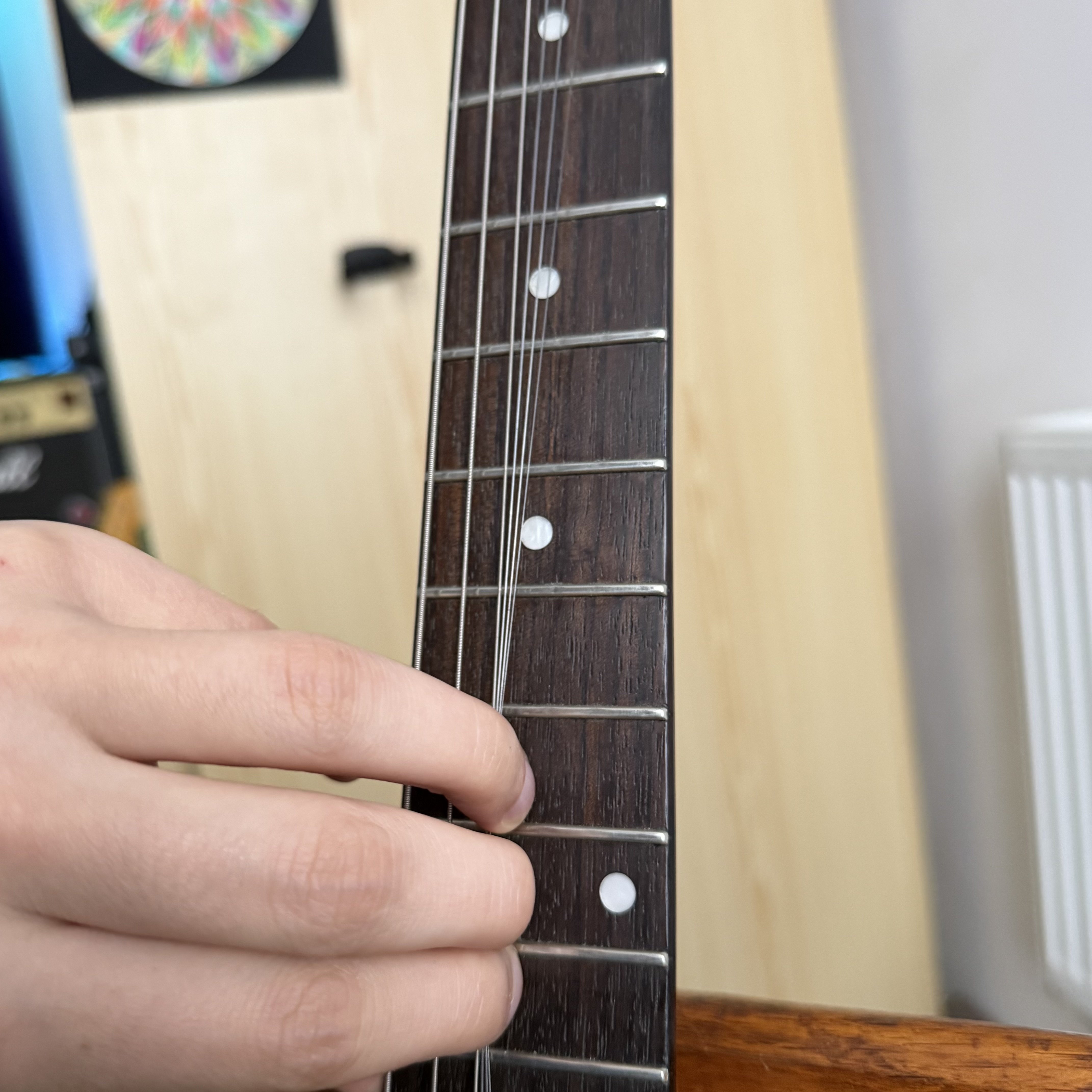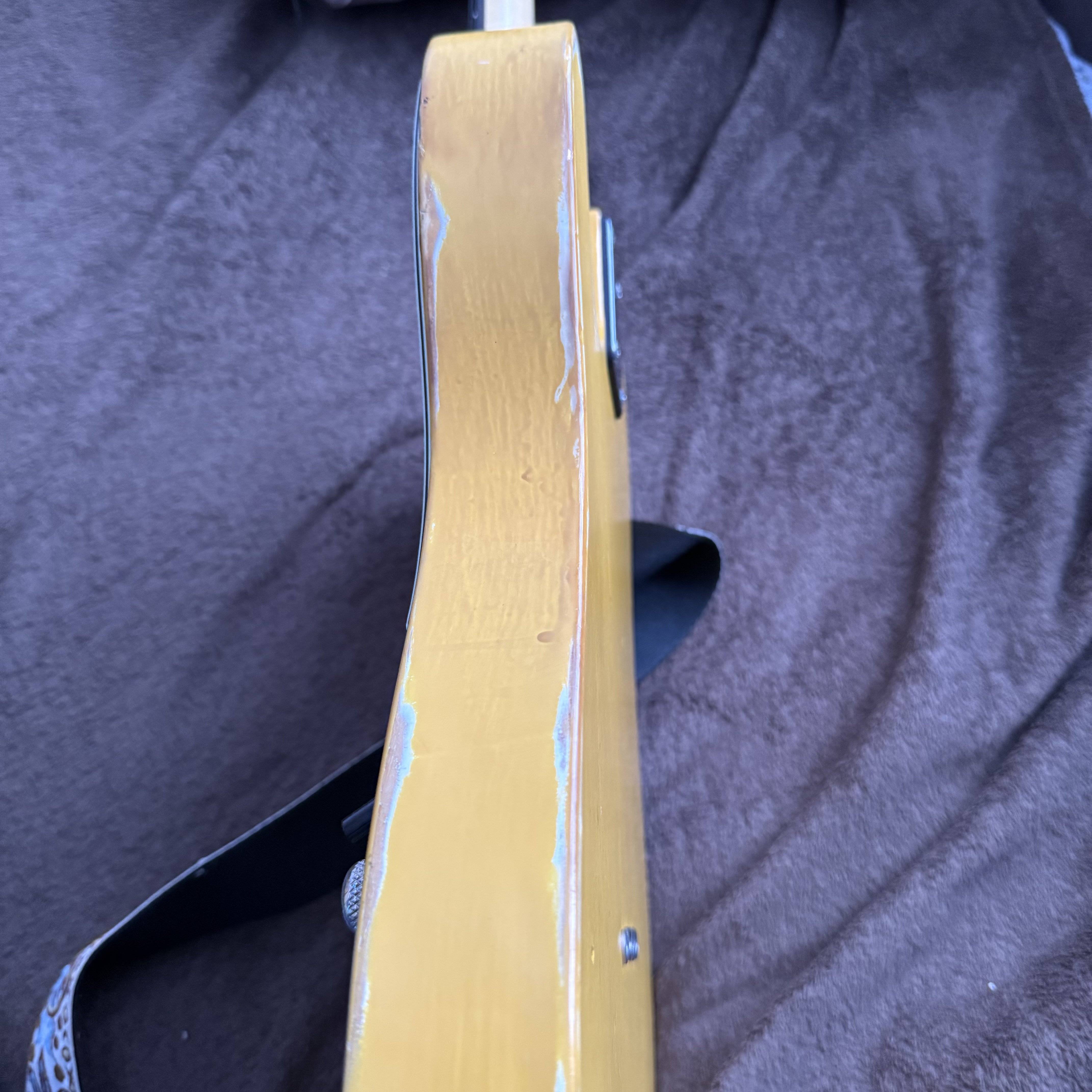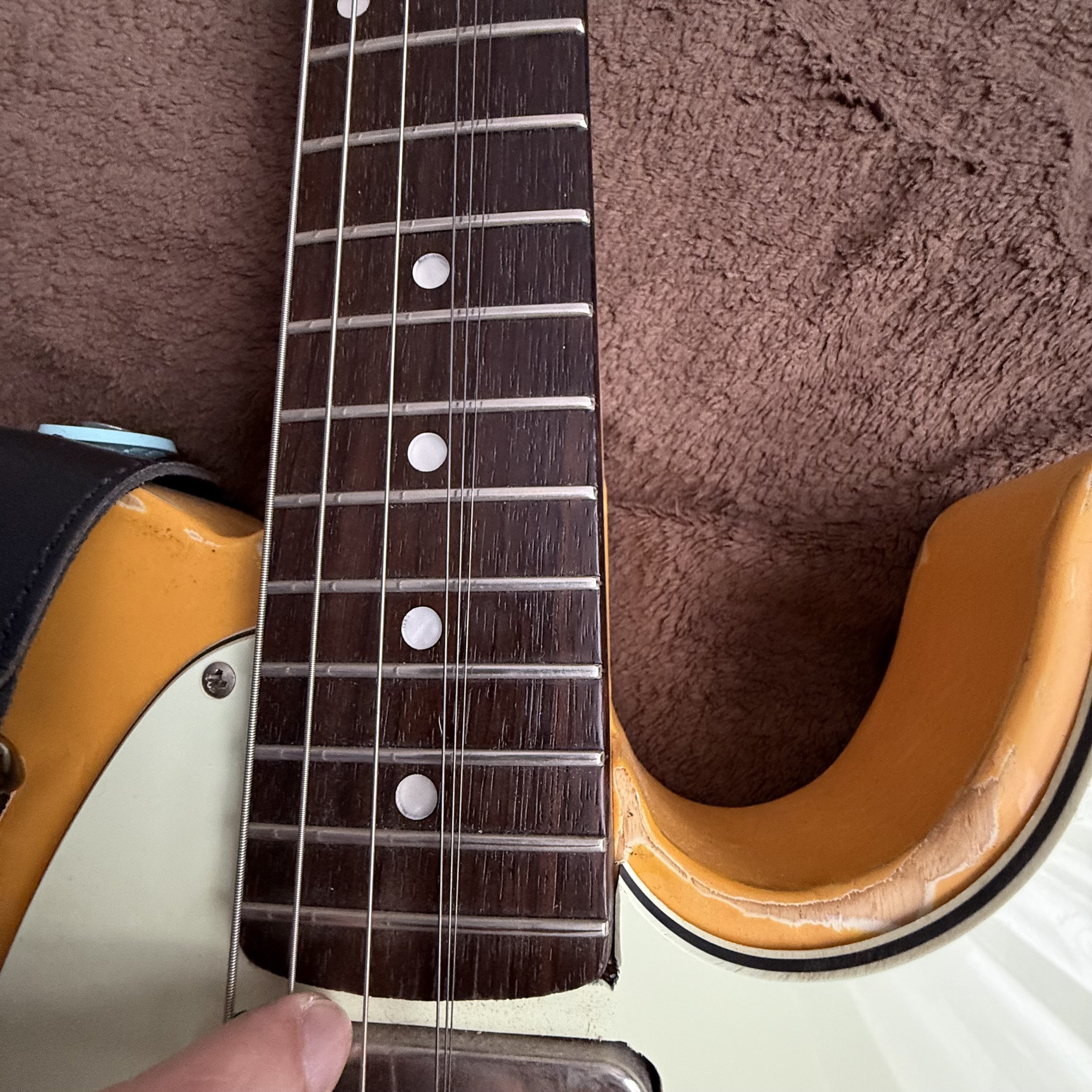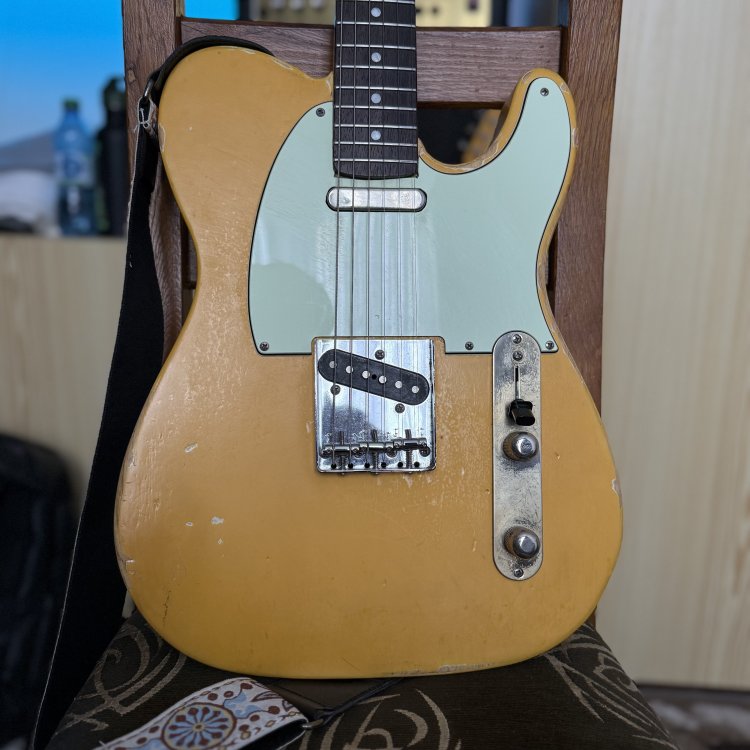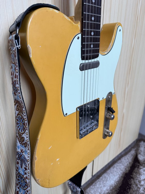 2. Istoria scurta a instrumentului: am cumparat cand stateam in Norvegia de la un baiat acolo, este no brand, no name, custom facut acolo de un lutier local. Initial a fost Esquire (a avut doar o doza pe pozitia bridge, humbucker in format single coil. Acum are doze de la Radioshop UK, handwound acolo, Vintage '52 telecaster set (£210, aprox. 1230 ron), sunet cu sunet adevarat vintage telecaster. https://www.radioshoppickups.com/product/pure-50s-telecaster-pickups-set/ Cand am adus acasa, instrumentul a suferit un mic accident, pe partea de headstock, a fost crapat tunerul de high E. Defectul a fost reparat la domnul lutier Vlad Cotrus (https://www.instagram.com/atticstringworks/) , a fost verificat totul pe chitara, inclusiv electronica, adaugat un treble bleed, setup complet si a primit si un neck shim (se vede prin poze si asta). Ca si specificatii: - Lac nitro (se vede si prin poze) - Pickguard mint green - Clasic 3 way switch, 1 volum, 1 treble - Fretboard din lemn de trandafir inchis - Spatele gatului nu are lac, este foarte comfortabil - Radius 9.5" - Are 22 de freturi, in stare buna (90-95%) Pret fix 3000 RON, nu ma grabesc cu vanzarea, se poate proba la Targu Mures sau la Cluj Napoca, depinde unde sunt in momentul respectiv. Motivul vanzarii: am si un strat si este un instrument prea bun sa stea nefolosit. Daca am uitat ceva, astept orice intrebare.