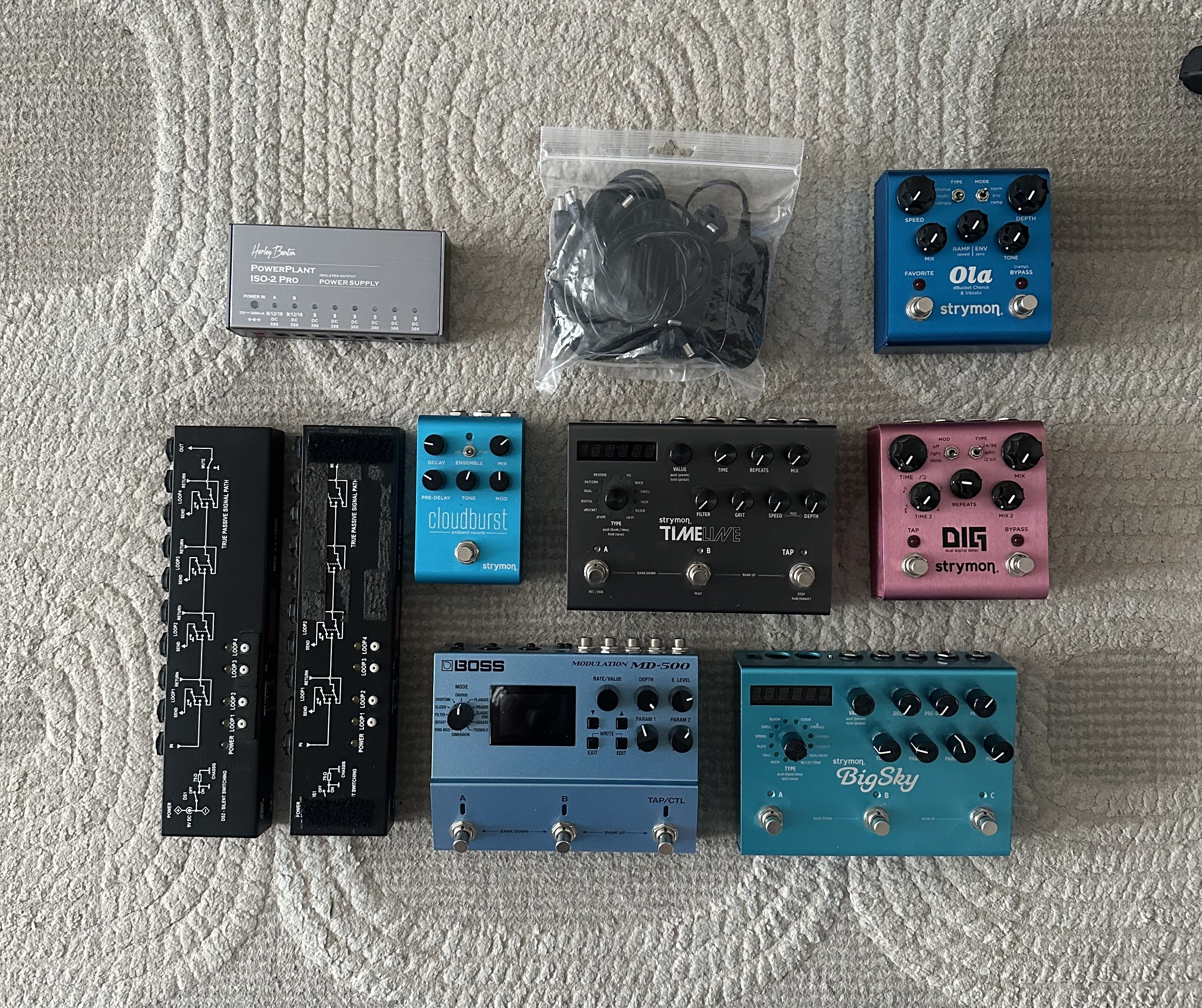 Strymon BigSky - 1650 lei Strymon TimeLine - 1650 lei Strymon DIG - 1450 lei Strymon Cloudburst - 950 lei Strymon Ola - 1050 lei Boss MD500 - 1450 lei Harley Benton PowerPlant Iso2-Pro - 200 lei G-Lab Midi 4x Looper - 500 lei bucata Pedalele sunt in stare foarte buna, fara nici un fel de probleme, preturi usor negociabile, la mai multe produse cumparate se face discount 10%(2 produse), 15% (3 sau mai multe produse) pentru suma totala.