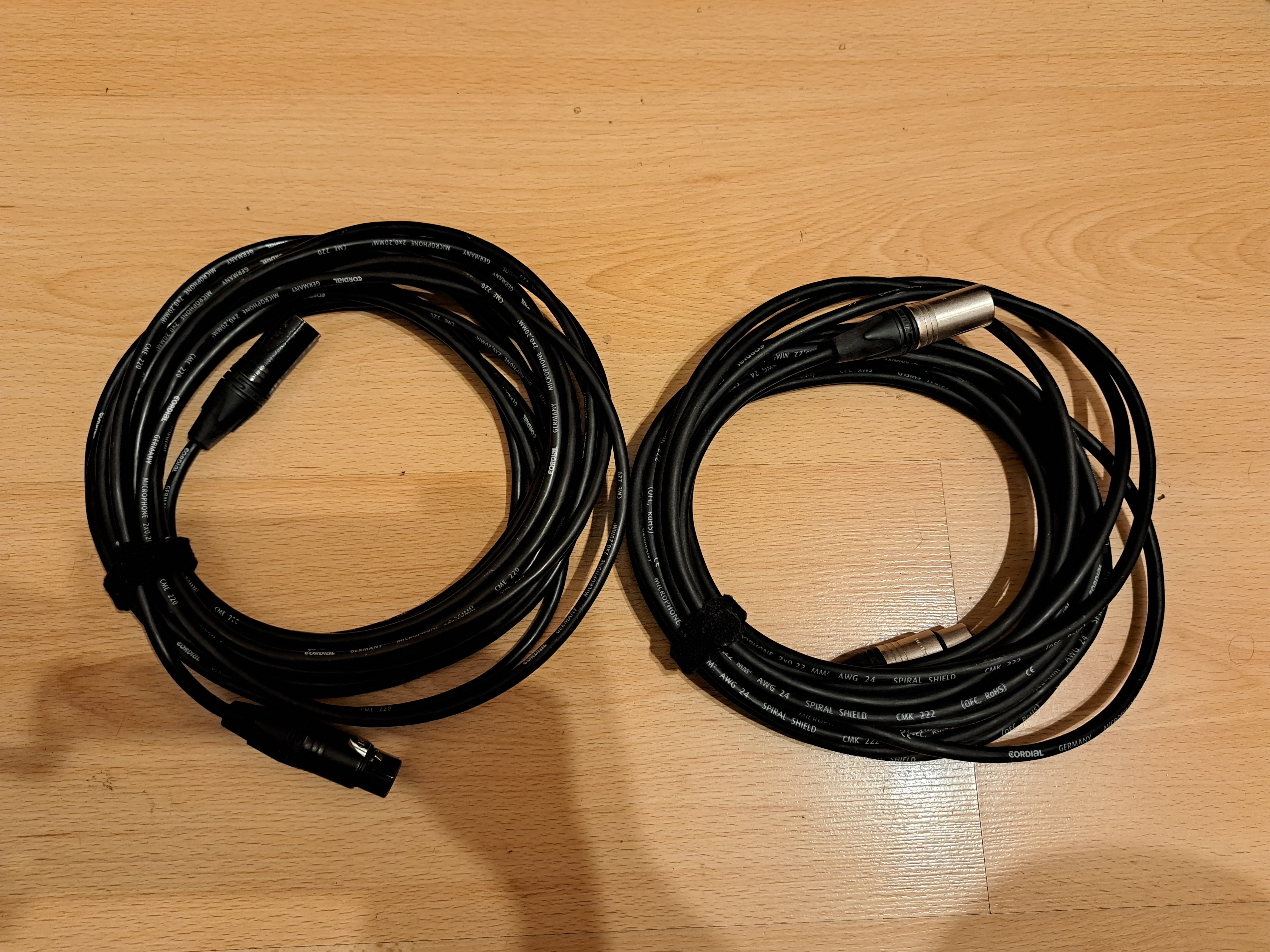 Vand un microfon Shure SM57, in set cu un stativ de microfon K&M si doua cabluri XLR de 9m fiecare de la Cordial cu mufe Neutrik. Microfonul a fost folosit destul de putin, pot oferi factura de la thomann ca dovada ca e original. Preturile dupa cum urmeaza: - Microfon Shure SM57 - 350 RON - Stativ K&M 27105 - 100 RON - 2x Cablu XLR de 9m Cordial CAM 9 - 150 RON impreuna Sau totul impreuna pentru 550 RON