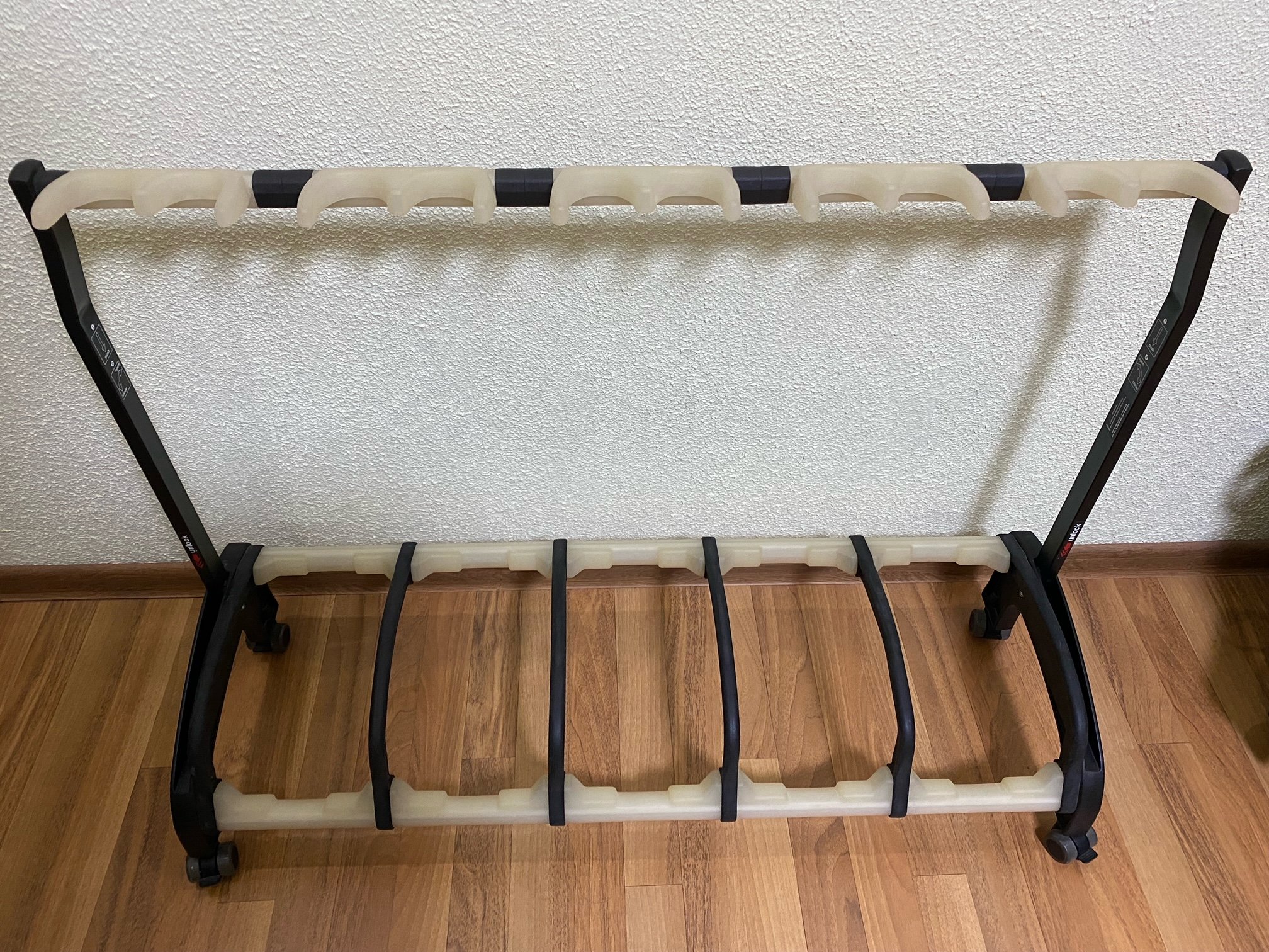 2. Vand un stativ pentru 5 chitare electrice/acustice/bass K&M 17515 Guardian Translucent - Cumparat de la Thomann - Are 4 roti cu sistem de blocare pe fiecare roata - Se pliaza in caz de transport/depozitare - Potrivit pentru chitare cu nitro, pot sa confirm ca am avut o perioada un Gibson Les Paul si nu a patit nimic stand in stativ - Singurul defect este ca acel cauciuc alb s-a mai ingalbenit de la trecerea timpului. Din ce am mai citit, inteleg ca este o problema cu astfel de modele (asa face toate domnle'), dar asta nu afecteaza cu nimic functionalitatea - Pret pe Thomann 740 RON, eu il vand cu 350 RON Predare personala in Bucuresti dar trimit si in tara pe cheltuiala cumparatorului, insa doar cu banii trimisi in cont in avans