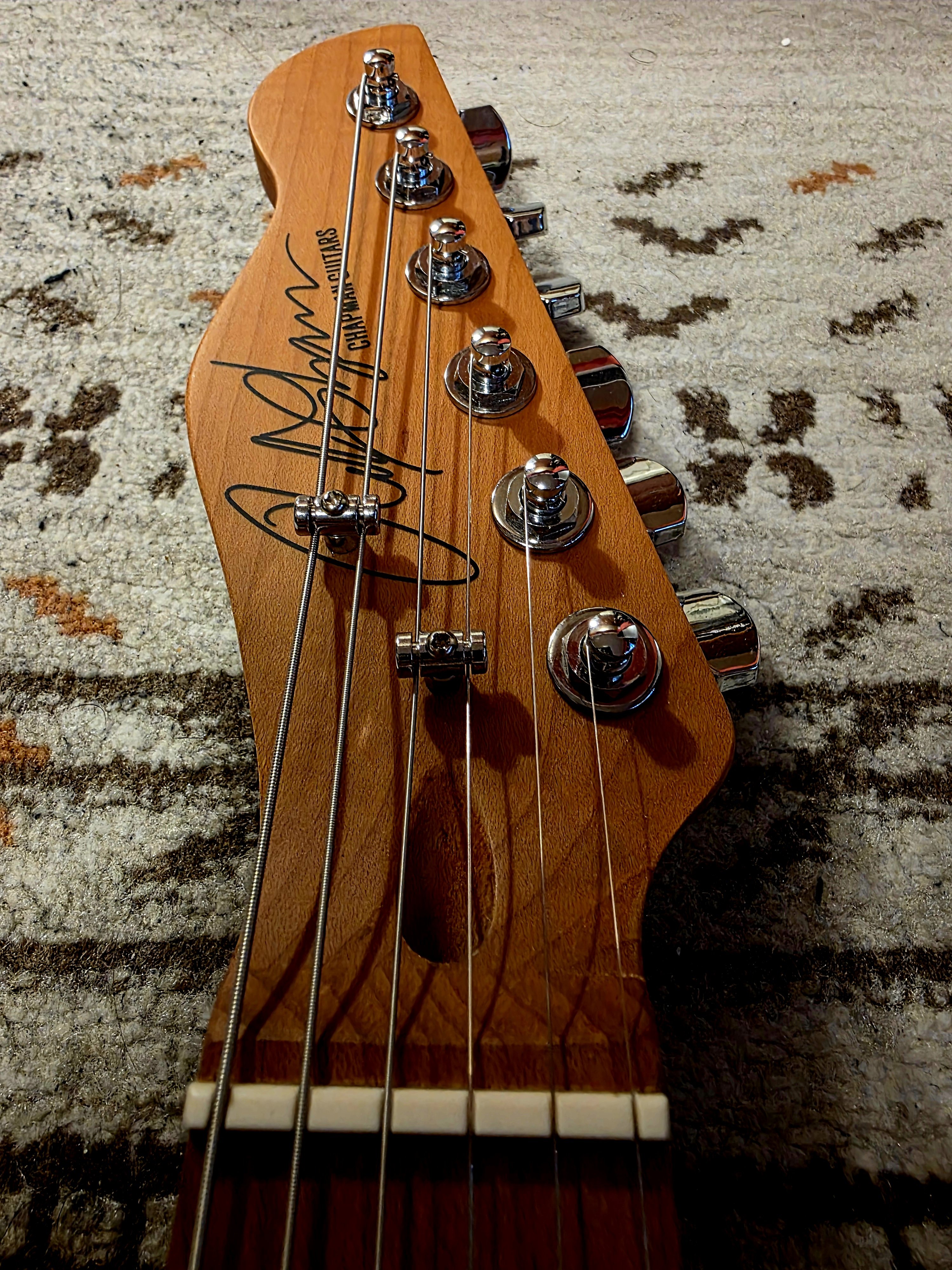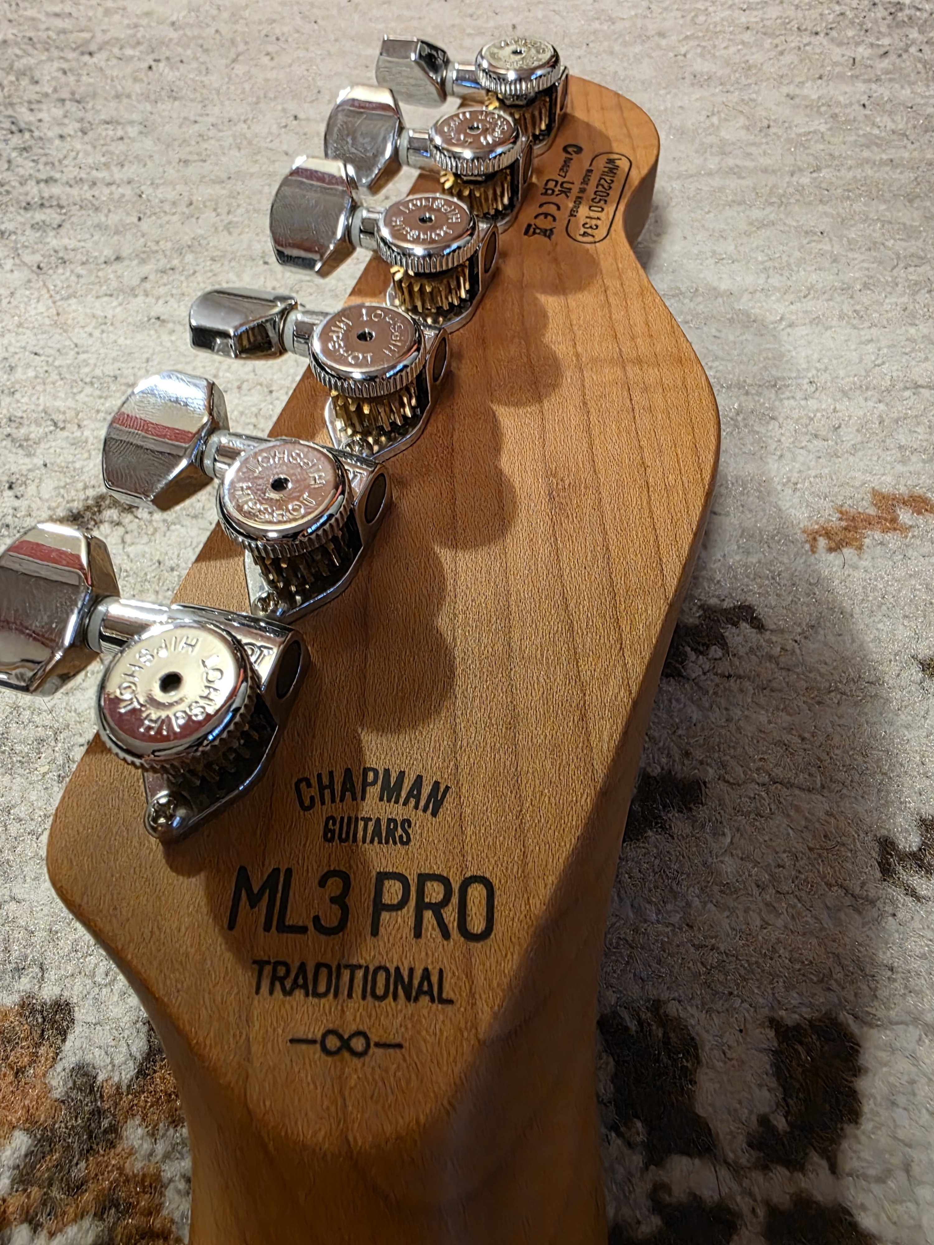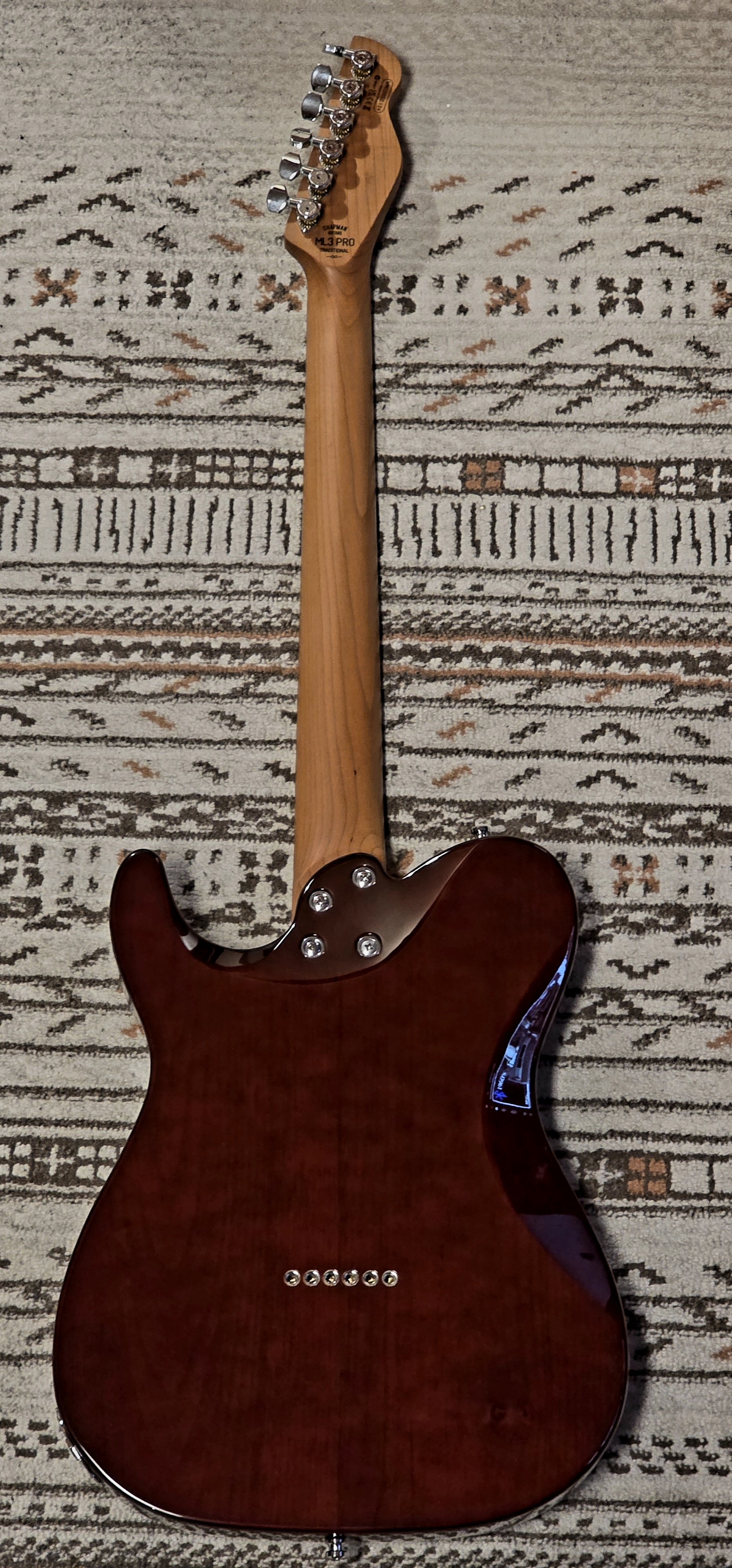 2. Vand acest Chapman ML3 Pro Traditional, culoare Vintage Sunburst Metallic. Este o combinatie ideala intre look de Tele traditional si functionalitate moderna (taste stainless steel, doze Seymour Duncan Hot Tele, tunere Hipshot, reverse headstock). Chitara este in stare excelenta, are doar cateva mici urme de buckle rash pe spate, in rest nu are niciun ding / lovitura / problema. Este setata ideal, si are corzi noi Elixir de 10-46. Componentele electronice (in afara de doze, care sunt Seymour Duncan din fabrica) au fost schimbate cu unele noi, made in USA (pots CTS 250K, switch Fender 3-way, jack TrueTone). Knoburile sunt noi, originale Fender Telecaster (cele cu care a venit chitara erau mai mici si aveau patternul de knurling mai slab definit). In rest, 10" radius, 25.5" scale, roasted maple neck, 22 stainless steel frets (!), doze Seymour Duncan Hot Tele, tunere Hipshot Locking, brass saddles. O vand pentru ca o cant tot mai rar si pentru ca am, ca de obicei, mult prea multe instrumente... Se poate proba in Timisoara, o livrez personal (fara curier) in jud. Timis, Arad, Bihor, Hunedoara, Sibiu, poate chiar si Cluj sau Satu Mare. Va stau la dispozitie pentru orice fel de detalii.