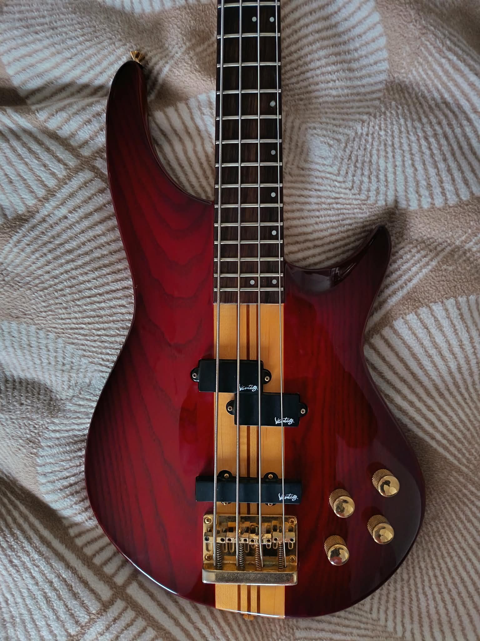 Reduc colectia, din pacate trebuie sa pun la vanzare acest bass f misto. Bass pasiv neckthrough facut in Korea anii 90 de Samick. Stare buna, reglat la lutier si corzi noi LaBella nickel. Se poate proba in Tm. Vine cu un hardcase.