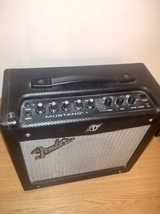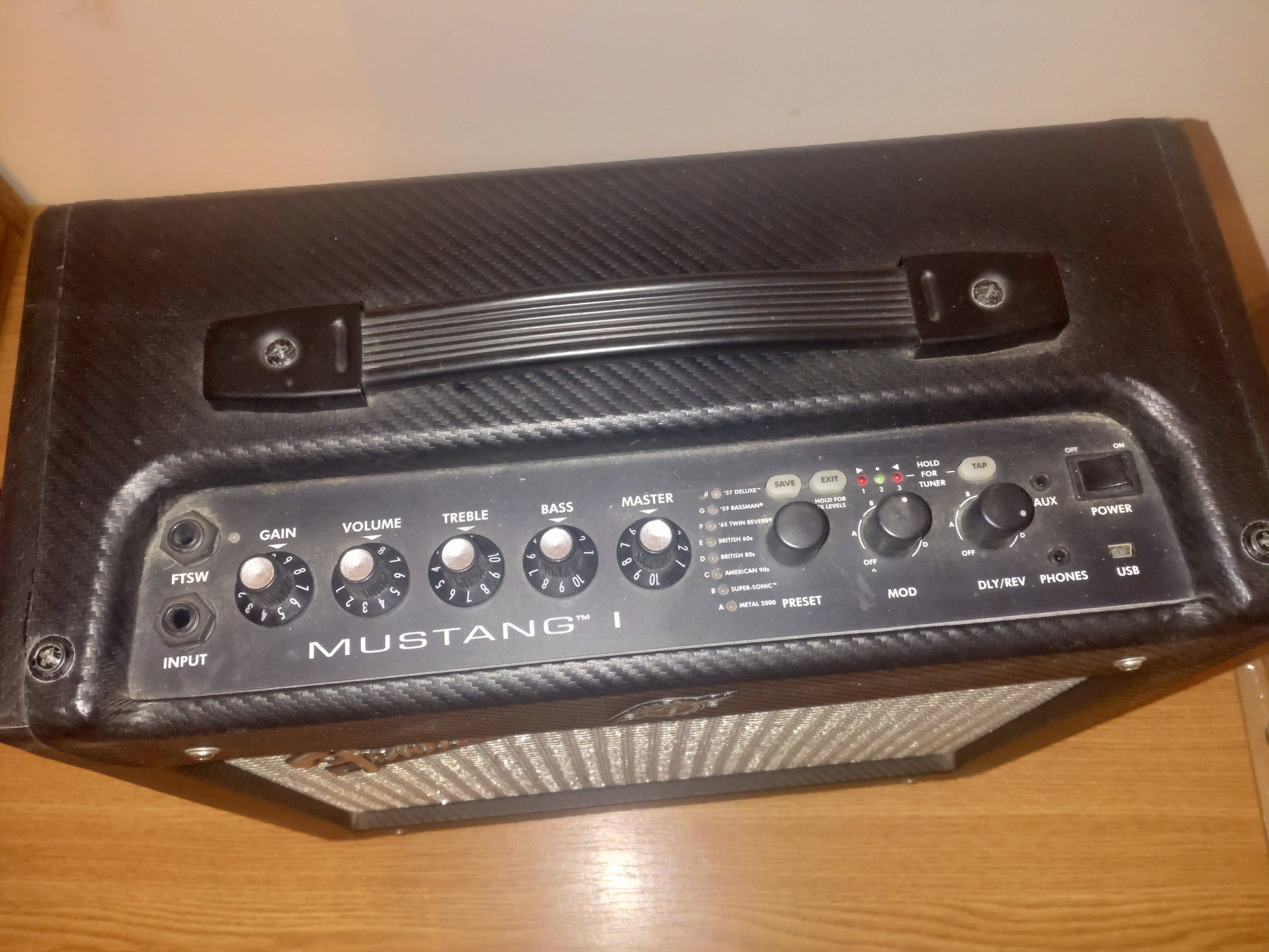 🎸 **Amplificator chitară electrică Fender Mustang I v.1 – 20W - potrivit atât pentru începători, cât și pentru avansați. Sunet foarte bun, multe presetări și efecte integrate, perfect pentru studiu acasă sau repetiții. 🔊 **Caracteristici tehnice:** * Putere: **20 W** * Difuzor: **1 x 8” Fender Special Design** suplimentar am adăugat o mufă pentru cabinet extern * Tehnologie: **Solid State / Modeling** * **8 modele de amplificator** * **24 presetări** din fabrică * Efecte integrate: reverb, delay, chorus, flanger, tremolo etc. * Conectare **USB** pentru PC/Mac (editare preseturi), ofer și cd-ul cu soft * Intrare AUX și ieșire pentru căști * Compact și ușor de transportat * Sunet clar, versatil, specific Fender 📦 Stare: foarte bună 💰 **Preț: 500 lei** prețul include și switchul original. 📍 Predare personală sau curier 📞 Pentru detalii, mesaj privat Pentru schimb mă interesează radiouri vechi cu lămpi, în stare de funcționare.