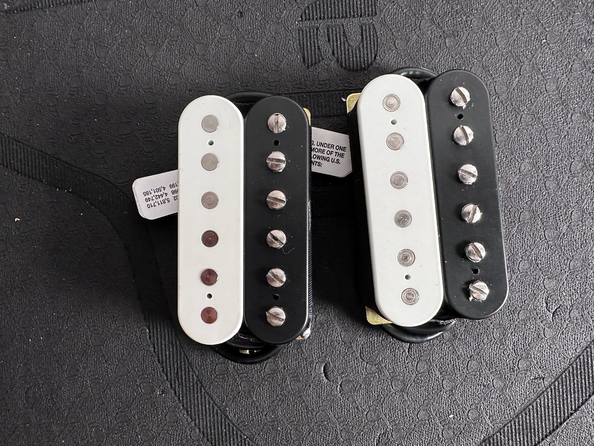 Vând setul acesta de doze, cumpărat de mine acum o lună. Am realizat că-mi plac mai mult Seymour Duncan. Sunt impecabile, ca noi. Sunt F-Spaced (spacing mai mare, ideal pentru chitare cu floyd, dar nu numai. Eu le-am avut într-un les paul) și au textura mată.
