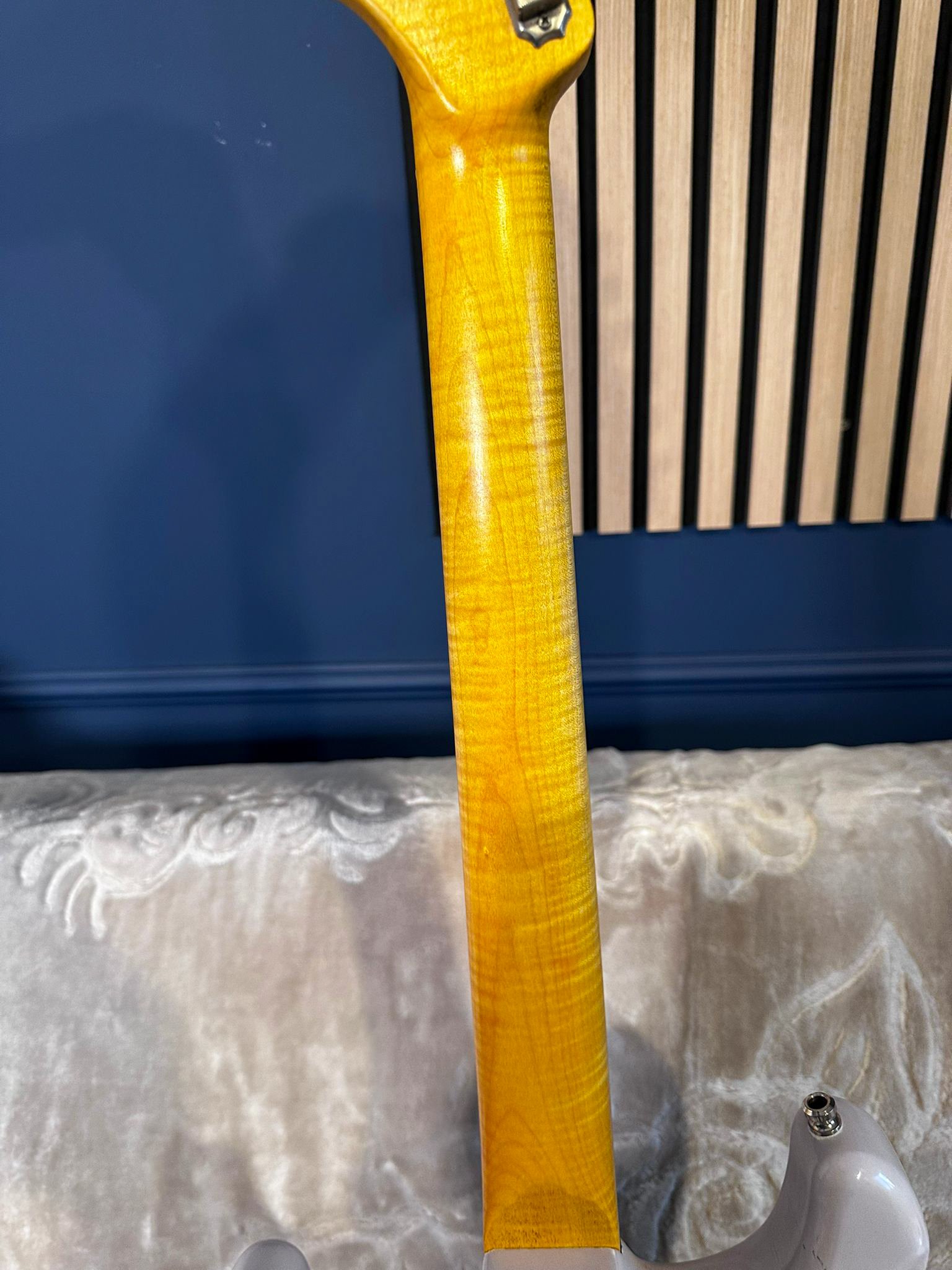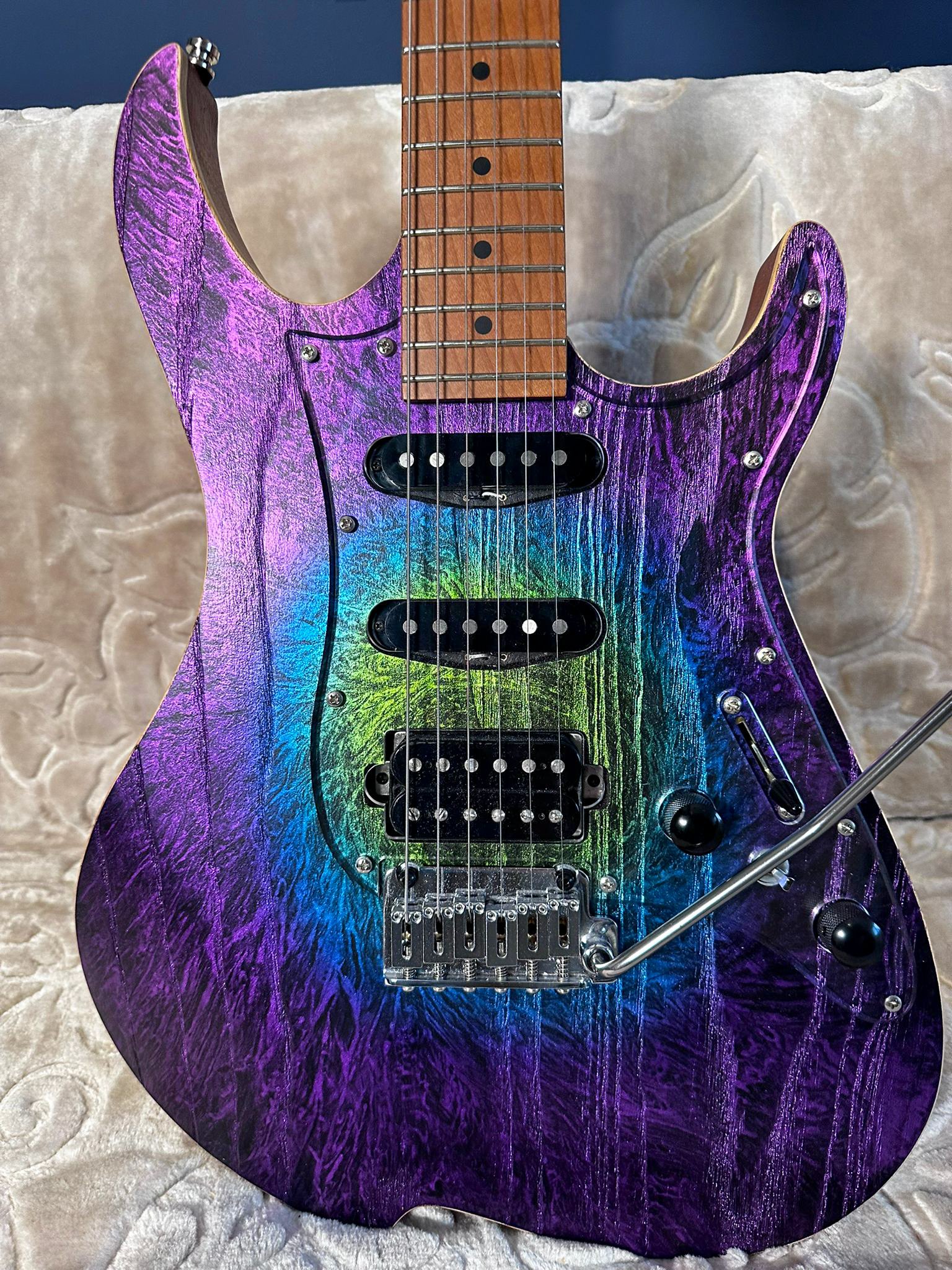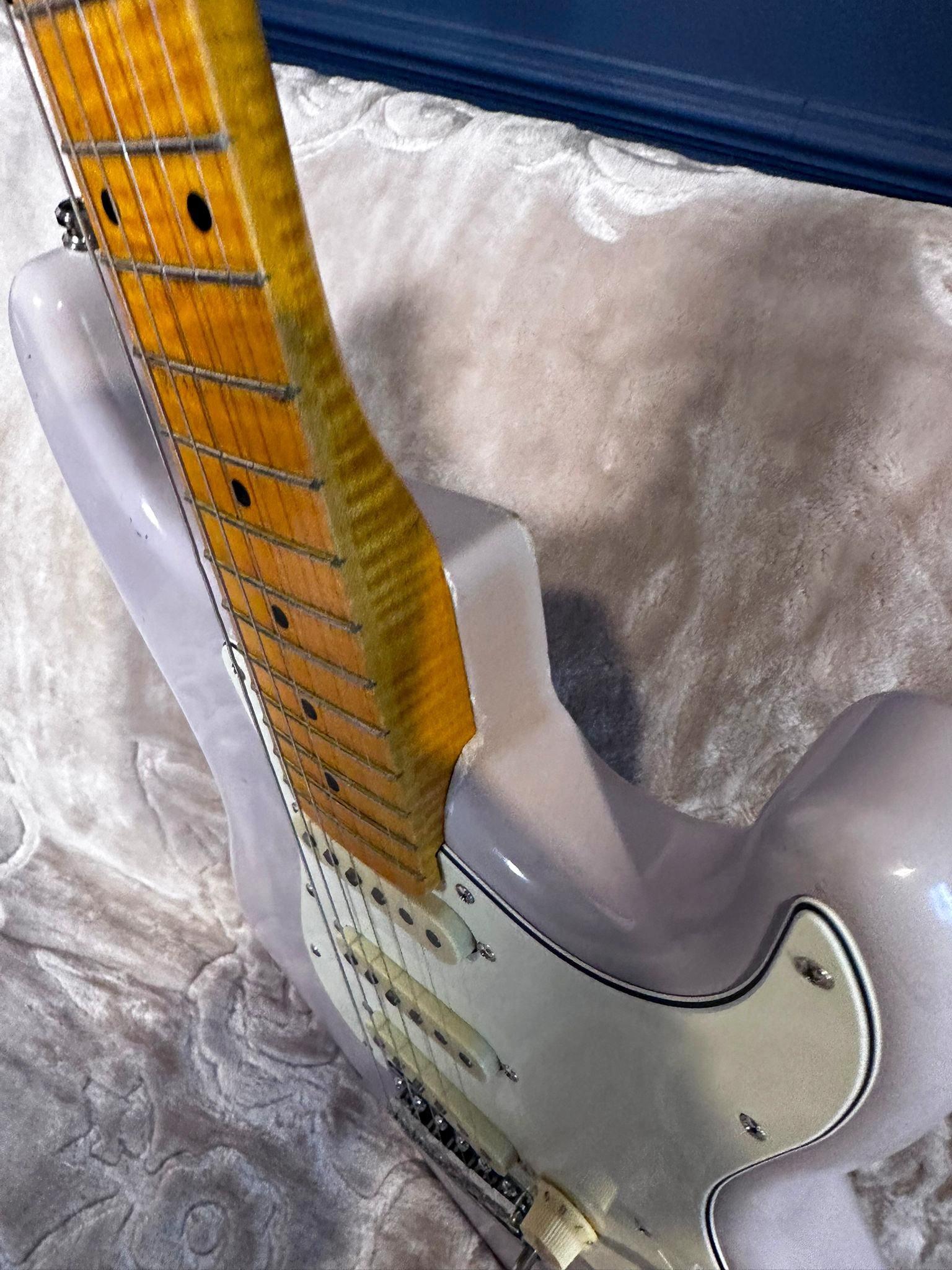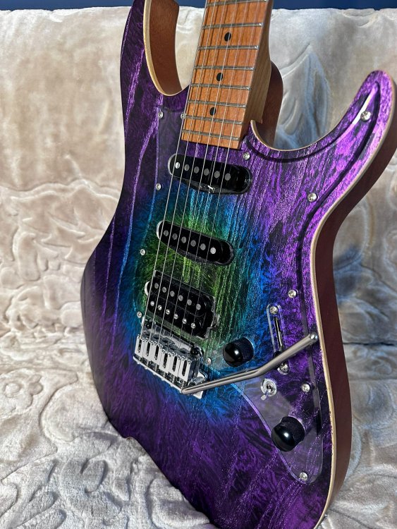 Pun la vânzare, pentru scurt timp, o chitară deosebită, fabricată în Japonia. Are un aspect fabulos, trei culori combinate interesant. Mie mi se pare că seamănă cu Aurora boreală sau ceva dintr-un nor stelar! În plus față de cum vine în standard, chitara a primit câteva upgrade-uri: - nut Tusq self lubing, care asigură păstrarea acordajului după ce folosești tremolo-ul; - brass block pentru tremolo (cel standard va fi inclus) care face chitara să sune și mai bine; - butoane negre (cele crom vor fi incluse); - strap lock pins. Chitara are 3kg, foarte rezonantă și comodă! Nu are semne de folosire. Vine cu o husă Harley Benton aproape nouă. Prețul unei chitare, pe site-ul Vola, cu tot cu transport și taxe la noi ajunge, în momentul actual, cu codul lor de reducere, aproximativ 6000 de lei. Eu vreau pe a mea 4750 lei plus transport și nu mă interesează niciun schimb.