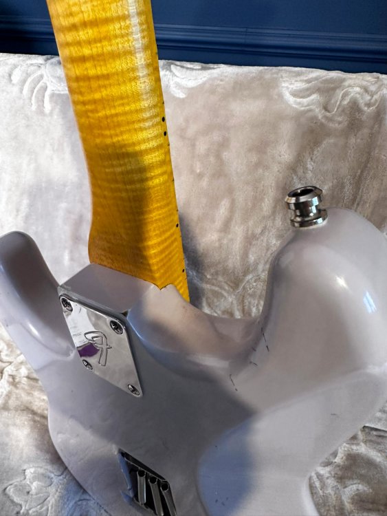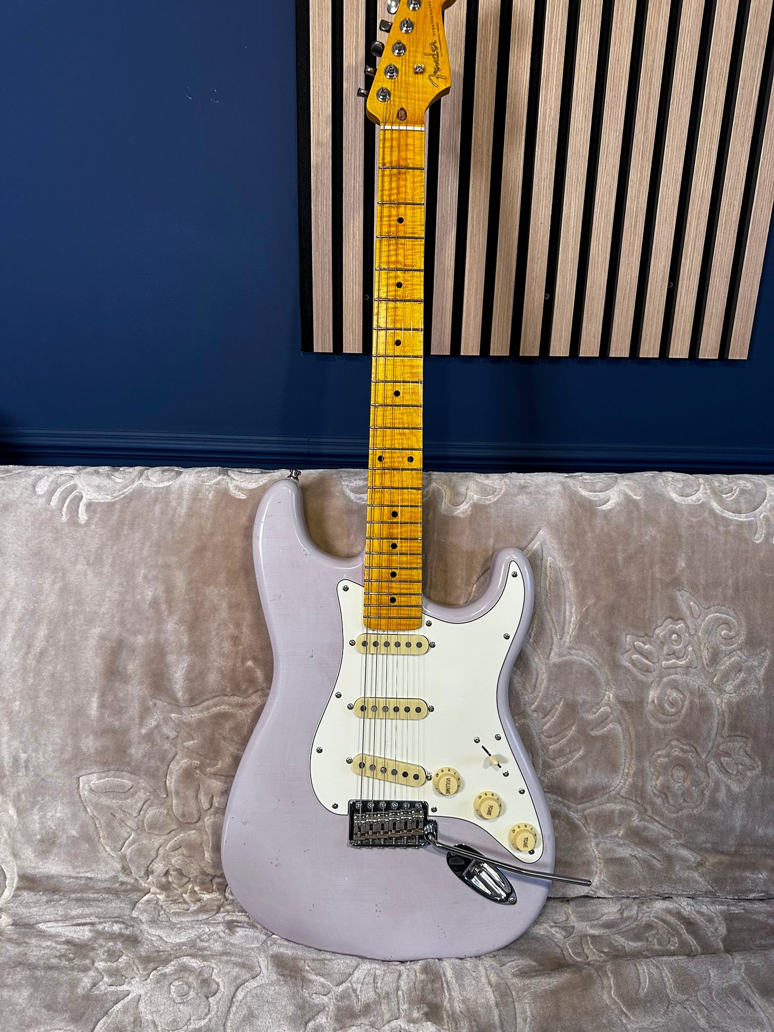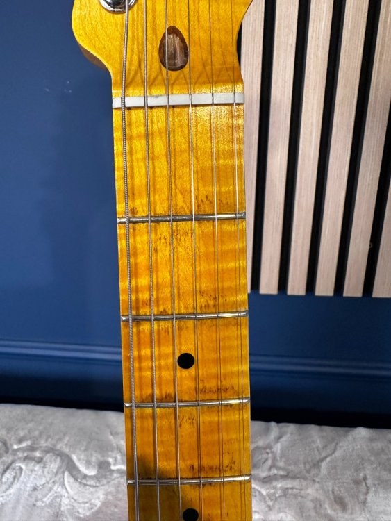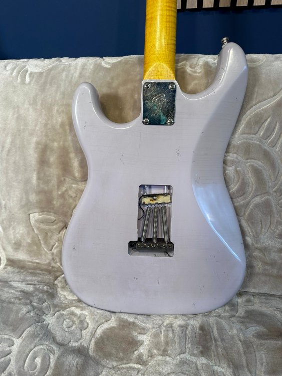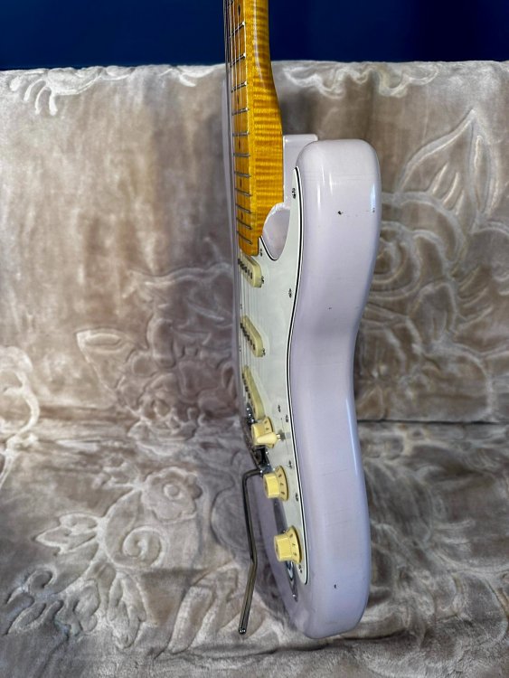 Vând un stratocaster/partcaster deosebit. Culoarea este lila. - corp strat relic by MJT finishes (Made in USA); - gât flame maple WD music licensed by Fender, chunky (gros), radius 12; - tremolo Gotoh made in Japan; - cheițe Fender vintage worn; - strap lock pins; - doze custom (nu sunt de firmă, dar își fac treaba; dacă vrei ceva de firmă, scrie-mi și vedem ce găsim, prețul va crește însă) Chitara are semne pe tot corpul și pe gât, este relic! Are greutatea de aproximativ 3,4 kg. Sună excelent acustic și amplificată! Prețul componentelor depășește suma pe care o cer eu, nu mai zic de taxe vamale/transport. Nu mă interesează deloc schimburile!