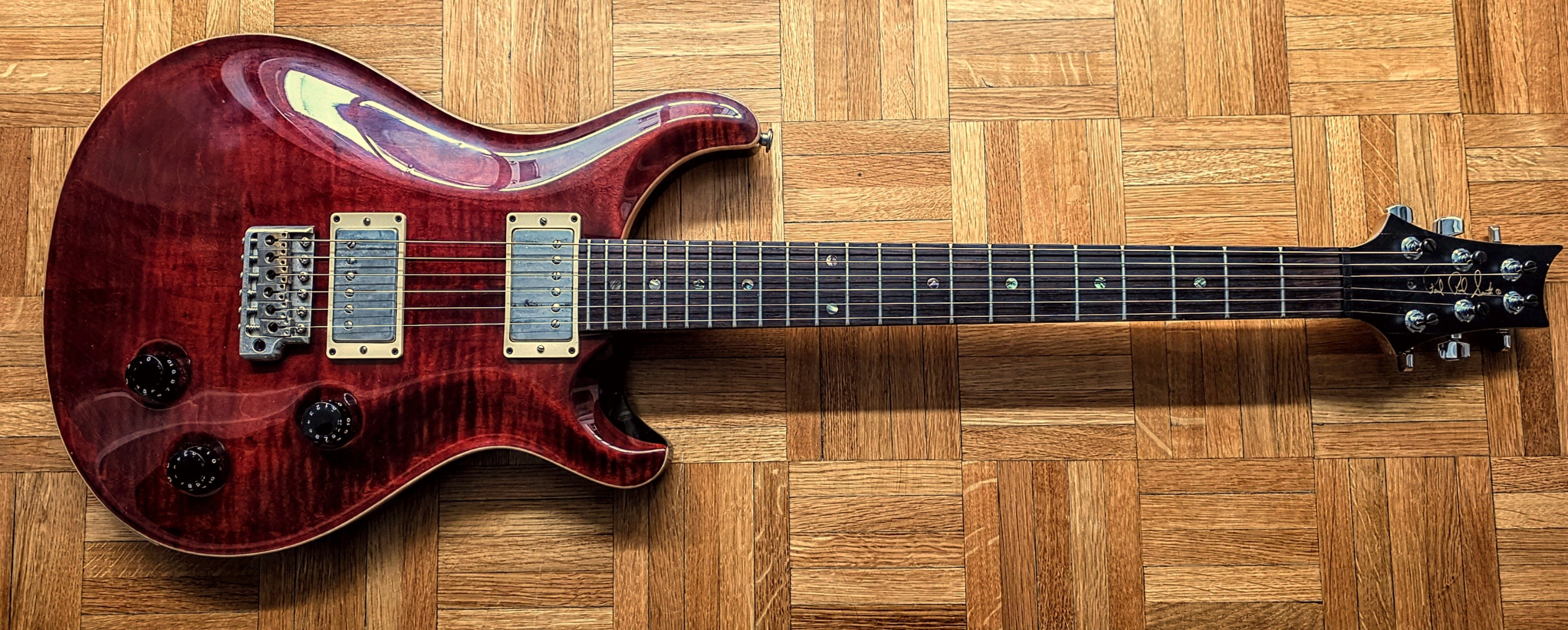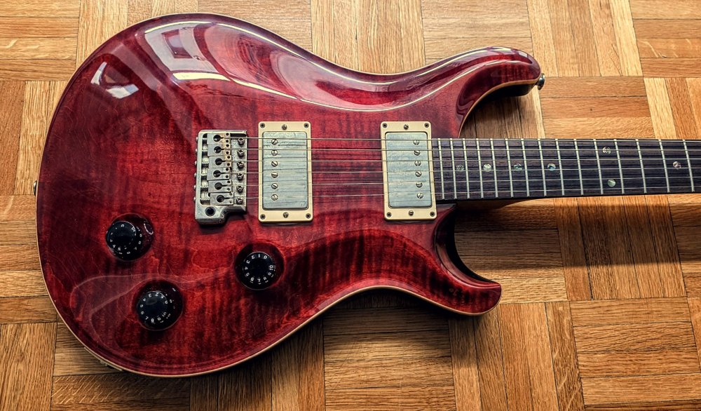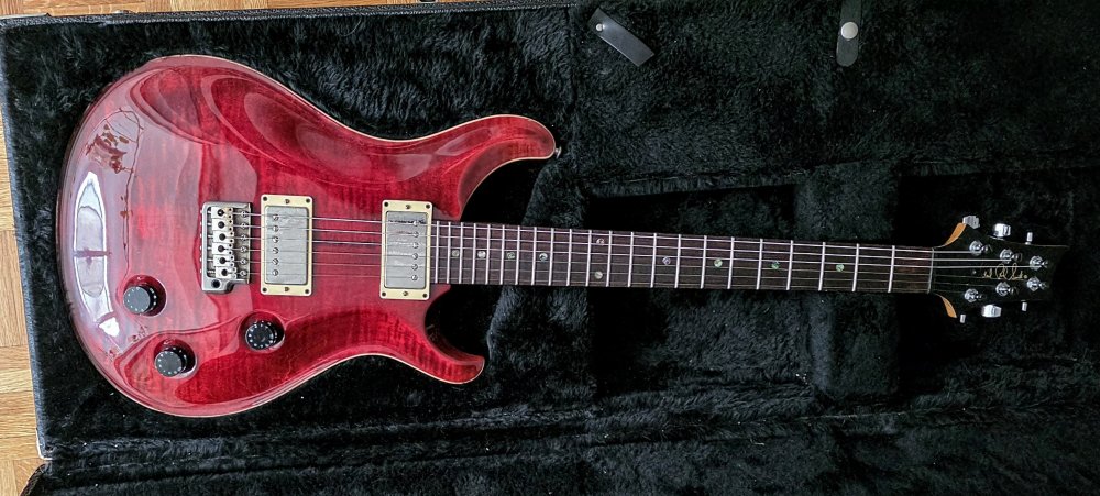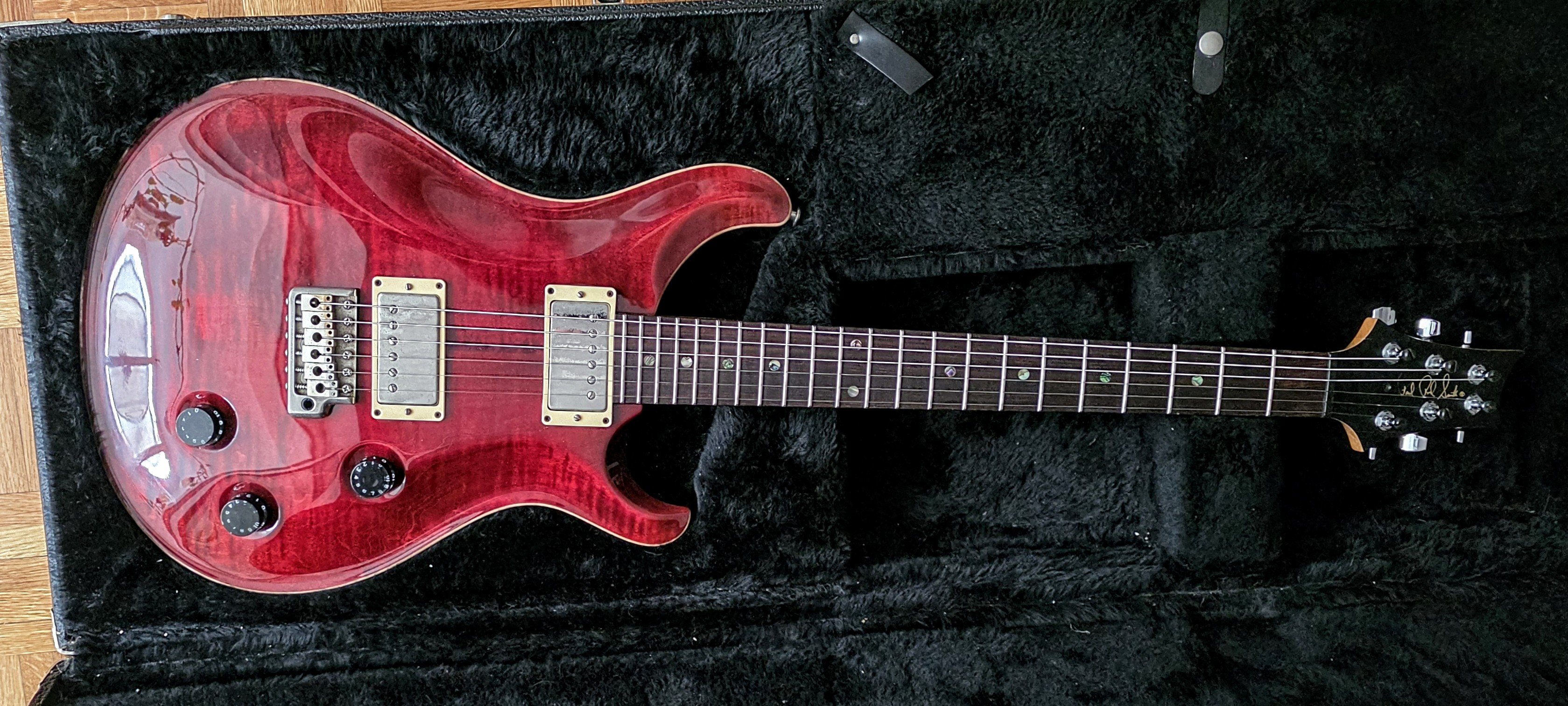 4. Vand un PRS CE 22 Made in USA de pe vremea cand se faceau chitari doar Core Series, adica acelea care acum costa in jurul a 5000 euro. Este fratele geaman al modelului Custom 22/24 din aceeasi perioada (inceputul anilor 2000), de care difera doar prin gatul din maple si atasat cu suruburi de corp, in arest avand specificatii absolut identice. Corpul este facut din mahon, cu top figured maple, grif maple cu tastiera de rosewood si 22 taste, locking tuners si tremolo PRS cu saddles si sustain bloc din bronz (saddles sunt nickelate de PRS peste bronz). Dozele sunt Dragon 2, si impreuna cu sistemul de switching ofera 5 tonuri distincte care suna exceptional, pozitia 1 si 5 fiind in genul celor de Les Paul, iar pozitiile 2 si 4 fiind niste splituri excelente care suna in genul Tele (pozitia 2) si Strat (pozitia 4). De fapt acesta a fost si ideea lui Paul Reed Smith cand a proiectat chitara, sa ofere tonuri foarte credibile de Gibson si Fender, si a reusit din plin. Chitara este in stare foarte buna pentru un instrument care are 23 ani, cu urme normale de folosire, singurul care iese in evidenta fiind o urma de arsura de la un stativ pe spatele gatului, unde s-a decolorat lacul. Nu se simte la mana, si nici nu se vad urme de fisura sau ruptura, este doar estetic. Cineva priceput probabil o poate face invizibila. Tastele sunt in stare exceptionala, fara urma de uzura. Chitara este setata foarte comod si suna exceptional. Este modelul meu preferat de PRS, cu una identica (doar alta culoare) cant cu trupa. Vreau sa o dau pentru ca mai am inca 2 identice, iar activitatea mea cu trupa nu justifica mai mul de una. Vine insotita de bara de tremolo si de hardcase-ul original PRS. Modelul actual este mai degraba inrudit cu seria S2 decat cu core, si costa in jur de 3000 euro si vine fara hardcase. Eu cer pe a mea 1700 euro. Nu doresc schimburi, o vand pentru ca sta degeaba. Contact 0731 444 646