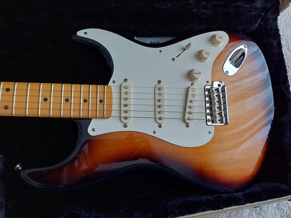 Vând Fender Eric Johnson Signature Stratocaster, 2TS, light weight selected woods, cel mai aproape model de fender CS pe care îl puteți găsi încă la preturi decente! Nu accept schimburi, chitara are urme normale de uzură nu este mint condition, a fost cântată acasă si in concerte nu necesita setup sau alte investiții.