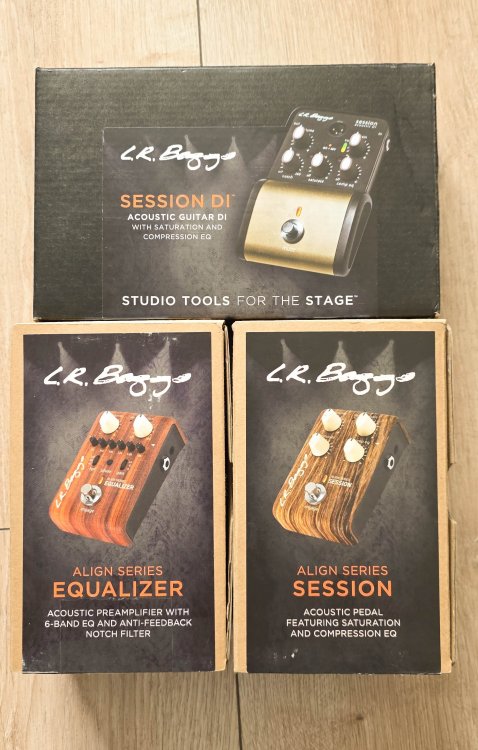 Vand un rig pentru chitara acustica, am vrut sa fac un proiect unplugged si am ramas doar in faza de discutii, fara sa mai incepem si treaba. Eu intre timp ma pregatisem serios, dupa cum veti vedea mai incolo putin. Ca idee am luat tot ce este necesar pentru un rig high end pentru acustica, de la unul dintre cei mai respectati producatori din piata, Lr Baggs Lr Baggs Session Acoustic DI - 900 lei - este asa cum ii spune si numele un DI high end, practic minimul pe care ar trebui sa il aibe orice chitarist care canta cu chitara acustica. Este unul dintre cele mai apreciate de pe piata, pentru ca suna foarte muzical, peste el fiind doar solutii ultra high end, gen Grace Audio, care e in cu totul alta gama de pret. https://www.thomann.de/ro/lrbaggs_session_acoustic_di.htm Lr Baggs Align Series Equalizer - 650 lei - este asa cum ii spune si numele un egalizator cu 6 benzi, notch filter si filtre pt joase si inalte. Este un tool excelent pentru a manipula sunetul dupa gust. Face minuni cu o chitara mediocra, cu un excelenta o duce aproape de perfectiune. https://www.thomann.de/ro/l_r.baggs_align_eq_effektpedal.htm Lr Baggs Align Series Compresion - 600 lei - o pedala de compresie, unul dintre cele mai utile enhancere pentru acustica, ajuta atat tonal cat si pe partea de exprimare, setata corect scoate chitara in fata si accentueaza pasajele unde este nevoie de asa ceva https://www.thomann.de/ro/l_r.baggs_align_session_effektpedal.htm Preturile sunt super joase pentru niste pedale practic noi. Vin in cutiile originale si insotite de accesorii acolo unde e cazul. Pentru cine doreste tot pachetul pretul este de 1800 lei, altfel preturile raman cele afisate. Singurele schimburi sunt doar cu talent si inspiratie, singurele lucruri care imi lipsesc. Contact 0731 444 646