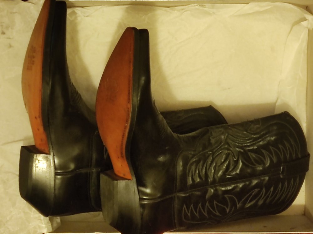 Cizme ciocate înalte western, calitate foarte bună, piele naturală, inclusiv talpa. Cută longitudinală talpă înainte de toc (nu se pliază talpa imediat lângă toc), căptușeală piele albă cu întăritură la călcâi din piele neagră lucioasă (nu necesită limbă, se încalță/descalță ușor), cusături decorative. Absolut noi, în cutie, însă nu îmi vin; se potrivesc cuiva care poartă 42, maxim 43. În magazin, modelul e ~1700 lei. Le dau cu regret (chiar sunt de super calitate) cu 1200 negociabil.