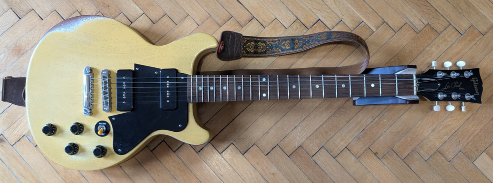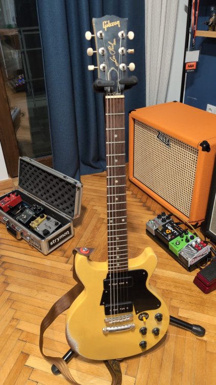 2. I`ve been playing this guitar for around 15 years, all the wear is real done through countless gigs around different continents. Upgrades are: 1- Emerson electronics, 2- Lollar p90s, 3- ABM bridge and stop tail