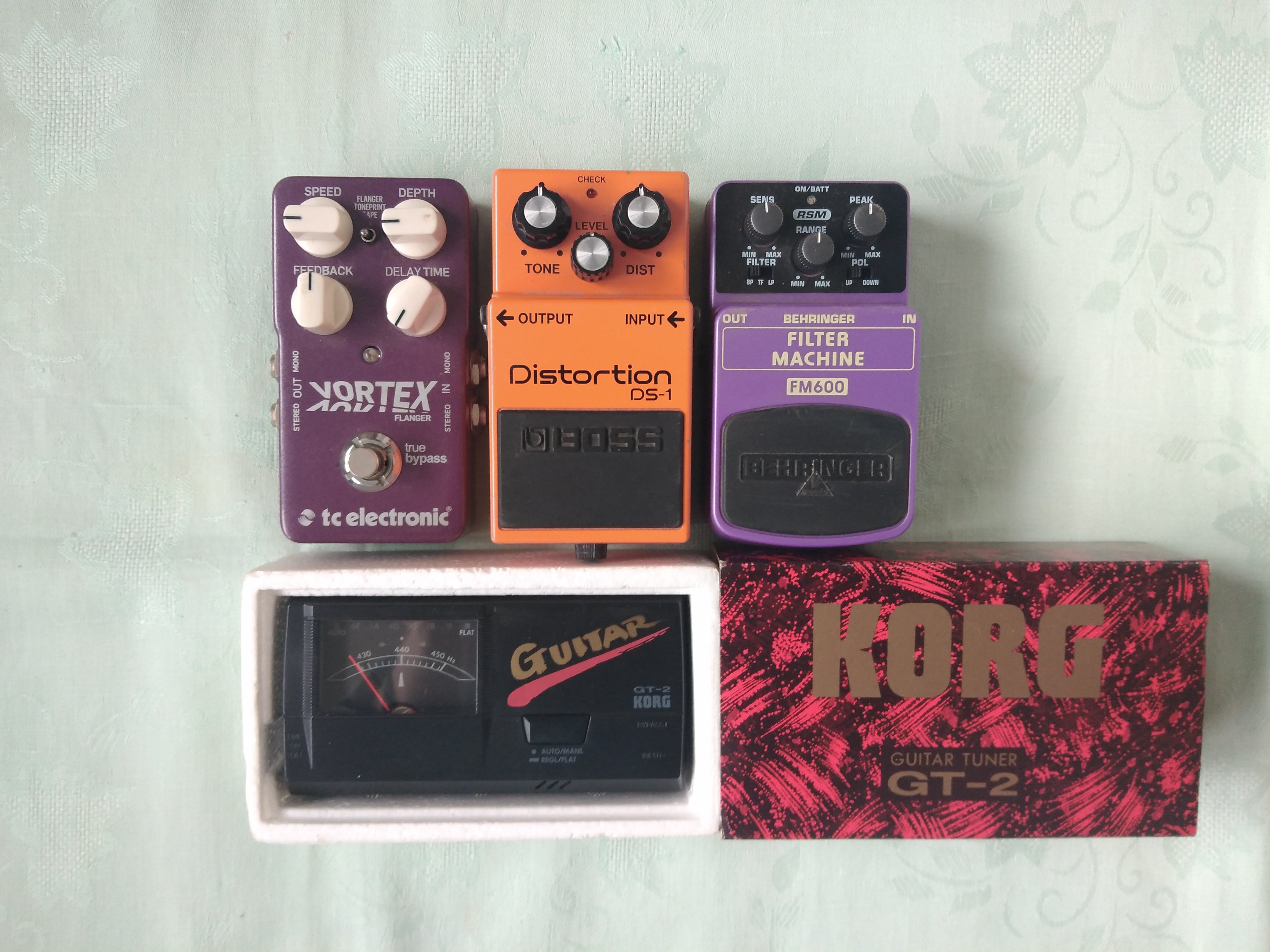 Vind accesorii utile incepator chitara : -Tuner Korg GT-2 auto, manual, Indicatie tripla, 50 Lei - Boss DS-1 guitar Distortion, 300 Lei - Behringer FM 600 Envelope Wah & MultiFilter util chitara si bass, 150 Lei - TC Vortex flanger, chorus, tzf, 550 Lei Fara schimburi, tranzactie in Bucuresti, contact PM.