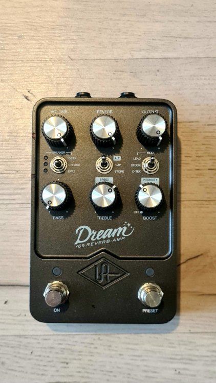 Vând pedală UAFX Dream ‘65 de la Universal Audio, în stare excelentă, folosită foarte puțin. Este una dintre cele mai realiste simulări de amplificator tip Fender Deluxe Reverb din anii ’60, oferind clean-uri cristaline, breakup natural și reverb cu arc extrem de autentic. Caracteristici: Modelare extrem de fidelă a unui amp vintage american Reverb și vibrato inspirate din unități reale de studio Cabinet + microfonare incluse (sunet direct în mixer / audio interface) Moduri „modded” + boost integrat Control prin aplicația UAFX (preseturi, setări avansate) Poate înlocui complet un amplificator în live sau studio Ideal pentru: blues, rock clasic, funk, indie, studio recording sau direct în PA Stare: impecabilă Preț:1100 Predare personală în București sau trimit prin curier. Nu exclud schimburile.