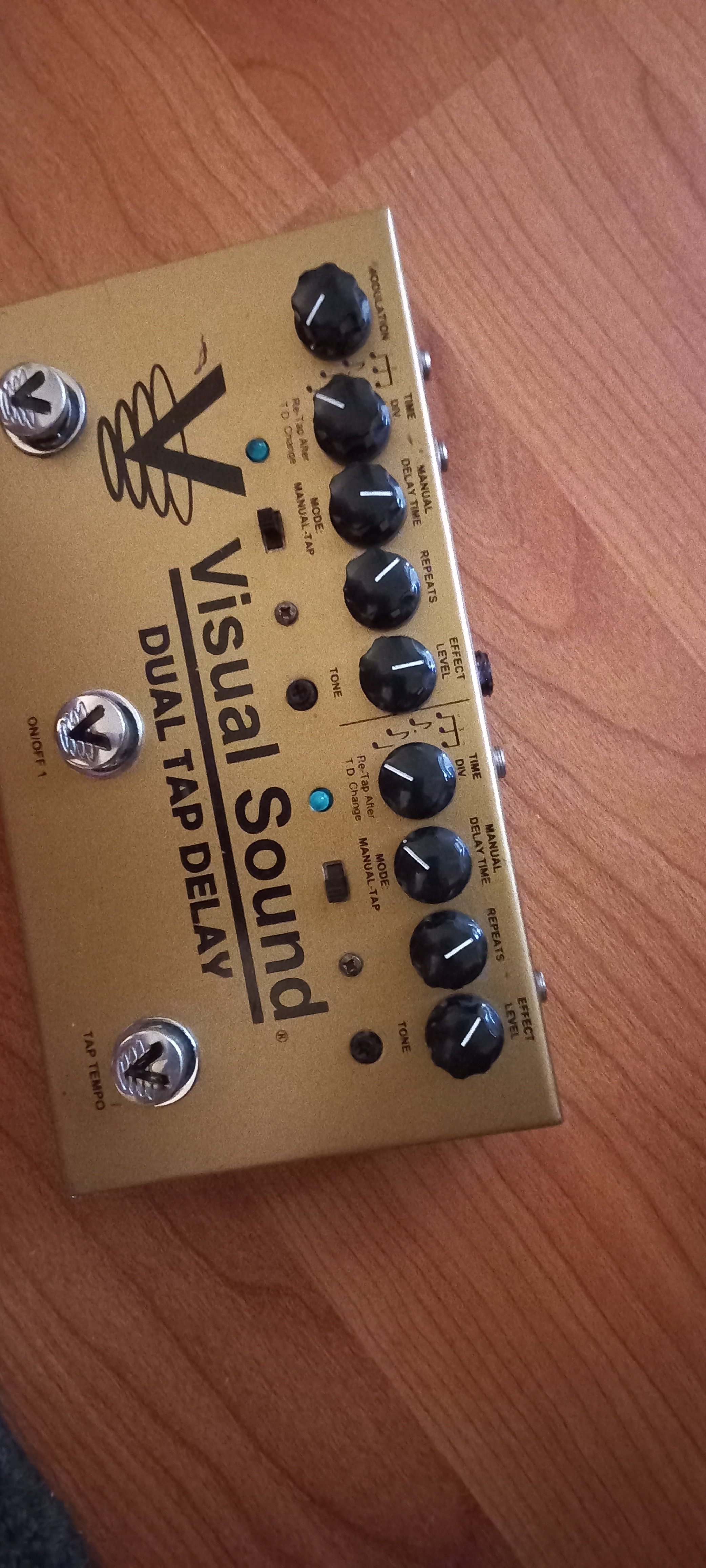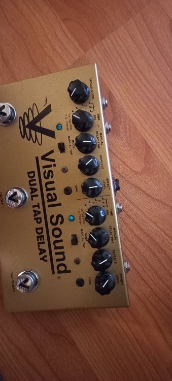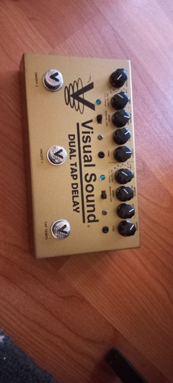 Vand acest super fain dual tap delay de la o firma foarte cunoscuta. Are lipsa o piulita la mufa de alimentare si am lipit locul, insa asta nu afecteaza in nici un fel functionarea pedalei sau se poate achizitiona separat piulita, fiind standard pt. mufe input jack. Pot face proba video. Visual Sound V3 Dual Tap Delay 2 delays in one pedal,that can be used independent or together Maximum delaytime 1000ms Tap-tempo footswitch to control delay speed One channel with modulation for a chorus effect at the delay Manual or tap-mode for each channel Controls for delay time (at manual mode), repeats, effect level Internal switch for switching output 2 (wet oder dry) Internal switch to fade out the delays or do cut by switching off External tap- or click input, output 1 and 2 Metall enclosure Dimensions: 231 x 130 mm Pretul e sub jumatate fata de magazinVand acest super fain dual tap delay de la o firma foarte cunoscuta. lipsa o piulita la mufa de alimentare si am lipit locul, insa asta NU afecteaza in nici un fel functionarea pedalei sau se poate achizitiona separat piulita, fiind standard pt. mufe input jack. Pot face proba video !!! Visual Sound V3 Dual Tap Delay 2 delays in one pedal,that can be used independent or together Maximum delaytime 1000ms Tap-tempo footswitch to control delay speed One channel with modulation for a chorus effect at the delay Manual or tap-mode for each channel Controls for delay time (at manual mode), repeats, effect level Internal switch for switching output 2 (wet oder dry) Internal switch to fade out the delays or do cut by switching off External tap- or click input, output 1 and 2 Metall enclosure Dimensions: 231 x 130 mm Pretul e sub jumatate fata de magazin