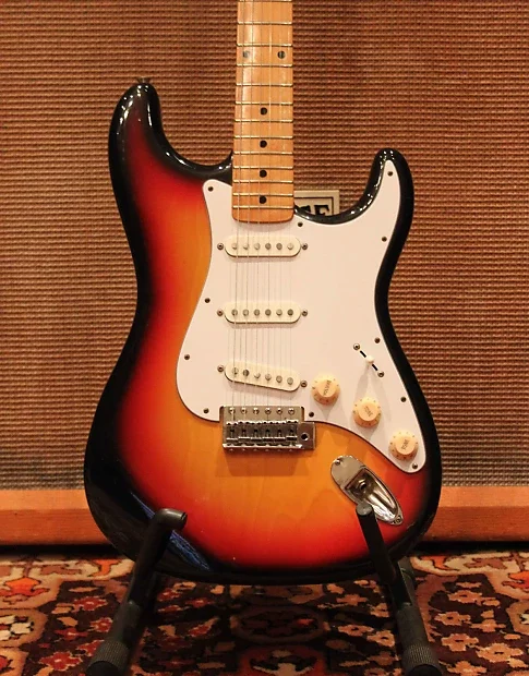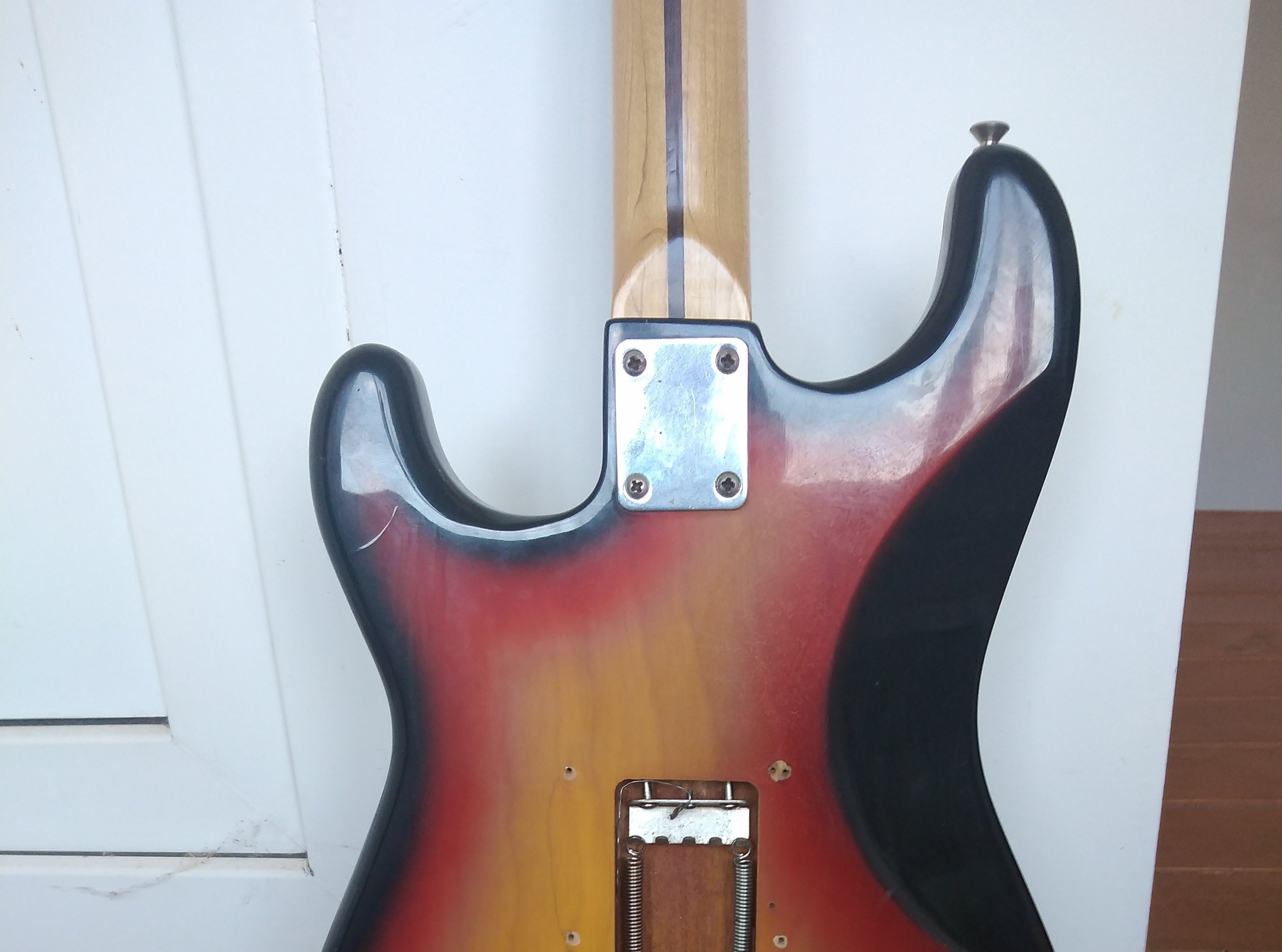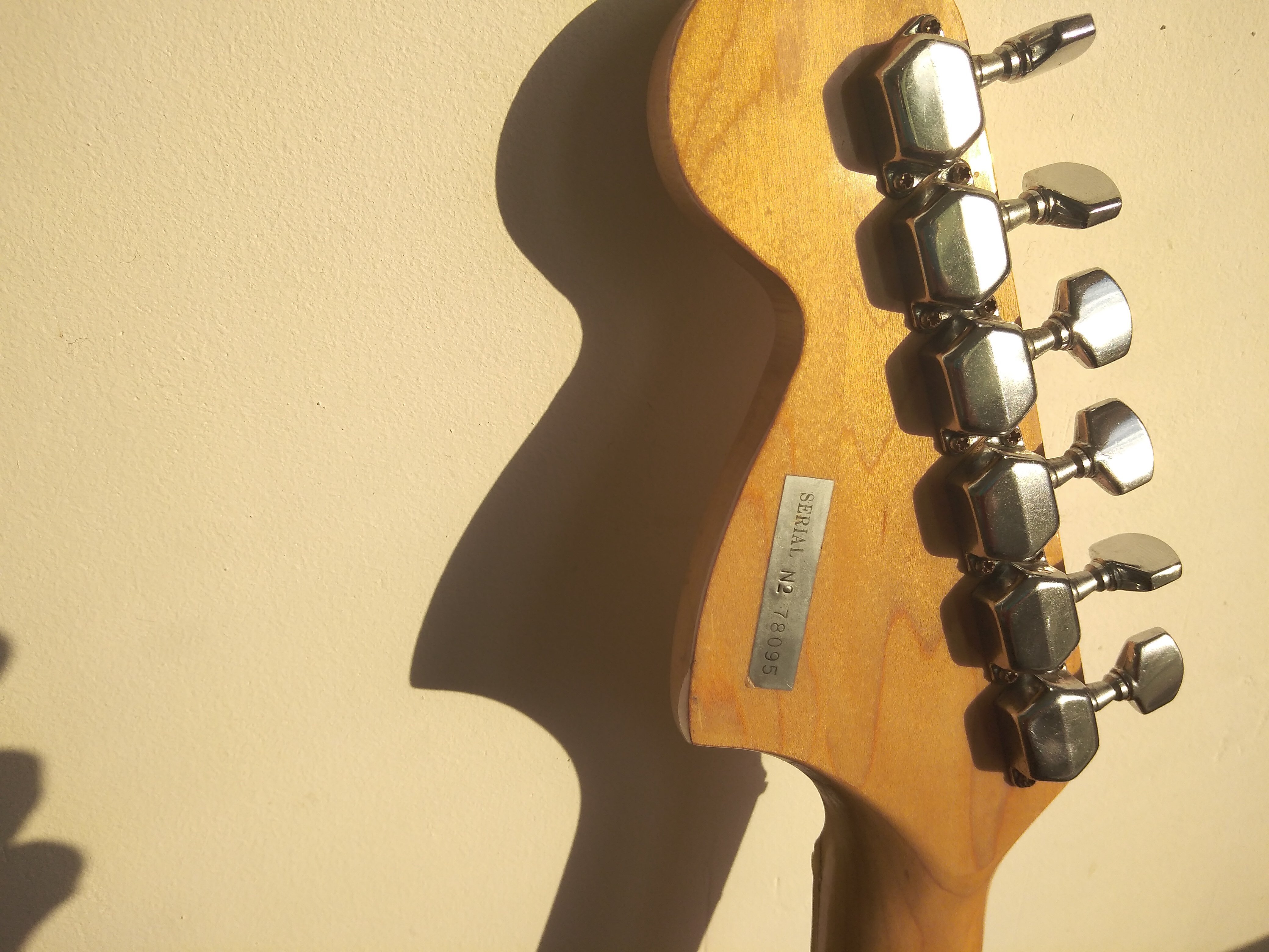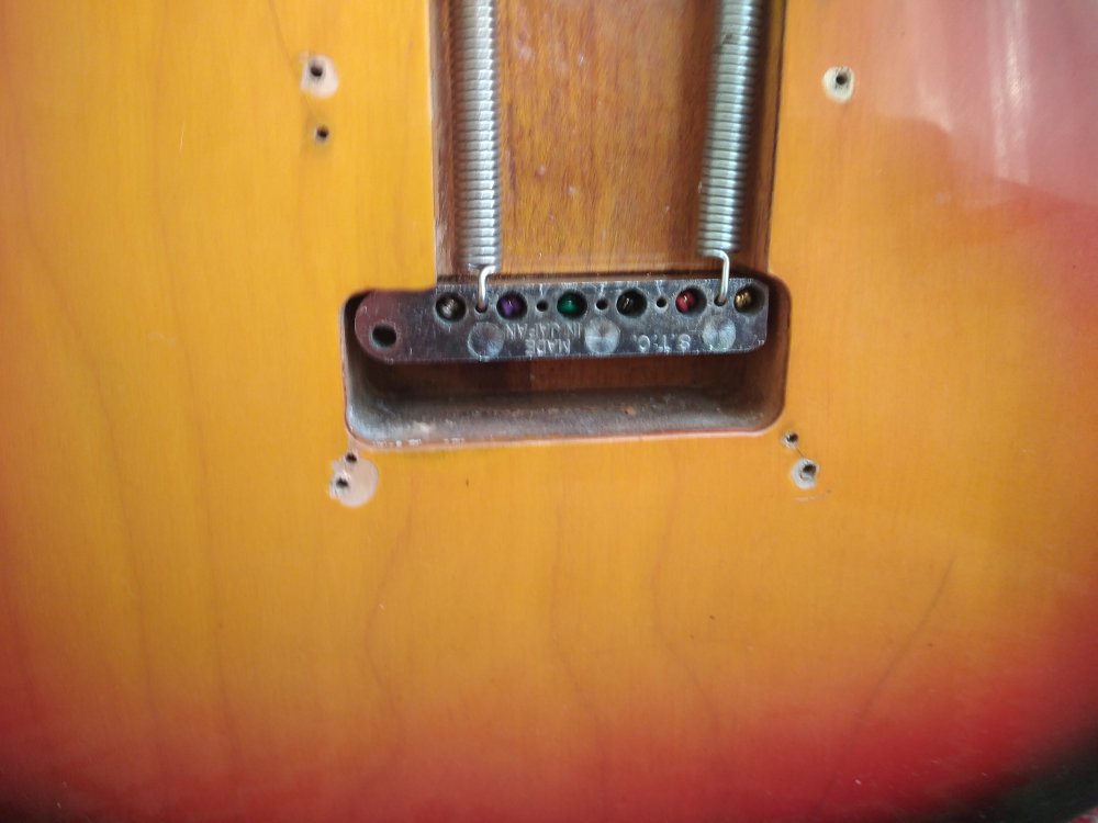 3. Vind Strat made in Japan '70 Hohner - headstock Mare, grif maple, corp Alder, doze semnal mare si wide range, bloc tremolo masiv alama conform Fender Strat original, tija otel neck relief 100% functionala, toate componentele factory installed, taste FARA uzura, atasez foto suplimentare instrument > Serial Number sticker pozitionat spate headstock pt Identificare origine, an fabricatie. Uzura normala, constructiv / sunet net superior oricarui Squier datorat lemn /doze, massive brass tremolo block, capac trem demontat pt foto bloc trem, brat tremolo Disponibil in husa Fender matlasata. Tranzactie in Bucuresti, fara schimburi - contact PM.