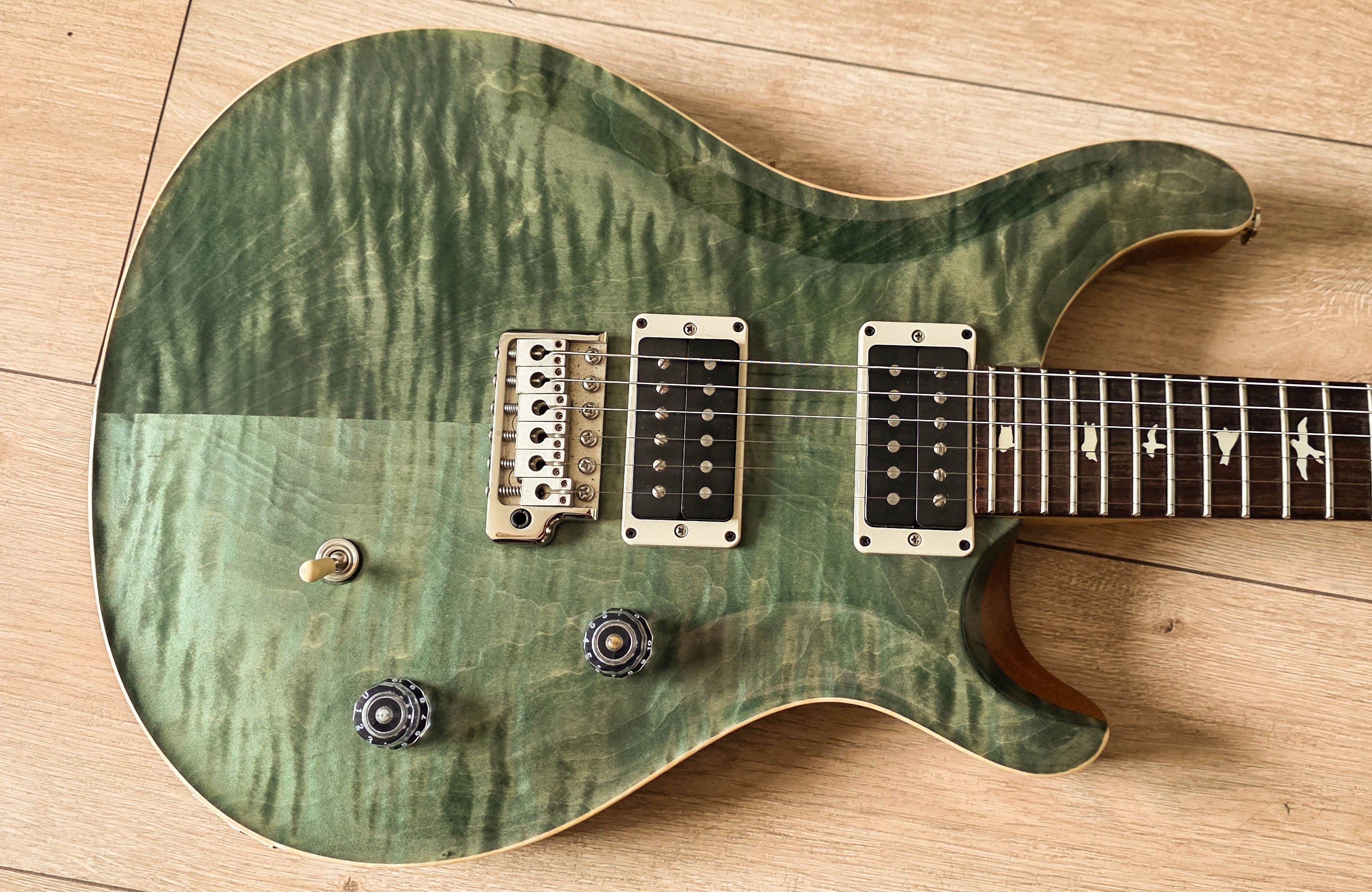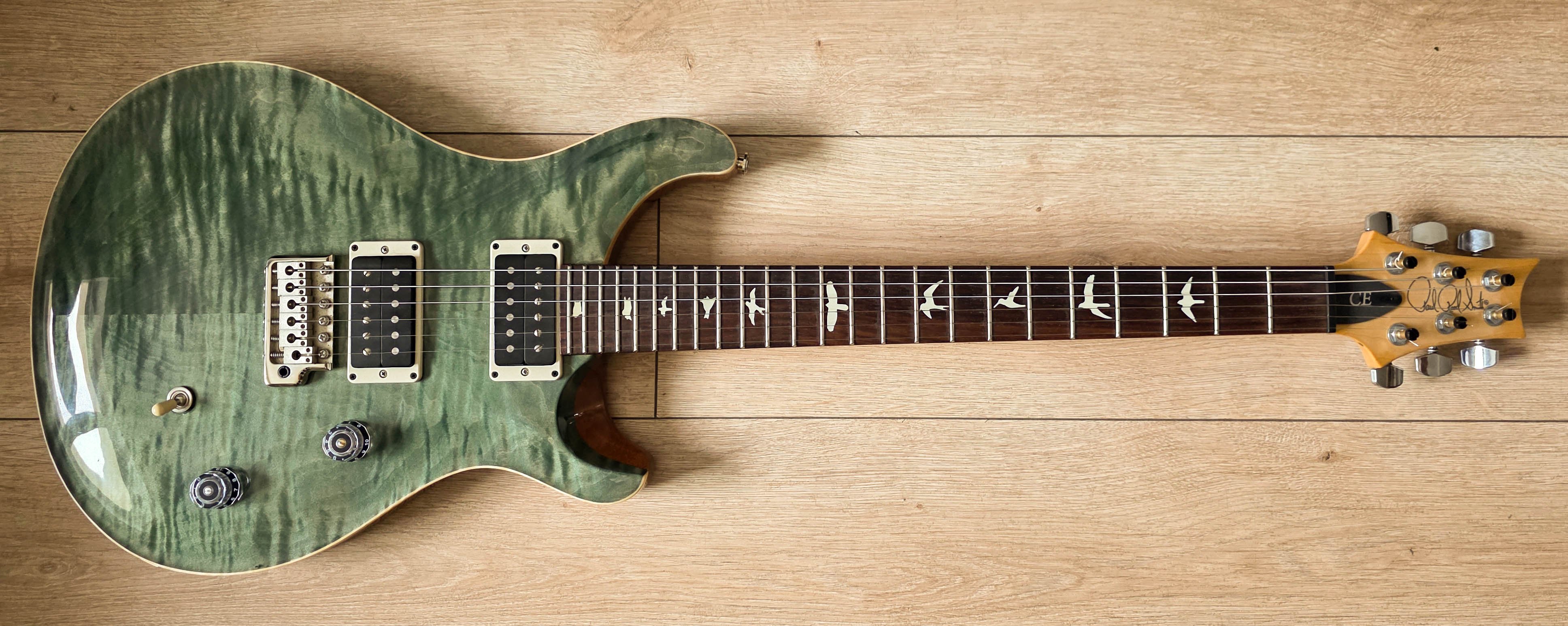 Vand un PRS CE-24, culoarea Trampas Green, fabricat in USA in 2020. Seria CE este fabricata in USA, fiind incadrata de catre producator intre seria S2, mai ieftina si Core, ceva mai scumpe. Chitara este in stare foarte buna, cu urme usoare de folosire, singurul defect cosmetic fiind un ding mic la tasta 15, fotografiat in ultima poza. Este in stare complet originala, mai putin corzile, schimbate recent si setata la perfectie cu un set de 10-46. Este un instrument premium, construit impecabil, cu materiale premium. Corp din mahon cu top flamed maple, grif din maple cu tastiera de rosewood, 24 taste lucrate impecabil, locking tuners si unul dintre cele mai bune sisteme de tremolo din industrie, patent PRS. Dozele sunt PRS 85/15 si sunt extrem de versatile, cu dinamica foarte buna, suna rotund, dar si cu multa claritate. Au o separare foarte buna a notelor, cu un ton cald, dar si decupat, Se spliteaza prin potul push pull fantastic, tonurile de single coil sunt foarte muzicale, si extrem de folosibile in live, dar si in studio. Este un instrument deosebit de versatil, si complet. Poate fi folosit cu succes in absolut orice context muzical, de la manele, jazz, country, classic rock, pana la cele mai suparate metale. Vine insotita de softcase-ul PRS original, maneta de tremolo si o gramada de hartii pe langa. Tastele sunt >95%, lucrate impecabil de producator. Nu am de gand sa o laud prea mult, cine stie despre ce este vorba stie, ceilalti sunt invitati sa o probeze. Evident, ar fi frumos sa vina si cu banii la el. Noua costa astazi 14600 lei la Thomann, eu vreau pe a mea 7600 lei. Este foarte probabil cel mai ieftin exemplar de pe internet varianta gloss cum este a mea. Pretul este FIX si NU doresc schimburi. https://www.thomann.de/ro/prs_ce_24_fire_red_burst_601862.htm Contact 0731 444 646