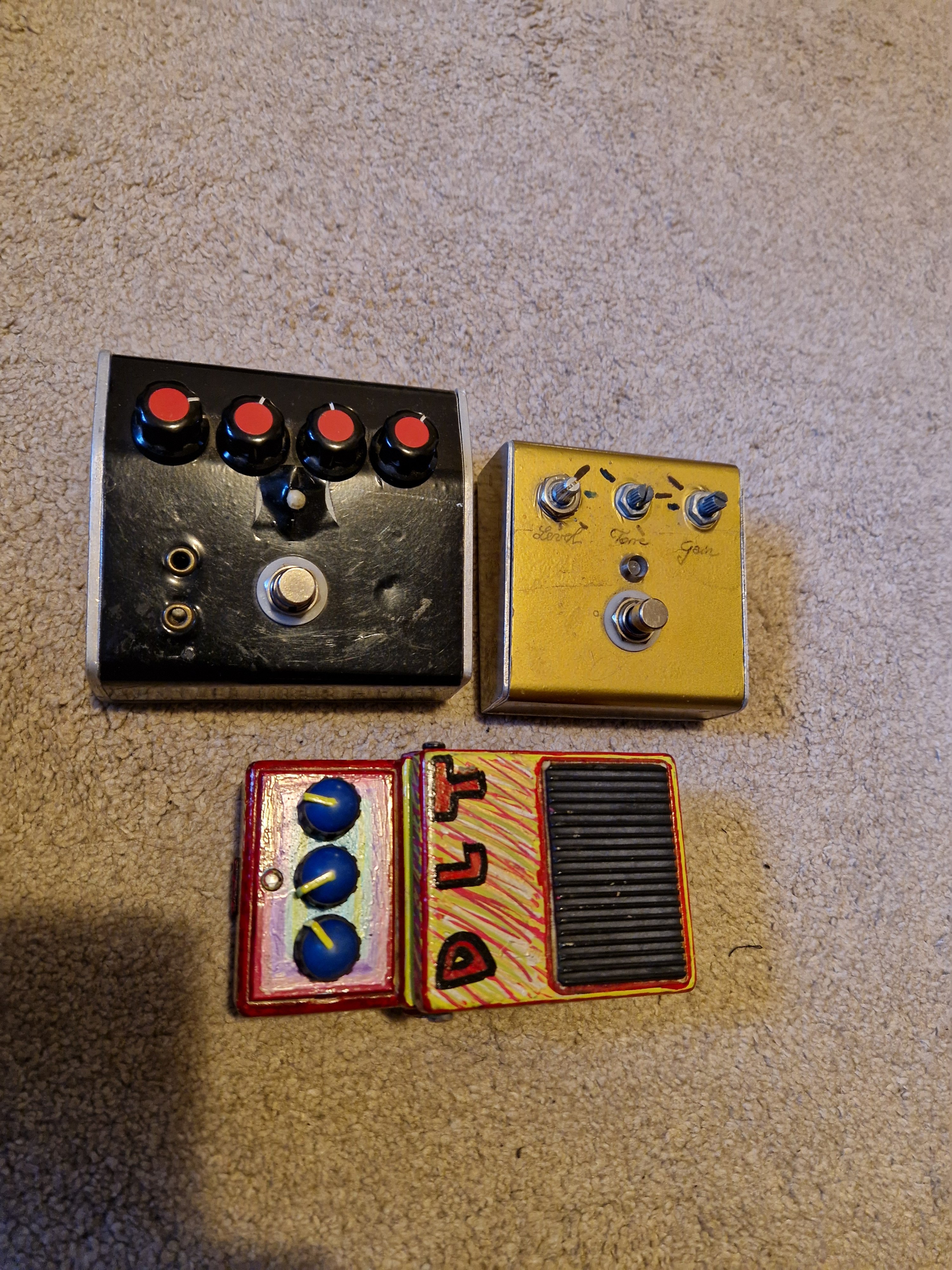 Se ofera gratuit aceste 3 pedale...construite manual de regretatul Cornel Moldovan. Au apartinut lui Bujor Hariga. Dupa moartea acestuia le-am primit de la sotia sa. Nu am ce face cu ele si poate e careva interesat sa faca teste cu ele. Stiu doar ca cea neagra si aurie s au dorit a fi clone dupa Zendrive... Cea colorata vrea sa fie si ea o copie nereusita dupa ceva...dar nu stiu ce. Cablajul si lucratura interioara...lasa de dorit, atat s a putut...dar pt cine vrea sa experimenteze sunt o platforma perfecta! 😵💫