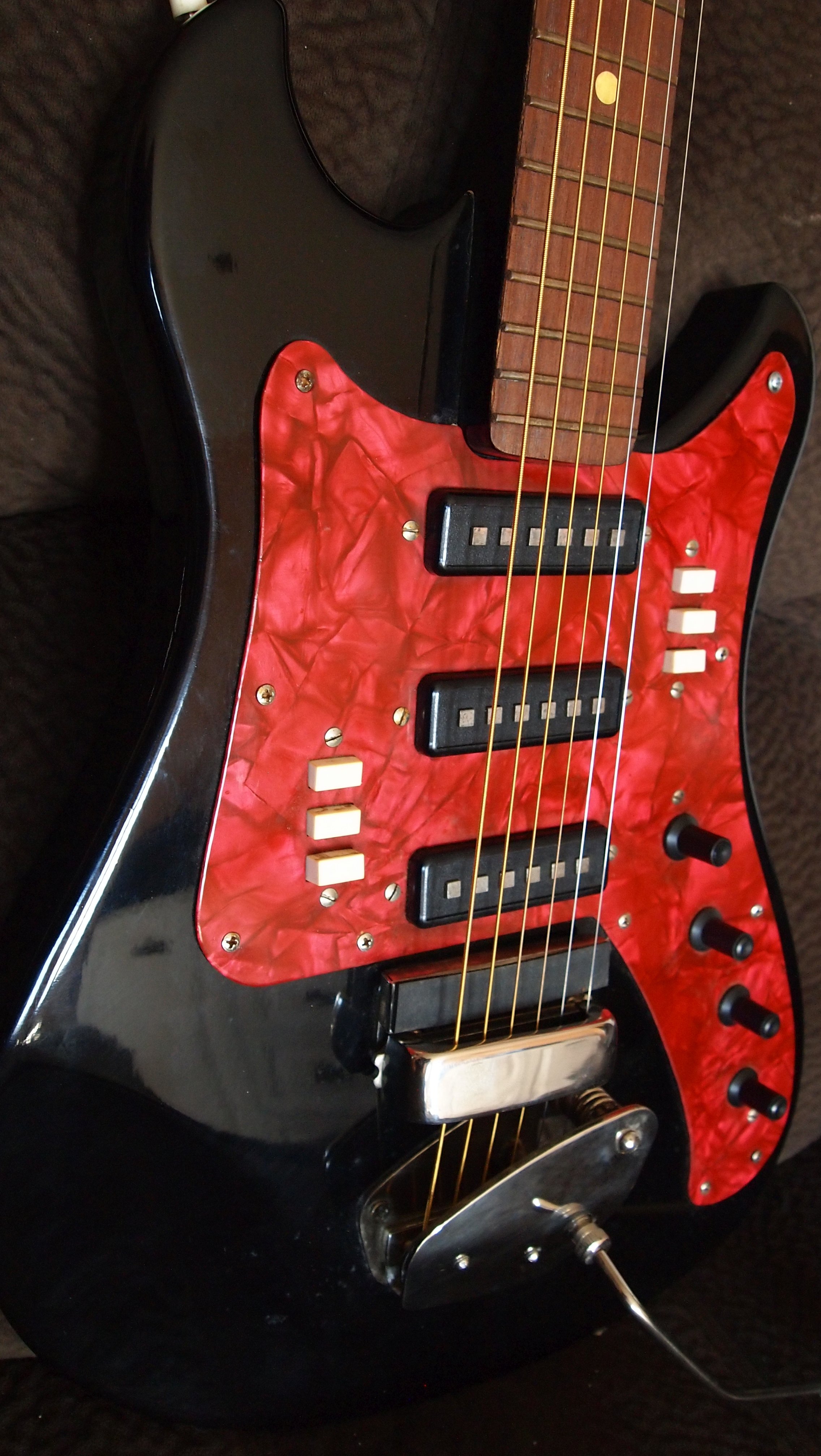 2. Prostia acesta de AI, m-a speriat rau de tot cu "nu deschideti, ca s-ar putea cablajele sa fie foarte subtiri, ca se rup, ca asa e la chitarile sovietice". Cum n-aveam schema la data postarii de mai sus, chiar n-am vrut sa o deschid. Dar am reusit sa gasesc schema intr-un final, mi-am facut curaj si am gasit niste cablaje foarte solide Tehnica ruseasca de TANC cablajele si foarte bine organizate cu un cable management frumos. In fine, vad ca nu mi-a raspuns nimeni aici, am cautat informatiile pe grupuri din strainatate, chitara e gata. Se aude, cum se aude ca asa este si modelul. Canta la ea, cine poate, cine stie. E mai mult pentru valoarea istorica. Ce am facut la ea, curatat dozele de rugina, cu folie de aluminiu, aspirat frumos, la timp, sa nu intre nici macar o bobita de aluminiu pe unde nu trebuie. Am dat-o cu ulei de lamaie pe gat, i-am pus niste corzi din 2 seturi, ce aveam prin casa, ca sa nu stea mult fara corzi, pentru acum e depozitata. Am polishat inoxul frumos, am curatat orice urma de rugina de pe componentele mari dar am lasat intentionat pe suruburi( efectiv mi-au placut prea mult cu aspectul acela). Fermoarele de la husa am incercat sa le dau cu grafit, dar nu vrea, trebuie o reparatie minutioasa la un centru specializat pe asa ceva. La interior am dat cu suflanta de praf si apoi cu spray de contact. Cineva ma sfatuia sa imersez fiecare buton in alcool izopropilic. Buna idee, dar pe mine ma interesa sa vad mai intai cum se aude, pentru ca, ea ca si bun, dupa uzura fizica, se vede ca a stat mai mult in husa decat sa se cante la ea. De altfel la multe pe care le-am gasit pe internet, la neck aproape ca a disparut logo-ul tocmai pentru ca s-a cantat la ele. Mumfa mama 5DIN, am lasat-o si mi-am facut eu un cablu (din pacate ne-ecranat corespunzator dar functionabil). N-am mai cumparat un cablu 5DIN la 6.35 TRS din comert pentru ca ori era foarte scump in Romania, ori dura prea mult sa vina din strainatate. Si intr-un final am dat-o la junior sa cante la ea si nu-i place cum suna... si cum se simte, asa ca urmeaza sa o scot la vanzare. E frumoasa, imi place, dar nu stiu sa cant la chitara, am luat-o mai mult pentru baiat dar el este cu instrumentele moderne. Poate pe viitor o sa regrete ca nu a ales sa o pastreze, asa de decor macar. WhatsApp Video 2026-04-30 at 17.59.45.mp4