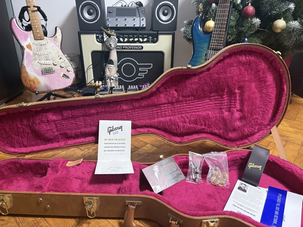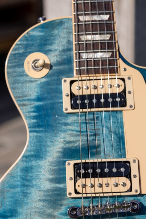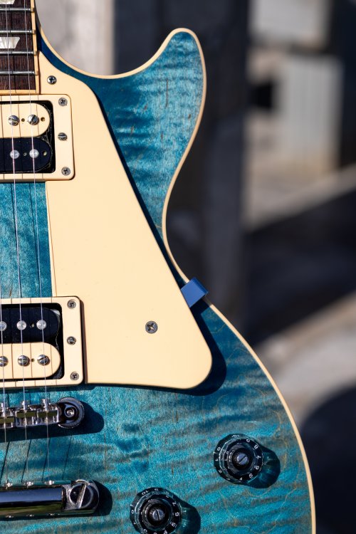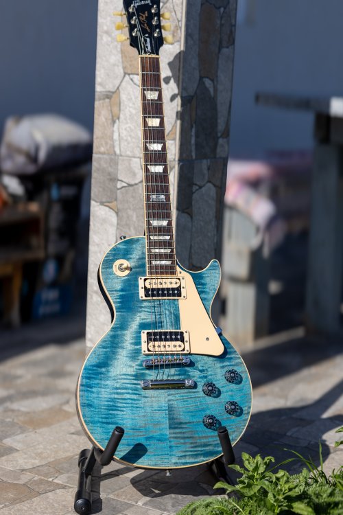 Chitară a aparținut stimabilului @AddRien, căruia îi mulțumesc din nou pentru că a avut grijă să-mi trimită un instrument deosebit, îngrijit și gata de cântat. Aici aveți anunțul original, nu are sens să repet toată povestea din spate. Este un LP Traditional mai cu moț, făcând parte dintr-o ediție limitată ocazionată de aniversarea a 120 ani de Gibson. Chitarele din acest batch au început să devină din ce în ce mai căutate, în mod particular acest finisaj jeans, Ocean Blue, care este de-a dreptul spectaculos. Vine cu hardcase original. Nu caut să fac profit. M-a costat 9.500 lei, o vând cu 9.500 lei. Mi-a fost rușine să negociez având în vedere prețul excelent, așa că nici la vânzare nu e loc de rabat. Modelul de față, în finish Ocean Blue, apare rar la vânzare și, pentru moment, este singura chitară disponibilă. Schimb cu Soldano SLO100 (diferență din partea mea), Tone King Imperial MKii (schimb 1:1) sau Falcon Grande (+1000 lei din partea voastră).