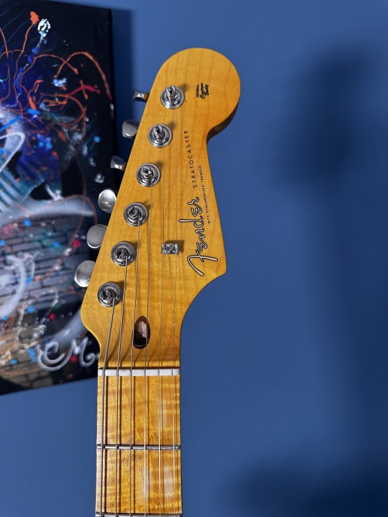 NU ACCEPT SCHIMBURI! Pun la vânzare, pentru scurt timp, o chitară deosebită, fabricată în Japonia. Are un aspect fabulos, trei culori combinate interesant. Mie mi se pare că seamănă cu Aurora boreală sau ceva dintr-un nor stelar! Gâtul este din arțar copt/baked maple, iar corpul este din mahon cu camere (chambered) și top din arțar/ash, finisat în relief/sand blasted. În plus față de cum vine în standard, chitara a primit câteva upgrade-uri: - nut Tusq self lubing, care asigură păstrarea acordajului după ce folosești tremolo-ul; - brass block pentru tremolo (cel standard va fi inclus) care face chitara să sune și mai bine; - butoane negre (cele crom vor fi incluse); - strap lock pins. Chitara are 3kg, foarte rezonantă și comodă! Nu are semne de folosire. Vine cu o husă Harley Benton aproape nouă. Prețul unei chitare, pe site-ul Vola, cu tot cu transport și taxe la noi ajunge, în momentul actual, aproximativ 6500 de lei. Eu vreau pe a mea 4750 lei plus transport și nu mă interesează niciun schimb.4 points