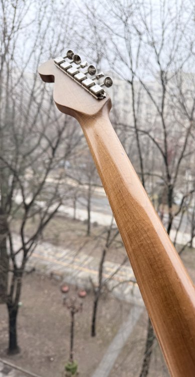 Pun la vânzare, pentru scurt timp, o chitară deosebită, fabricată în Japonia. Are un aspect fabulos, trei culori combinate interesant. Mie mi se pare că seamănă cu Aurora boreală sau ceva dintr-un nor stelar! Gâtul este din arțar copt/baked maple, iar corpul este din mahon cu camere (chambered) și top din arțar/ash, finisat în relief/sand blasted. În plus față de cum vine în standard, chitara a primit câteva upgrade-uri: - nut Tusq self lubing, care asigură păstrarea acordajului după ce folosești tremolo-ul; - brass block pentru tremolo (cel standard va fi inclus) care face chitara să sune și mai bine; - butoane negre (cele crom vor fi incluse); - strap lock pins. Chitara are 3kg, foarte rezonantă și comodă! Nu are semne de folosire. Vine cu o husă Harley Benton aproape nouă. Prețul unei chitare, pe site-ul Vola, cu tot cu transport și taxe la noi ajunge, în momentul actual, cu codul lor de reducere, aproximativ 6000 de lei. Eu vreau pe a mea 4750 lei plus transport și nu mă interesează niciun schimb.2 points