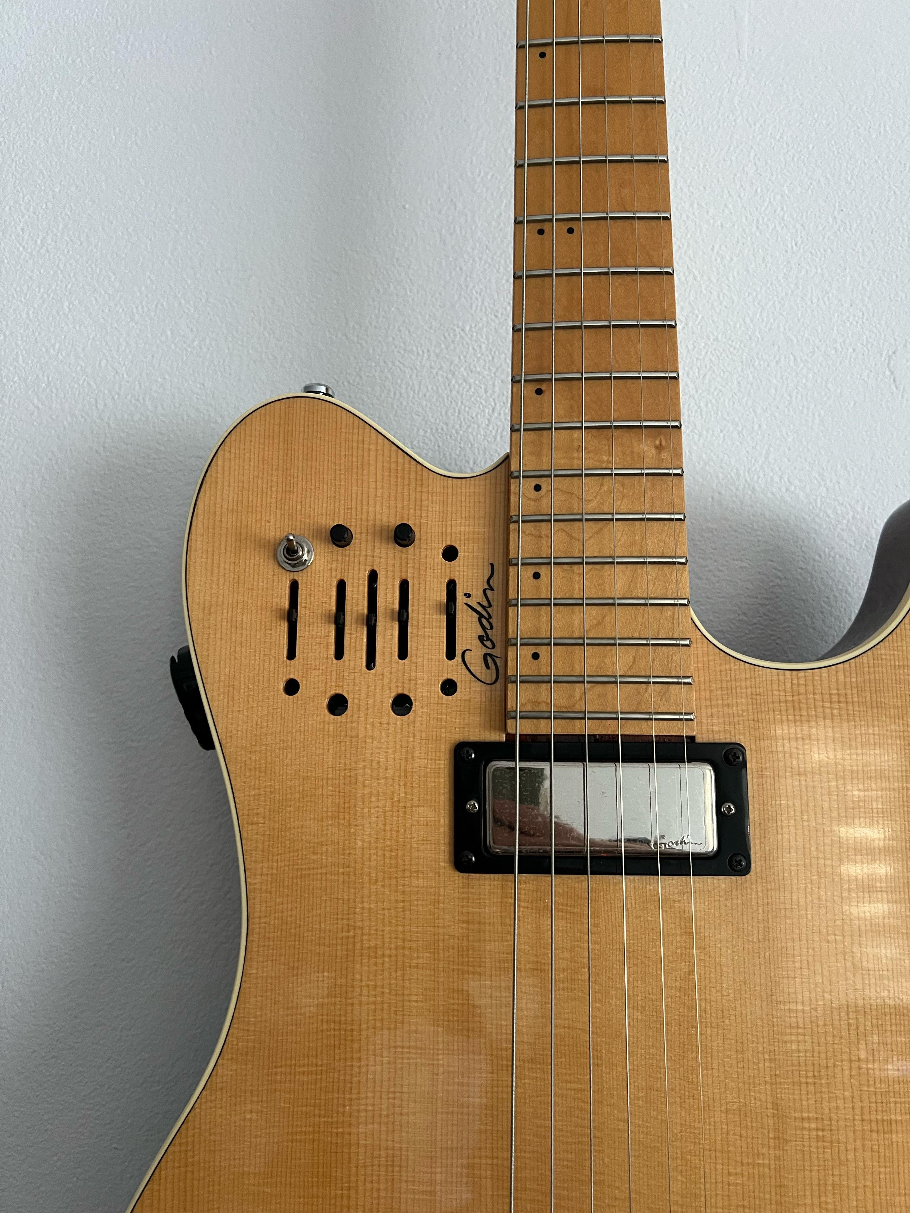 Se vinde chitara Godin Acousticaster Deluxe MN, stare perfectă, motivul vânzării : nu-l folosesc deloc. Descriere : n-are rost, cunoscătorii știu. Se poate proba in Miercurea Ciuc. Predare aș prefera personal. Preț: 4500 lei.