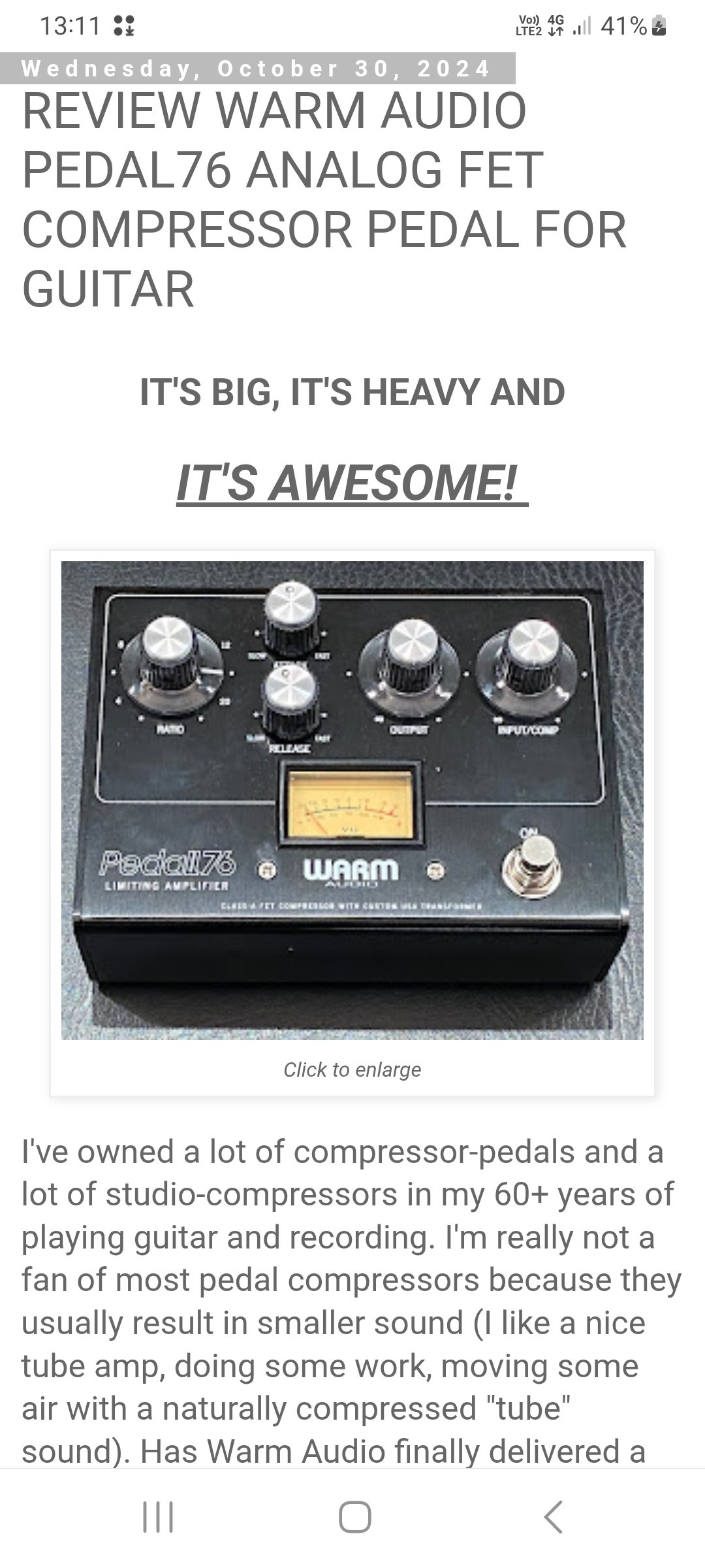 Se vinde Compressor Warm Audio 76 Pedal, integral analogic, in stare perfecta! Tutoriale multe pe youtube. L am cumparat anul trecut de nou, are si cutia originala, fiind folosit in pedalier.