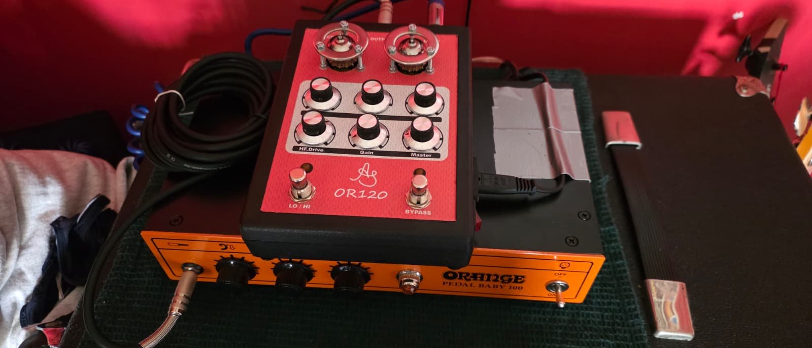Pedala Orange ORS120 facuta handmade, o vand deoarece nu imi mai este de folos, nu este pe gustul meu plus ca sta degeaba la mine in rack si mai bine ar sta la cineva sa o foloseasca la potential maxim. Are 2 tuburi ECC83 Electro Harmonix. Este foarte versatila pentru diferite tipuri de muzica. Pentru mai multe detalii, contact pe whatsapp!