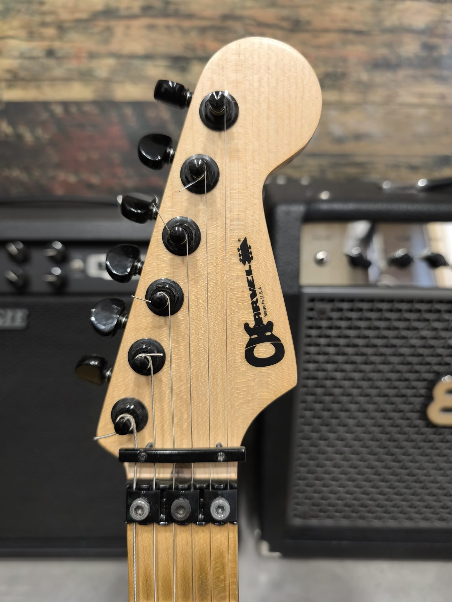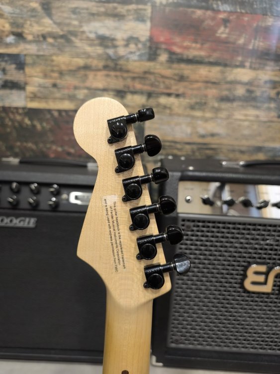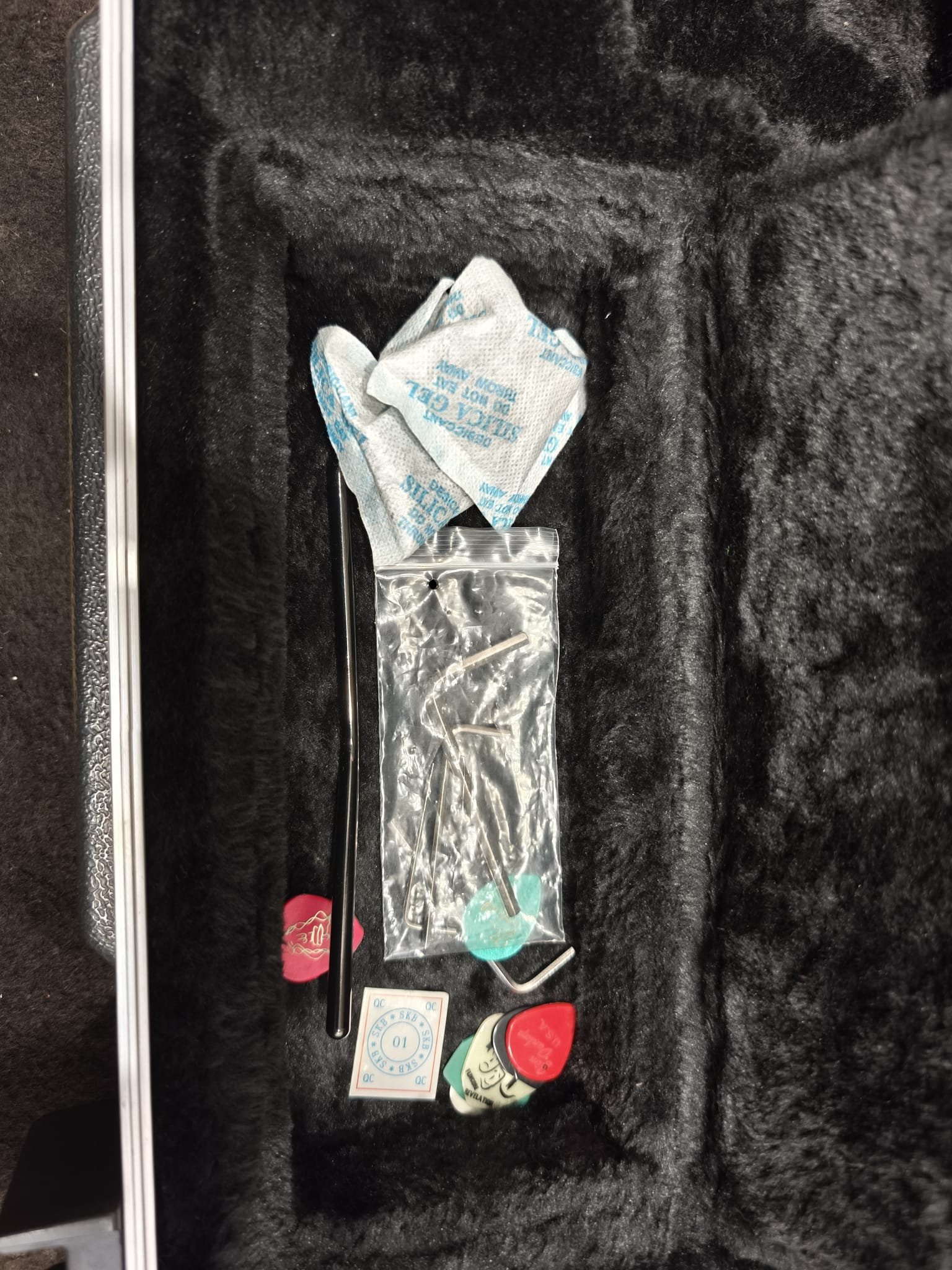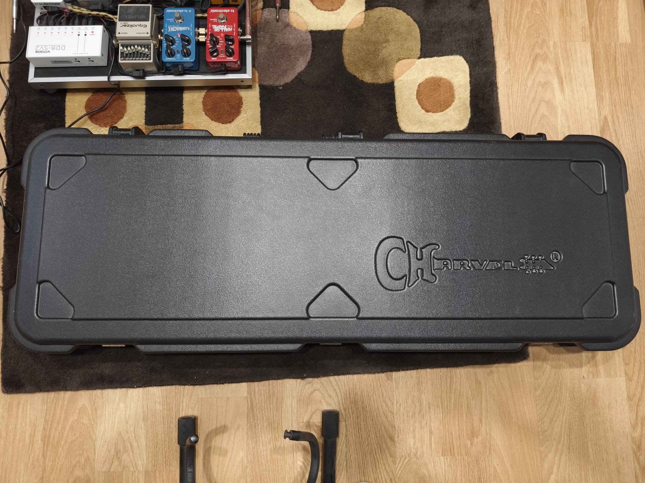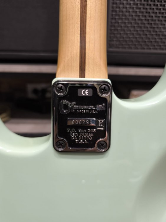 Charvel San Dimas USA intr-o culoare rara Sea Seek Green cu totul original pe ea. Model Name: San Dimas® Style 1 - 2H Series: U.S.A Production Model Body: 3-Piece Alder Neck: Bolt-On 1-Piece Quartersawn Eastern Hardrock Maple with Natural Oiled Finish Fingerboard: Maple with 12” to 16” Compound Radius No. of Frets: 22 Jumbo Dunlop® 6100 Scale Length: 25.5" (648 mm) Width @ Nut: 1.6875” (43 mm) Hardware: Black Machine Heads: Grover® Mini RotomaticTM Die-Cast Tuners Bridge: Floyd Rose® FRT-O2000 Double Locking 2-Point Tremolo Bridge Pickup: Seymour Duncan® TB4 ( JB )Humbucking Pickup Middle Pickup: N/A Neck Pickup: Seymour Duncan® SH1N ( 59 ) Humbucking Pickup Pickup Switching: 3-Position Toggle: Position 1. Bridge Pickup Position 2. Bridge and Neck Pickups Position 3. Neck Pickup Controls: Master Volume Colors: Sea Seek Green (Polyester Finish) Strings: D’Addario NPS, Gauges: .009, .011, .016, .024, .032, .042 Unique Features: One piece Quartersawn Hard Rock Maple Neck, Classic San Dimas® Neck Backshape, Original Black Charvel® Headstock Logo, Schaller® Bar String Retainer, Black Dot Position Inlays, 12” – 16” Compound Radius Fingerboard, Floyd Rose® #R3 Locking Nut, Dunlop® Strap Buttons, Brushed Black Anodized Aluminum Back Plates, Knurled Black Control Knob, Side Mounted Oval Input Jack Source: US 2008-2010 Se vinde in SKB - ul original . Chitara se prezinta in conditie foarte buna si nu are nici o probleme de ordin tehnic sau majora estetic. Pentru cei interesati mesaj pe forum sau la tel. 0747 026758