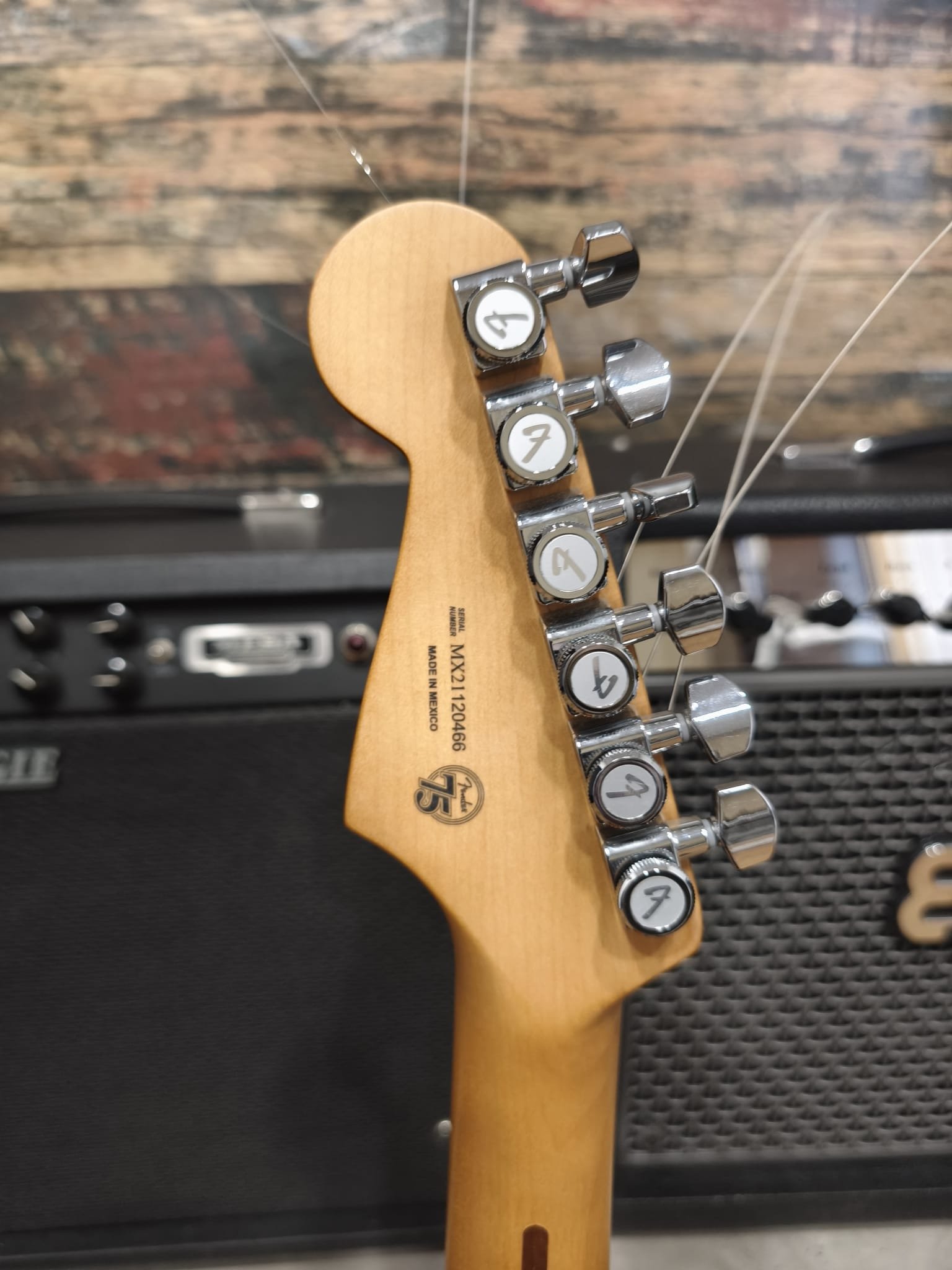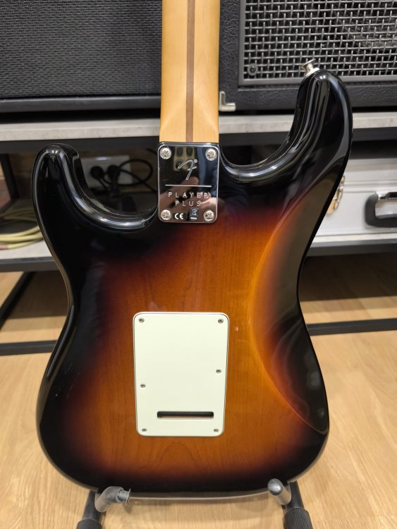 Chitara Electrica Fender Player Plus Stratocaster MN 3-Color Sunburst Selector (Switch) 5 poziții Mecanica Deluxe Cast / blocare sigilată Număr de taste 22 Serie Player Plus prima generatie Gat profil Modern C , 22 taste Doze Fender luate de pe forum ,clasice no noiseless .( nu mi-au placut cele noiseless niciodata ; parca nu au viata sau le-am intalnit eu pe cele care nu trebuie ) Cordar/tremolo 2-Point Synchronized Tremolo Incrustații di tastiera Black Pearloid Dot Corp Anin Gat Arțar Tastiera Arțar Finisaj Lustruit Finisaj gât Uretan satinat Construcţie Gât înșurubat Hardware Nichel, Crom Tijă de tensiune (Truss rod) Acțiune unică, Ajustare cap Pickguardul este unul clasic cu cablaj pentru SSS si nu cel original cu toate combinatiile posibile . Nu mi-a placut niciodata cum suna. Daca se pliaza cineva pe cum e facuta chitara acum e OK .Daca nu , asta e . Se vinde si cu husa cu care a venit . Chitara este OK setata si reglata , nu are nici o problema tehnica doar ceva zgarieturi fine pe corp . Pentru cei interesati mesaj pe forum si ne auzim la tel. 0747 026758 .