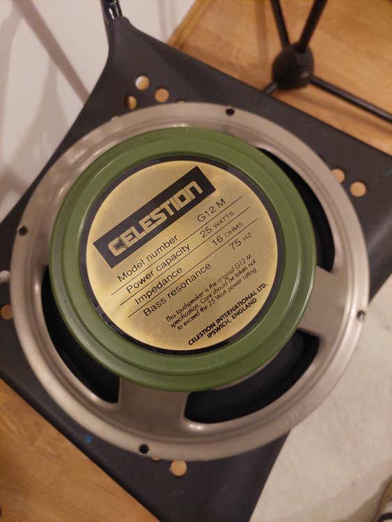 Vând doua difuzoare Celestion Greenback G12M 25 W 75Hz 16 ohm Made in UK 450 de lei fix bucata , nu sunt interesat de schimburi. Contact pm