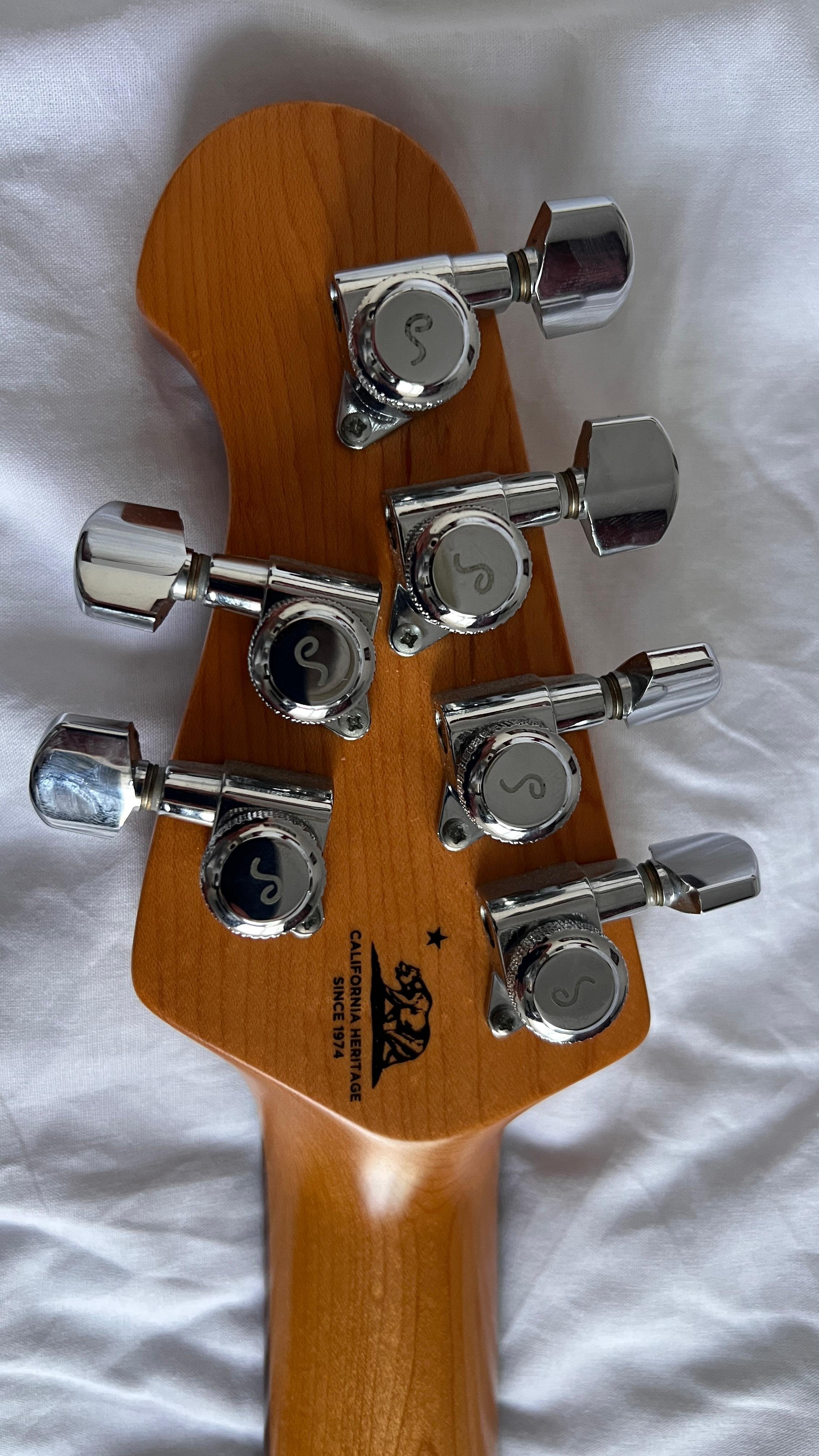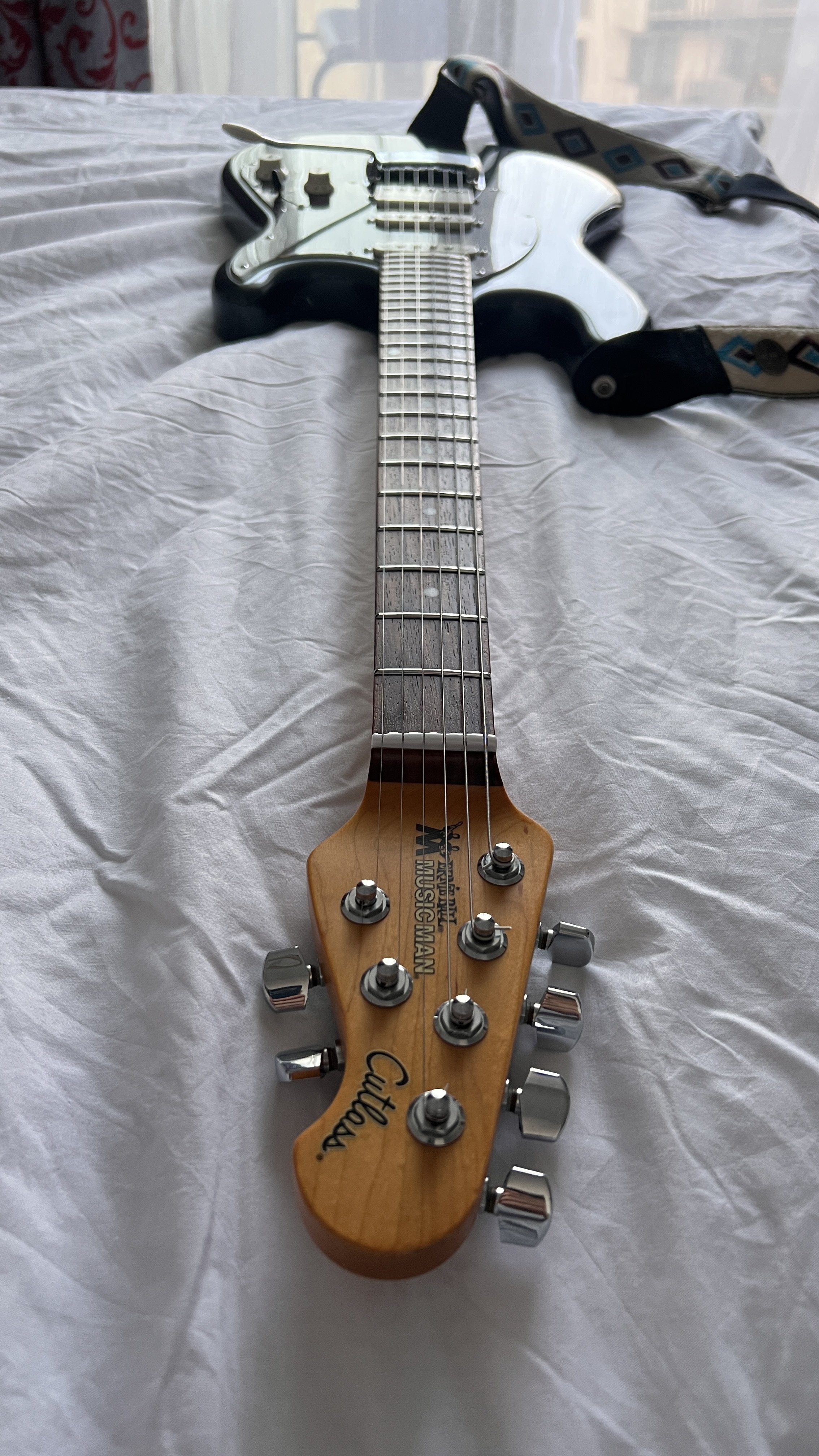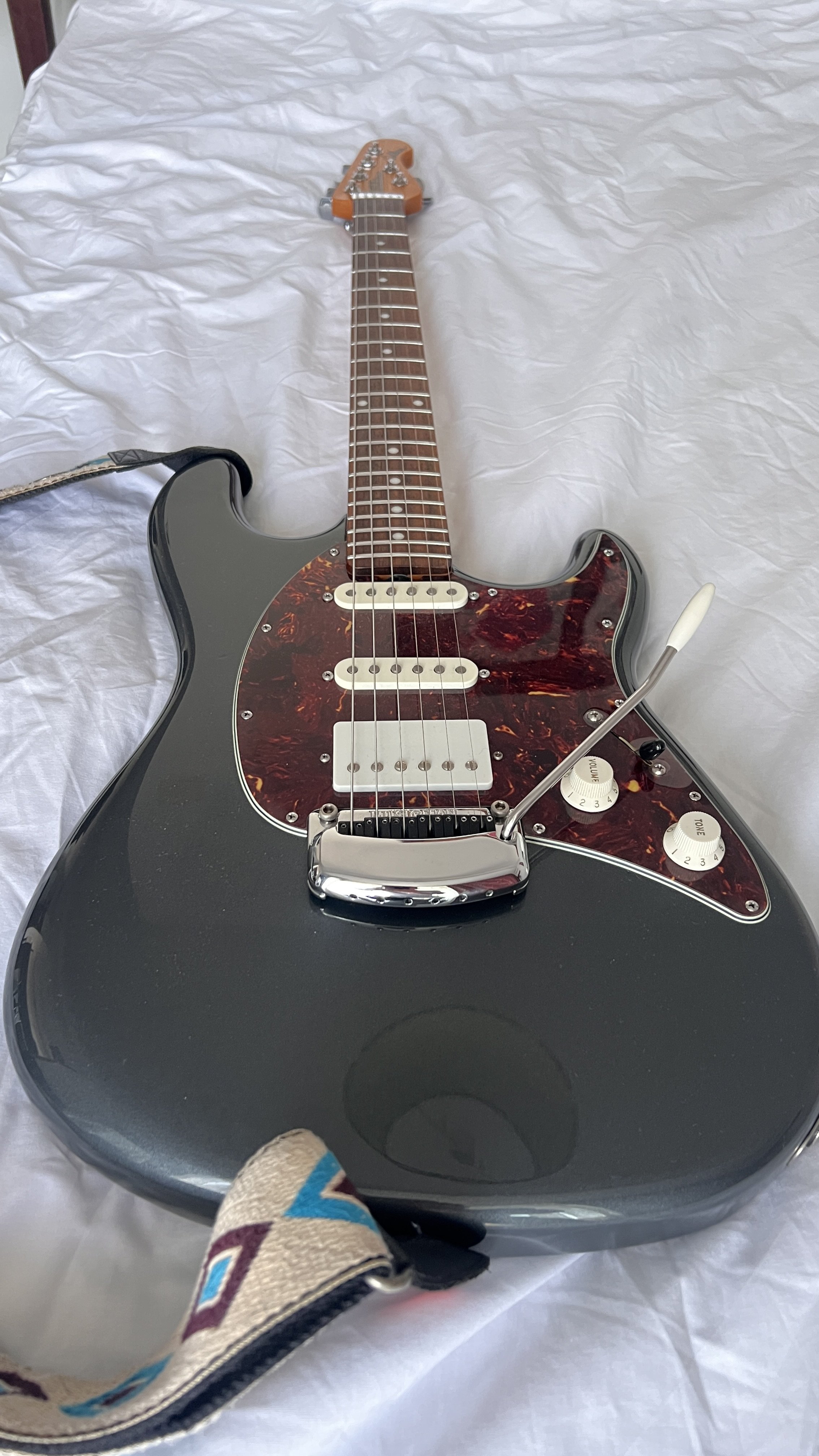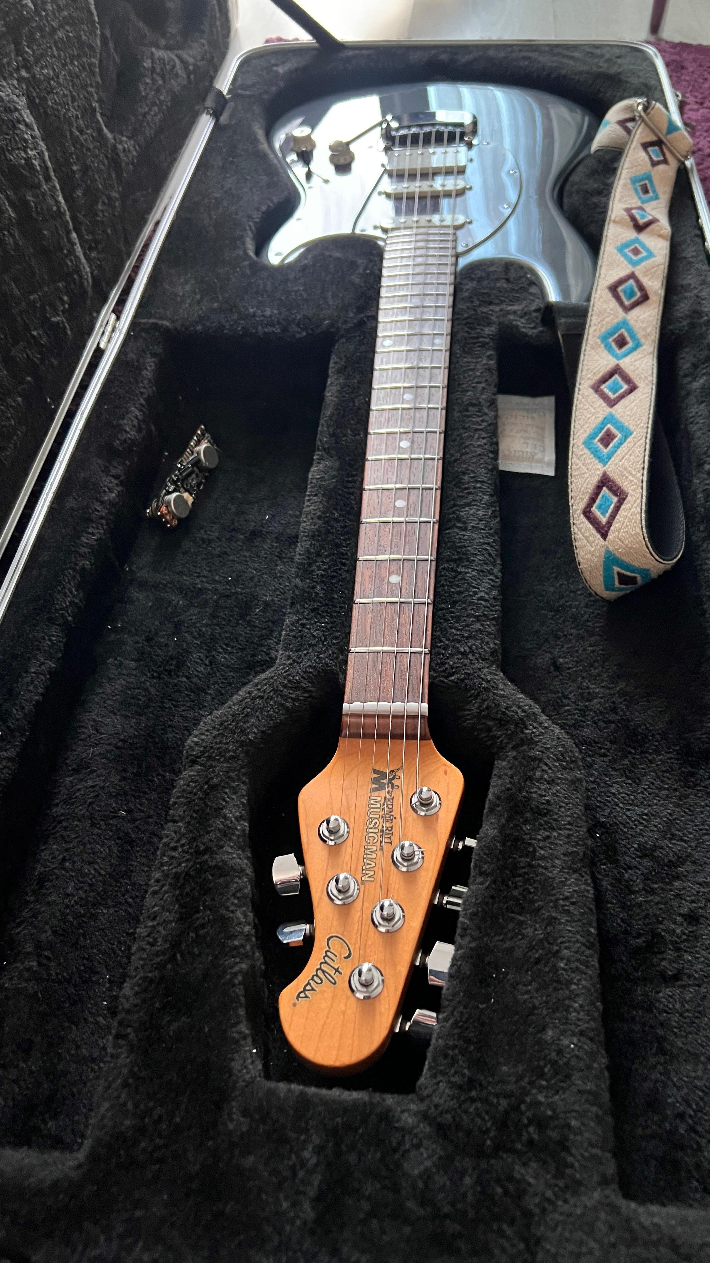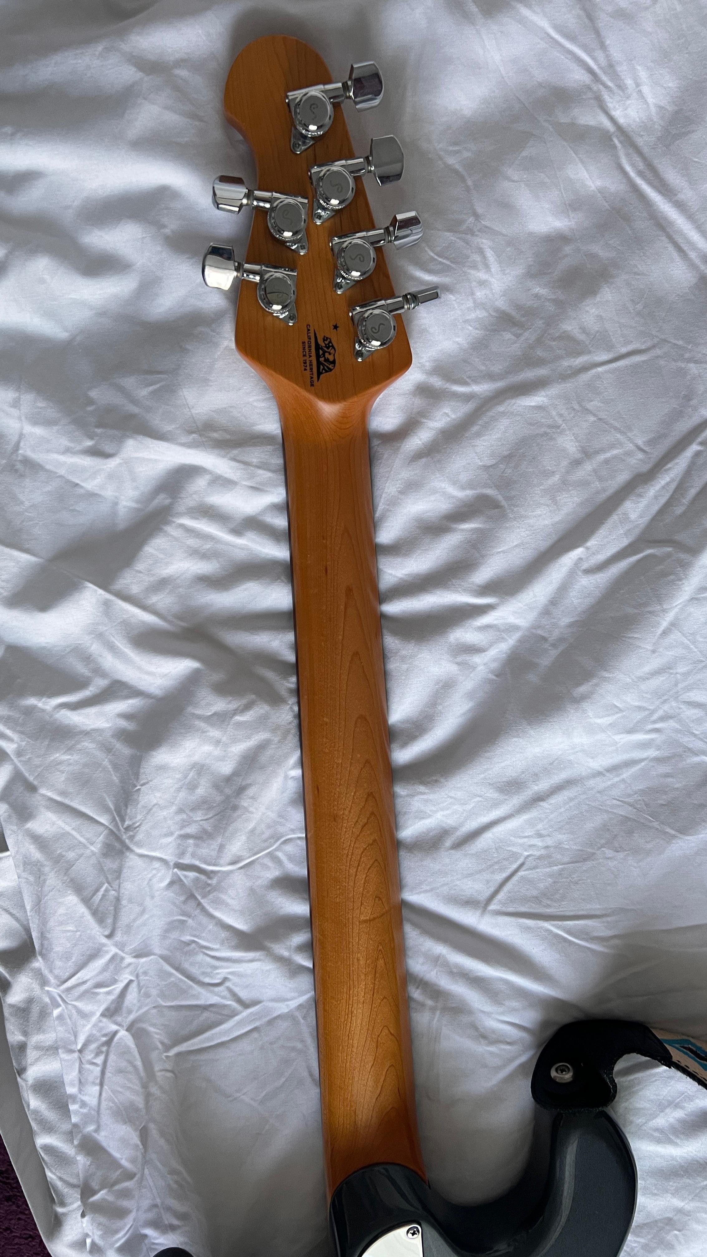 millu2m Posted 6 hours ago Posted 6 hours ago (edited) Pret: 2200 euro Localitate: Oradea Contact: 0735859686 Stare: Uzura normala Accept schimburi: Nu accept schimburi Vând chitară Music Man Cutlass charcoal frost HSS, câteva modificări: 1. Sistemul de hum canceling l-am eliminat deoarece unul din potentiometre avea un fâșâit (această operațiune a fost făcută în București de către un electrician profeionist), sistemul îl dau împreună cu chitara și hardcase ul original custom. 2. Saddle-urile le-am înlocuit cu graphtech pt un sustain și intonație mai bună. Descriere: Ernie Ball Music Man Cutlass HSS este o chitara gandita de catre foarte apreciatul producator Music Man ca o alternativa la un Fender American Deluxe (sau Elite cum se numeste acum), sau la seria Classic Pro de la Suhr, de care este si mai apropiata. Practic este un Stratocaster cu ton clasic de anii 60, dar adus la zi cu toate rafinamentele tehnice si ergonomice posibile, dar facute in cel mai destept mod. Desi are un pret relativ asemanator cu seria Elite de la Fender, este un instrument dintr-o clasa superioara fata de Elite, calitatea lui fiind exemplara, iar materialele folosite cam cele mai bune disponibile. Este facut dupa reteta traditionala de strat, corp din alder, grif din maple cu tastiera rosewood, 2 doze single coil 60s voiced si un humbucker care le completeaza de minune in pozitia bridge, impreuna ofera o versatilitate fantastica. Pornind de la o baza vintage corecta pentru un sound autentic de Stratocaster, Music Man a venit cu mai multe rafinamente ale retetei originale, rezolvand unele necesitati pe care chitaristul modern le doreste la un instrument: Cel mai important upgrade mi se par tastele, 22 la numar si stainless steel batute si finisate perfect (lucru extrem de rar la Fender non Custom Shop). Faptul ca sunt stainless steel vine cu 2 avantaje majore: nu oxideaza, raman mereu perfect lucioase si nu se uzeaza in timp aproape deloc, otelul fiind mult mai dur decat aliajul nickel silver pe care il foloseste aproape toata lumea. Pentru cine canta ceva mai mult este un avantaj enorm sa nu aibe grija uzurii tastelor Tremolo in 2 puncte extraordinar ca si feeling (poate cel mai apreciat sistem in 2 puncte de pe piata) si extrem de stabil. Are sustain block full size din otel si o protectie special peste saddle-s foarte utila pentru cei care sprijina podul palmei pe tremolo Neck heel conturat pentru un acces exemplar la ultimele taste si prinderea grifului de corp in 5 suruburi pentru un contact cat mai bun si mai stabil Schaller locking tuners - poate cele mai bine cotate cheite de pe piata Nut cu compensare pentru o intonatie cat mai exacta Sistem Silent pentru reducere a zgomotului dozelor single coil( așa cum am scris mai sus l-am eliminat), Reglajul tijei grifului se face extrem de usor (si fara cheite speciale) dupa tasta 22, sistem pe care l-a preluat recent si Fender la seria Elite Chitara are o culoare care acum este discontinued, numita Charcoal Frost. Este un albastru metalizat cu putin gri care arata foarte bine, mult mai bine decat am reusit eu sa surprind in poze. Este in stare foarte buna. Are cateva zgarieturi,nimic grav. Este reglata foarte bine, cu actiune joasa si fara fretbuzz. Tastele sunt impecabile. Suna extraordinar, se canta foarte usor pe ea, griful se simte foarte bine la mana, se poate canta pe ea absolut orice, este o chitara foarte versatila si ideala pentru session players sau coveristi. Peste ocean este considerat Suhr-ul saracului (desi nu as spune ca este chiar ieftina), practic ofera aceeasi calitate ca si Suhr, dar la un pret mult mai avantajos Edited 5 hours ago by millu2m
