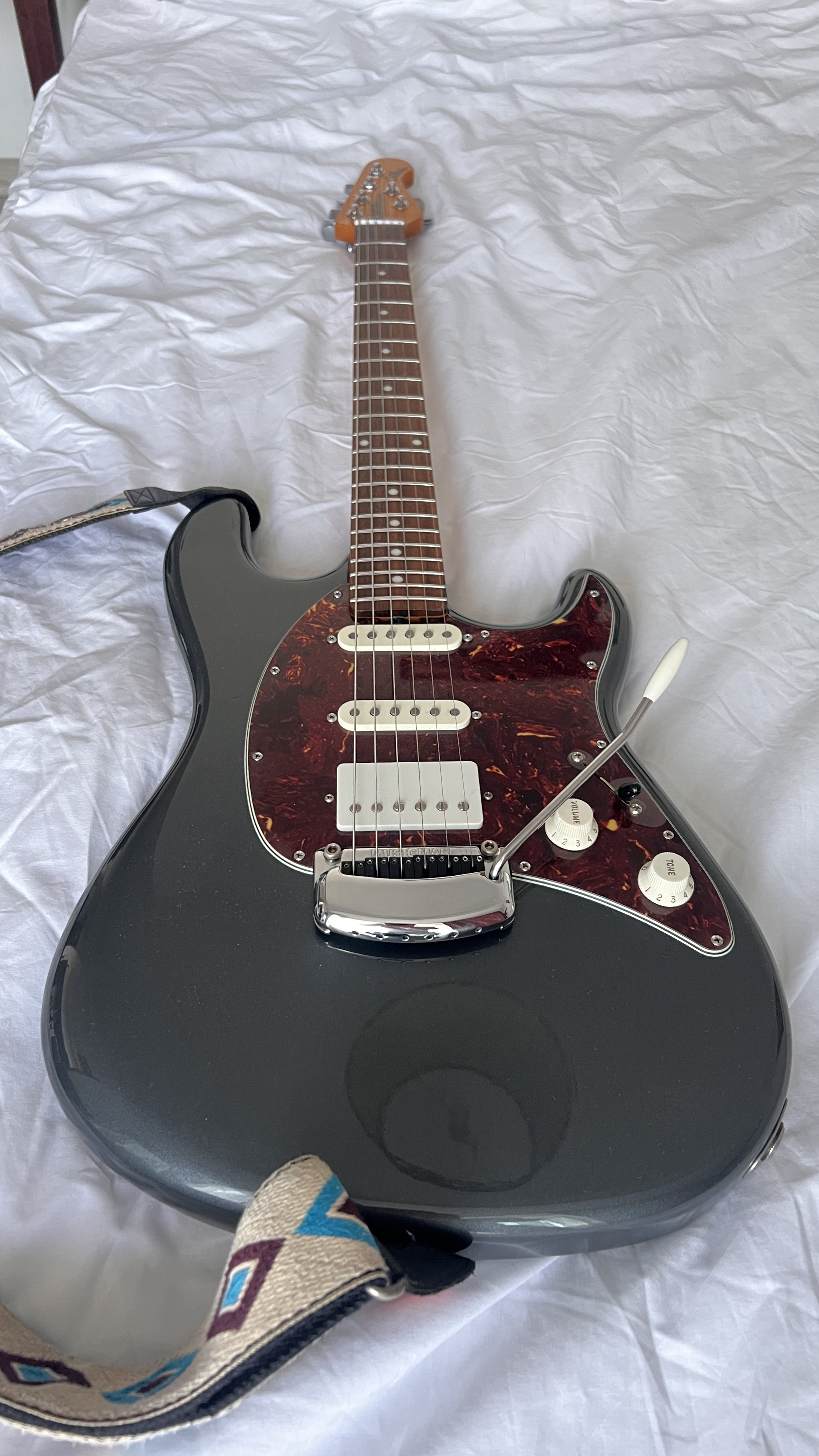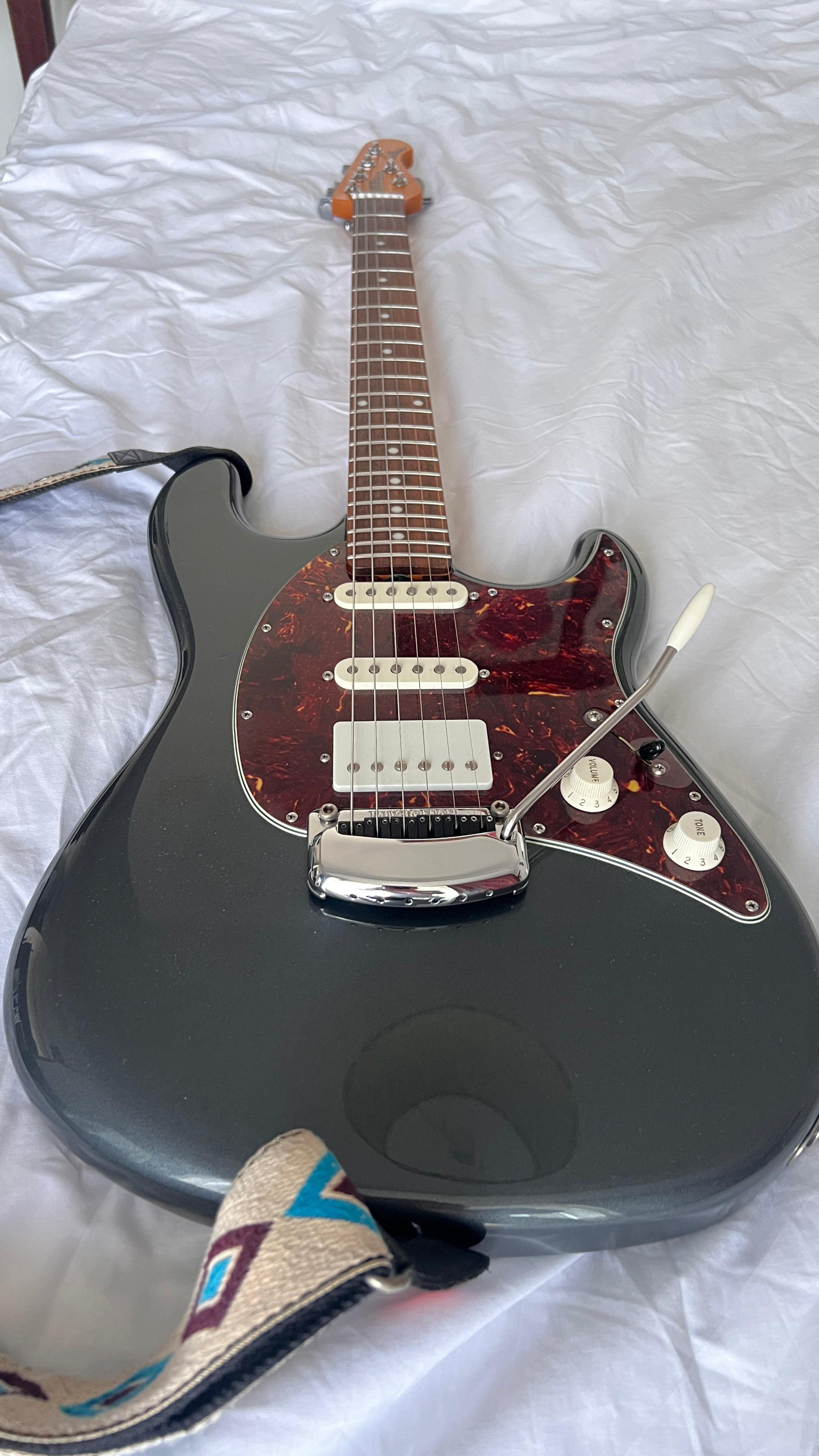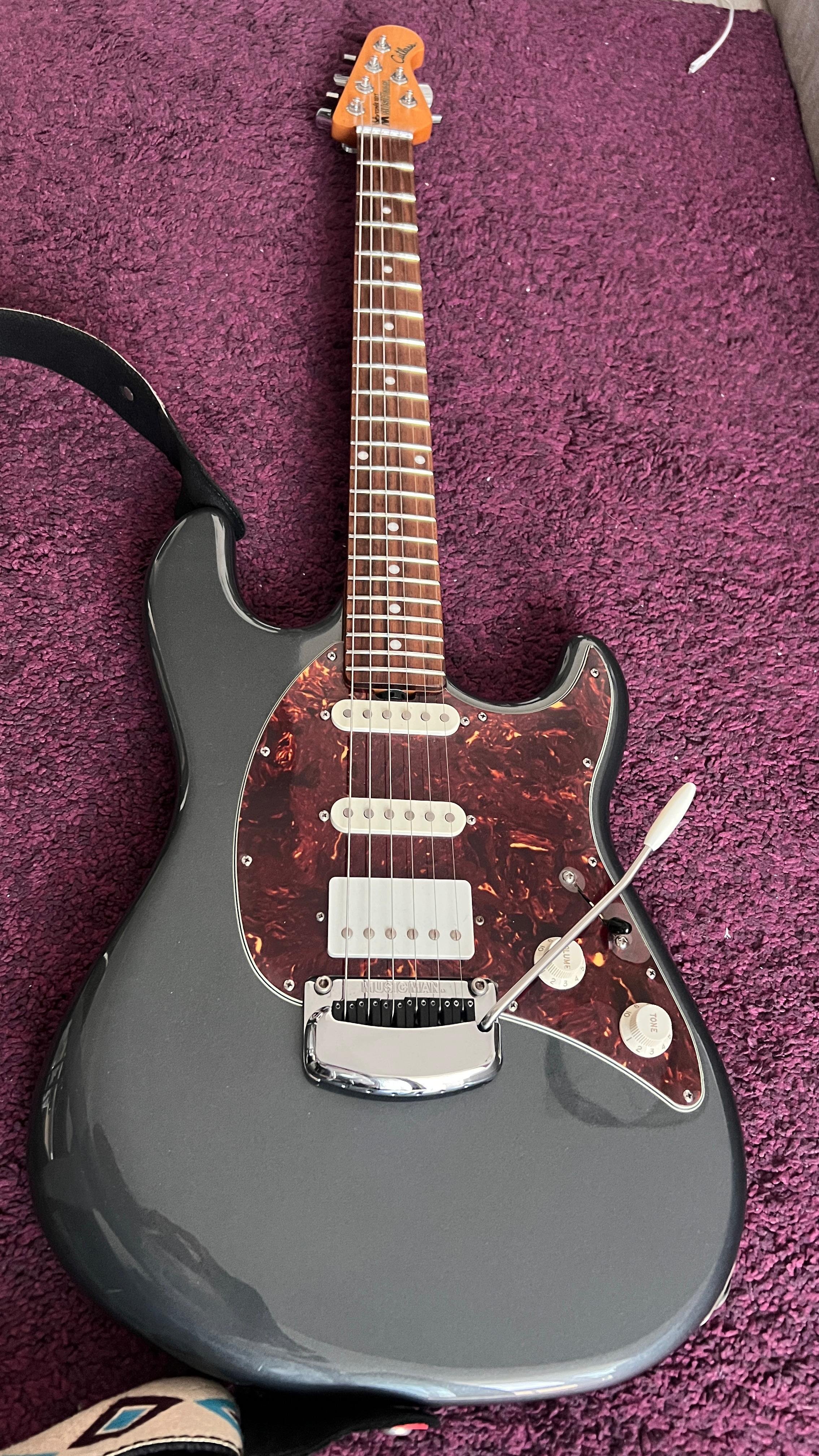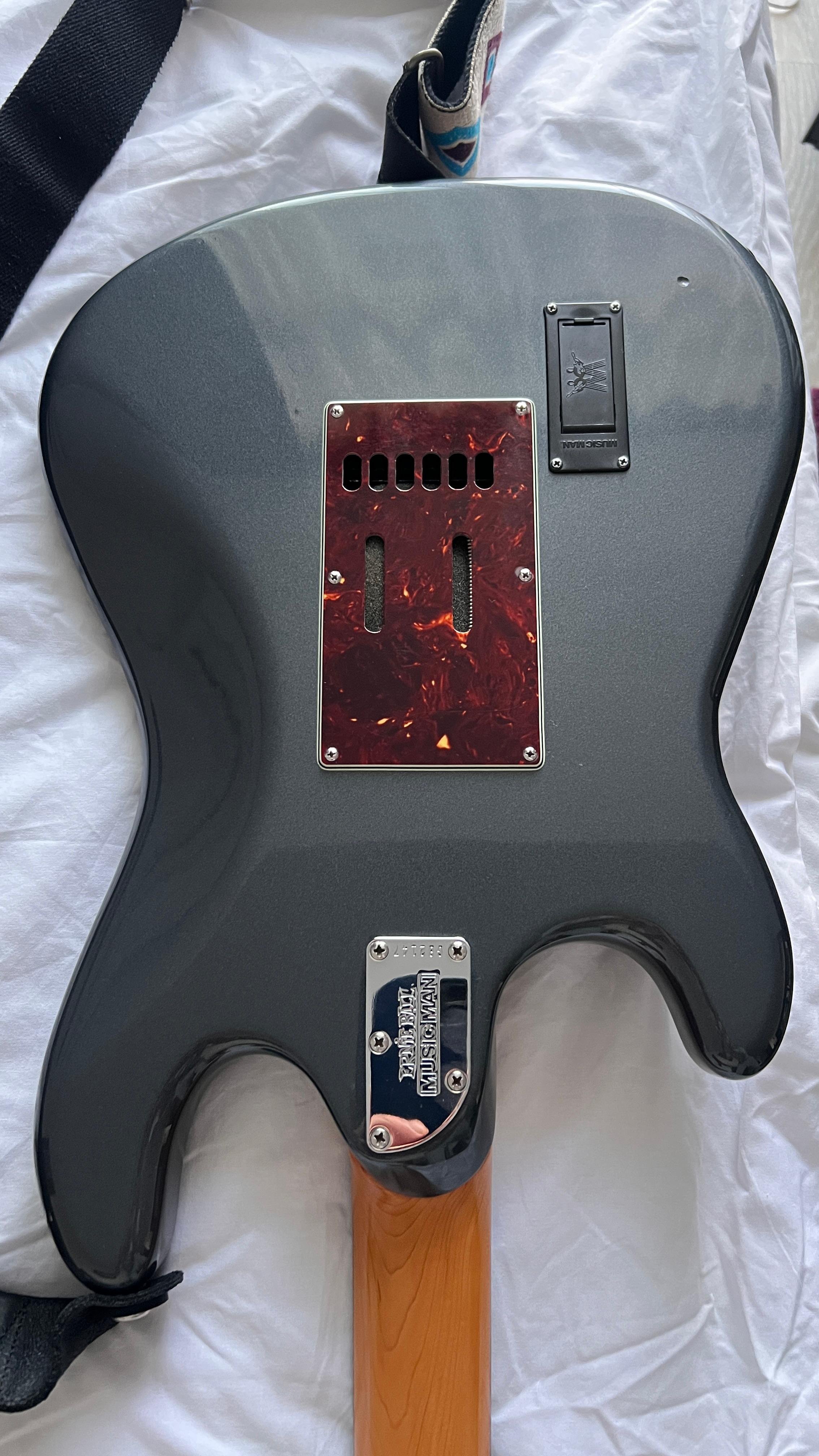 millu2m Posted 5 hours ago Posted 5 hours ago (edited) Pret: 2200 euro Localitate: Oradea Contact: 0735859686 Stare: Uzura normala Accept schimburi: Nu accept schimburi Vând chitară Music Man Cutlass charcoal frost HSS, câteva modificări: 1. Sistemul de hum canceling l-am eliminat deoarece unul din potentiometre avea un fâșâit (această operațiune a fost făcută în București de către un electrician profeionist), sistemul îl dau împreună cu chitara și hardcase ul original custom. 2. Saddle-urile le-am înlocuit cu graphtech pt un sustain și intonație mai bună. Descriere: Ernie Ball Music Man Cutlass HSS este o chitara gandita de catre foarte apreciatul producator Music Man ca o alternativa la un Fender American Deluxe (sau Elite cum se numeste acum), sau la seria Classic Pro de la Suhr, de care este si mai apropiata. Practic este un Stratocaster cu ton clasic de anii 60, dar adus la zi cu toate rafinamentele tehnice si ergonomice posibile, dar facute in cel mai destept mod. Desi are un pret relativ asemanator cu seria Elite de la Fender, este un instrument dintr-o clasa superioara fata de Elite, calitatea lui fiind exemplara, iar materialele folosite cam cele mai bune disponibile. Este facut dupa reteta traditionala de strat, corp din alder, grif din maple cu tastiera rosewood, 2 doze single coil 60s voiced si un humbucker care le completeaza de minune in pozitia bridge, impreuna ofera o versatilitate fantastica. Pornind de la o baza vintage corecta pentru un sound autentic de Stratocaster, Music Man a venit cu mai multe rafinamente ale retetei originale, rezolvand unele necesitati pe care chitaristul modern le doreste la un instrument: Cel mai important upgrade mi se par tastele, 22 la numar si stainless steel batute si finisate perfect (lucru extrem de rar la Fender non Custom Shop). Faptul ca sunt stainless steel vine cu 2 avantaje majore: nu oxideaza, raman mereu perfect lucioase si nu se uzeaza in timp aproape deloc, otelul fiind mult mai dur decat aliajul nickel silver pe care il foloseste aproape toata lumea. Pentru cine canta ceva mai mult este un avantaj enorm sa nu aibe grija uzurii tastelor Tremolo in 2 puncte extraordinar ca si feeling (poate cel mai apreciat sistem in 2 puncte de pe piata) si extrem de stabil. Are sustain block full size din otel si o protectie special peste saddle-s foarte utila pentru cei care sprijina podul palmei pe tremolo Neck heel conturat pentru un acces exemplar la ultimele taste si prinderea grifului de corp in 5 suruburi pentru un contact cat mai bun si mai stabil Schaller locking tuners - poate cele mai bine cotate cheite de pe piata Nut cu compensare pentru o intonatie cat mai exacta Sistem Silent pentru reducere a zgomotului dozelor single coil( așa cum am scris mai sus l-am eliminat), Reglajul tijei grifului se face extrem de usor (si fara cheite speciale) dupa tasta 22, sistem pe care l-a preluat recent si Fender la seria Elite Chitara are o culoare care acum este discontinued, numita Charcoal Frost. Este un albastru metalizat cu putin gri care arata foarte bine, mult mai bine decat am reusit eu sa surprind in poze. Este in stare foarte buna. Are cateva zgarieturi,nimic grav. Este reglata foarte bine, cu actiune joasa si fara fretbuzz. Tastele sunt impecabile. Suna extraordinar, se canta foarte usor pe ea, griful se simte foarte bine la mana, se poate canta pe ea absolut orice, este o chitara foarte versatila si ideala pentru session players sau coveristi. Peste ocean este considerat Suhr-ul saracului (desi nu as spune ca este chiar ieftina), practic ofera aceeasi calitate ca si Suhr, dar la un pret mult mai avantajos Edited 5 hours ago by millu2m