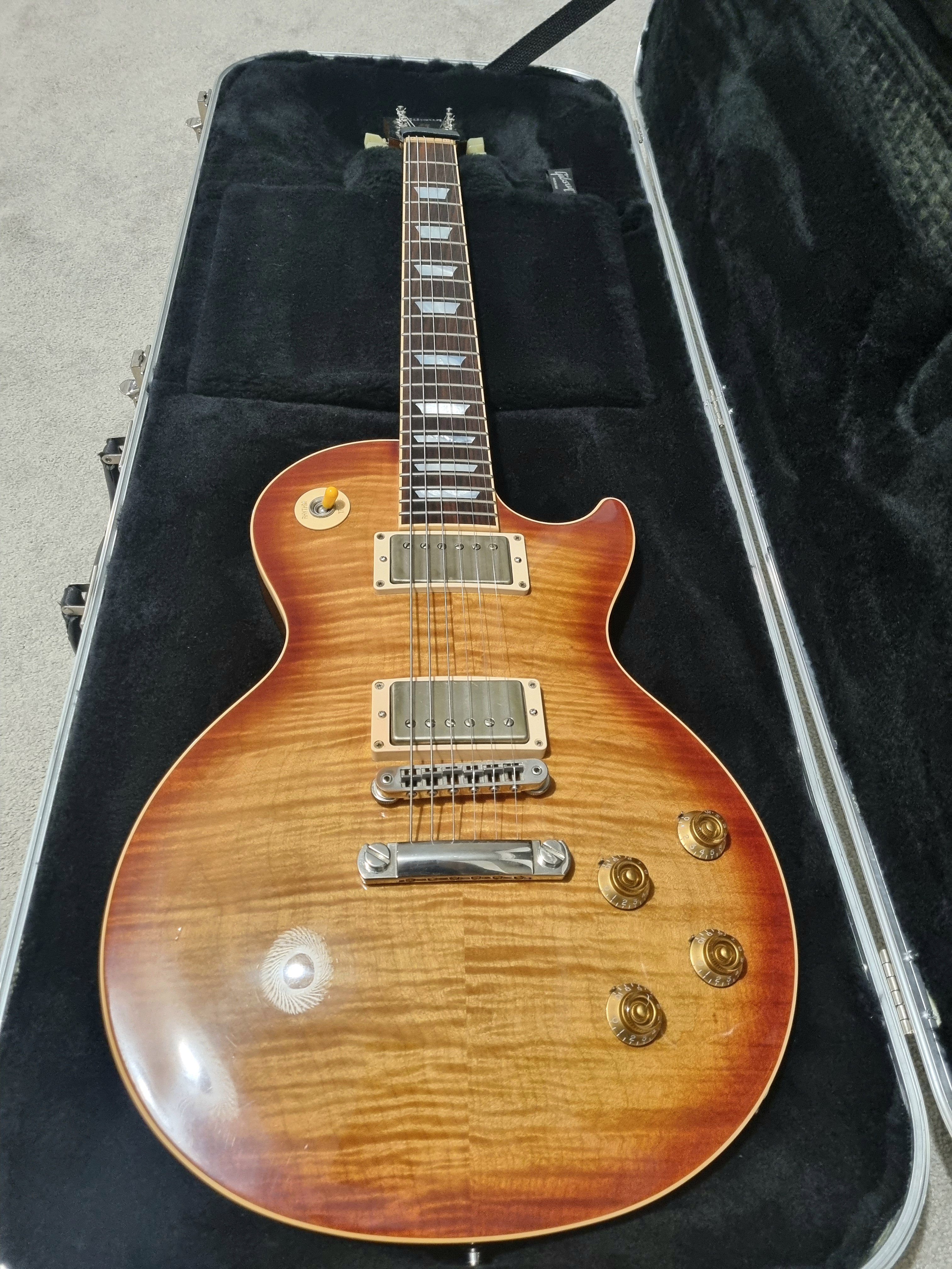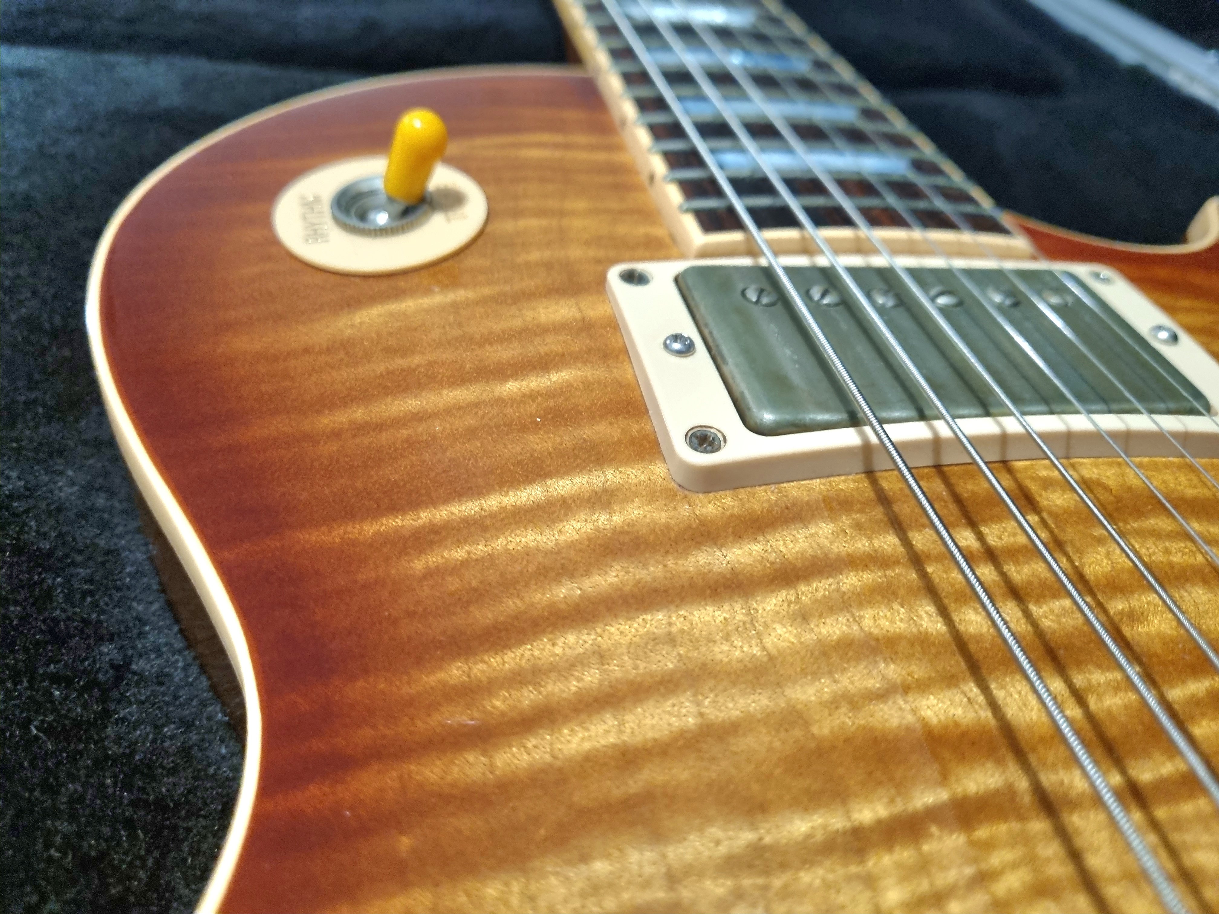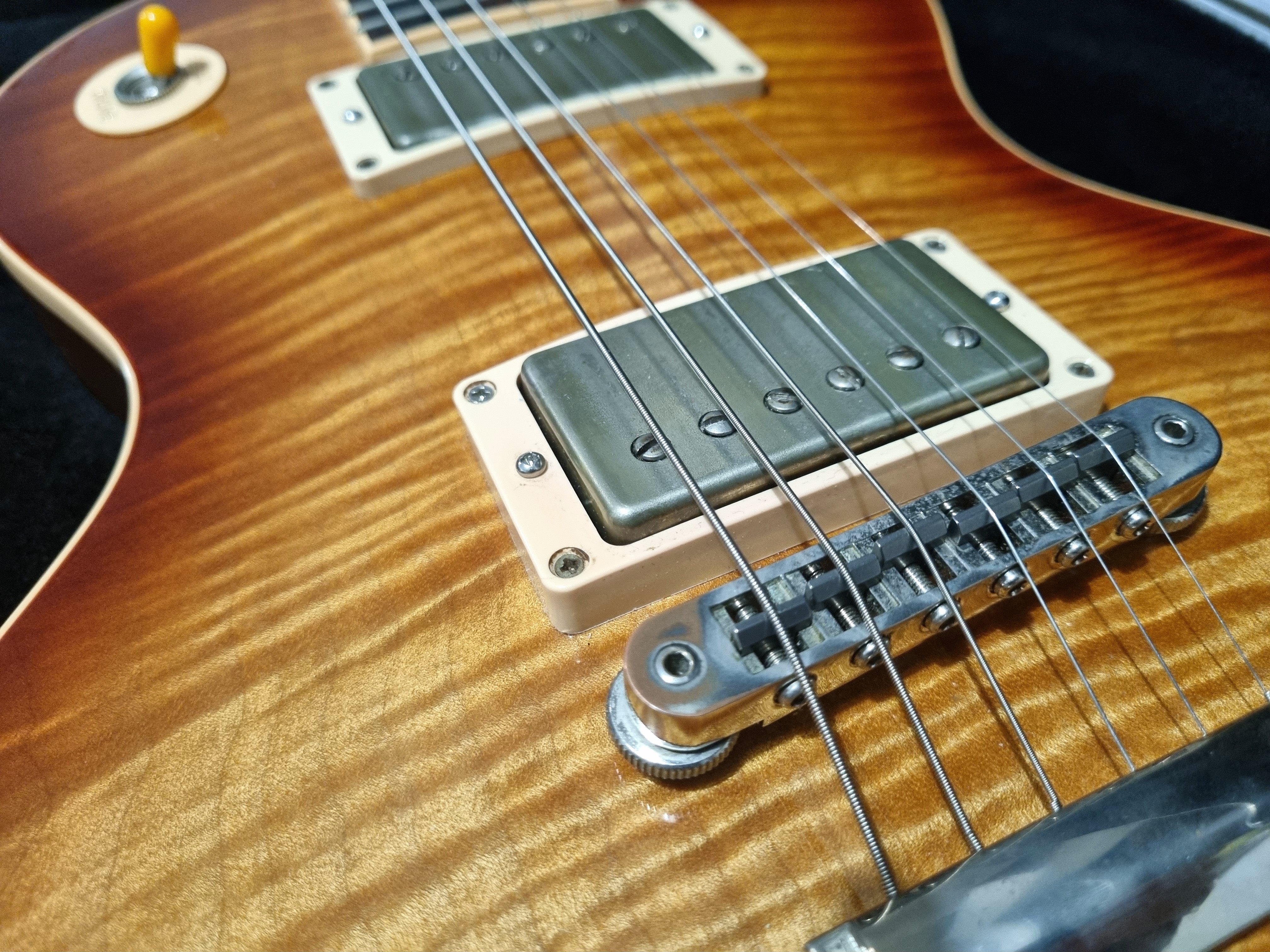 Alin Rosulescu Posted 5 hours ago Posted 5 hours ago Pret: 10000 Localitate: Pitesti Contact: 0740056896 Stare: Uzura normala Accept schimburi: Accept schimburi Salutare, Las aici, doar pentru schimb, un exemplar de Gibson Les Paul Traditional, model aniversar 2015 (mentiunea 100 pe fata headstock-ului si holograma pe spate). Din caracteristicile mai controversate ale modelelor din acea perioada ar fi doar nut-ul reglabil din alama - feature pe care eu il consider foarte bun, mai ales daca vrei un downtuning (chitara e acum acordata in Drop C, are corzi mai groase iar faptul ca am putut regla nut-ul a ajutat mult). In rest: - cheitele sunt schimbate cu Gibson Deluxe - dozele standard sunt schimbate cu un set de Mojotone Hellbender, asa ca e o chitara care stie metale 🤘 Printre caracteristicile standard: - corp non wight relief, adica nu e o chitara usoara 🙂 - AA spre AAA maple cap - un gat mai chunky, dar care se simte bine in mana - CTS pots fara split si orange caps - Pickguard montabil cu cleme (eu nu il folosesc) - Case ABS original Pentru lista completa de specificatii, puteti consulta diversele materiale online. Tot acolo gasiti si informatii despre doze. Chitara are cateva urme de utilizare, normale pentru cei 11 ani de viata, nu are uzura la taste (se vede si in poze) iar de sunat....suna pe orice si mai ales pe metal. Ce ma intereseaza la schimb: - Fractal FM 9 Turbo - Fractal FM 3 Turbo + diferenta Anuntul este valabil doar pentru schimb, nu si pentru vanzare.